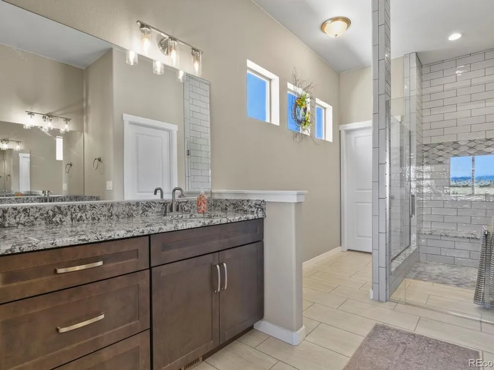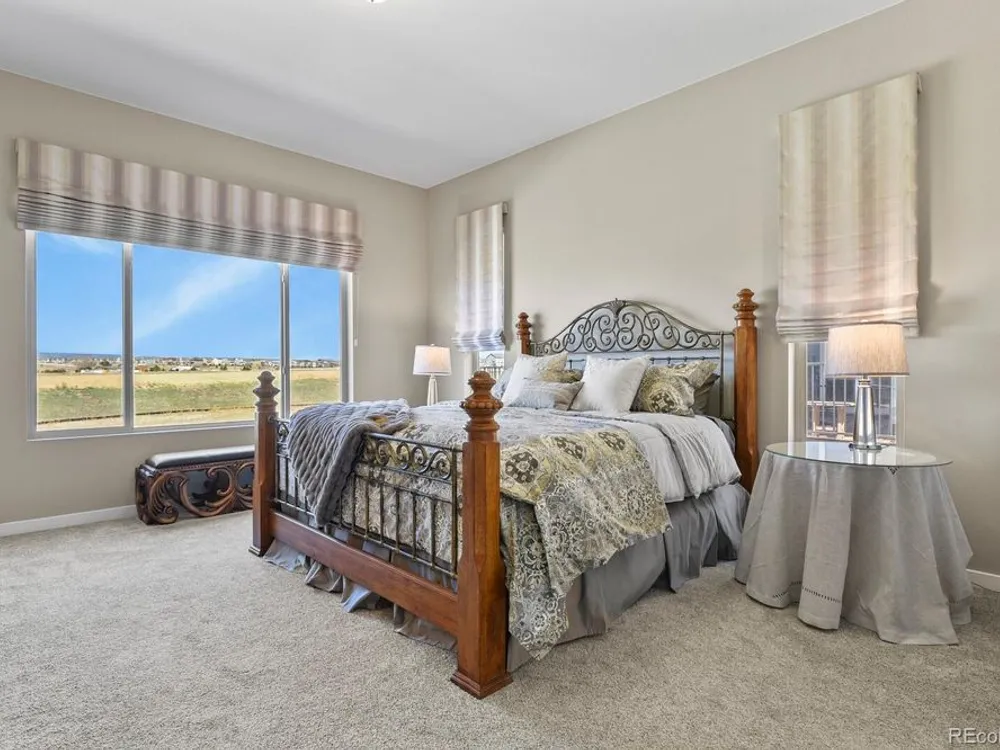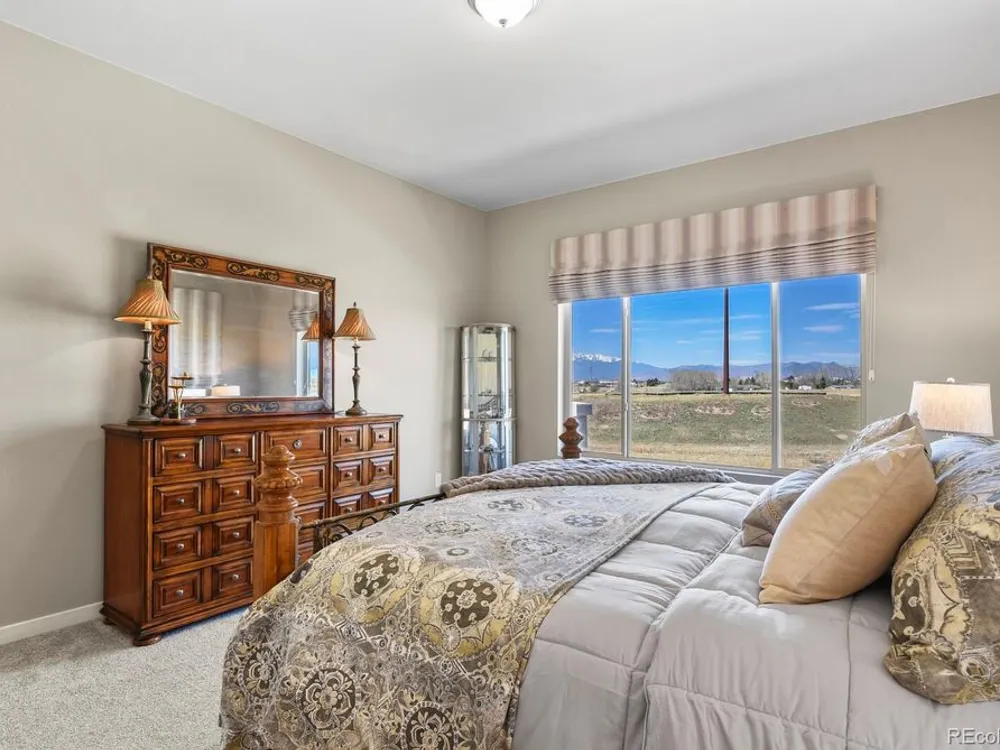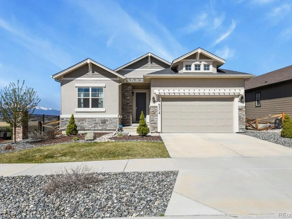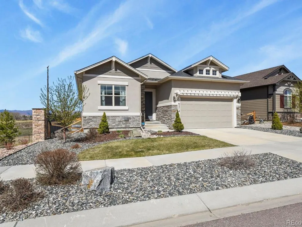 A one in a thousand home! A builder-upgraded Spec home. Stunning ranch with a walkout basement. 180 degree Million Dollar view of the mountain range from Cheyenne Mtn. to the north end mountains featuring Pikes Peak right in the middle. If you are not sitting on the expansive deck enjoying the view and the open space behind and to the side of the home, You will be enjoying Open Concept Main Level with full height windows to let the light and view into the home. Eat breakfast at the Oversized Granite Breakfast Bar / Island or sit at the table in the Dining Space which is large enough to hold an 8 guest dining table! Relax and enjoy the light or retire to the Basement Great Room with Stone Face Gas Fireplace with a Walnut Mantel. Of course you could sit outside on the Walkout Patio and the custom low maintenance Garden Area and the privacy allowed with Open Space Behind and to the side. Retire at night to the Main Bedroom that is Oversized ( no problem with California King size bed and dress set.) Enjoy a shower in the Frame Free Shower or soak in the Large Tub. If you own a lot of clothes you will love the Very Large Walk In Closet. Have guests? No problem! You have 3 more bedrooms to select from including an Oversize Guest Suite downstairs that also has an Oversize Walk In Closet. Plenty of Linen Closets and a Large Storage Room for the Christmas stuff and everything you need to store. On the weekend enjoy a good game of Pickle Ball on one of the 8 courts or take a swim or sit in the Hot Tub. No need to keep weight sets/exercise equipment in the home. There is a private Community Fitness Center just a short walk from the home. All of this in the quiet of a Full Fence and Gated 55plus Community. Just a few minutes to I-25 and yet you miss a lot the noise of the city. Shopping and the Air Bases & Airport are a short drive . A True One of A kind !