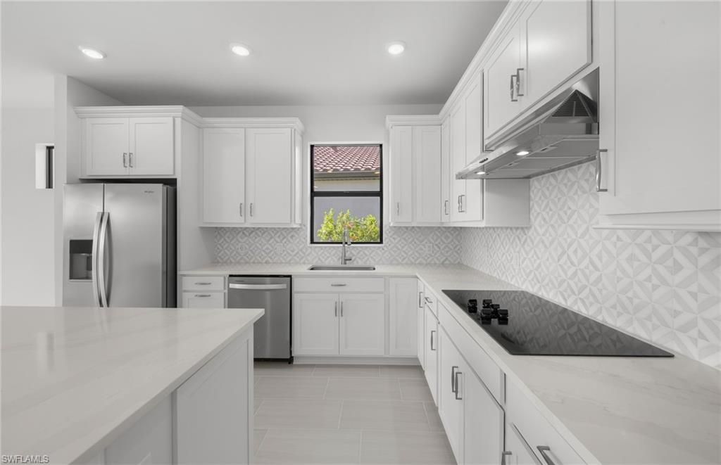 This spacious Prosperity floor plan features 2 bedrooms, 2 baths, plus a versatile den, along with a 2-car garage that includes a 4’ extension. The gourmet kitchen is equipped with built-in stainless steel appliances and elegant quartz countertops. The owner’s suite offers a large bedroom with a walk-in shower, while the extended screened and covered lanai provides the perfect space for outdoor living. Enjoy your upgraded Cafe sliders to expand your everyday living space for indoor outdoor living. Located in Del Webb Naples, a premier 55+ resort-style community, residents enjoy access to over 30,000 square feet of amenity space across two stunning clubhouses: The Oasis Club and Grand Hall. The community is home to an 18-hole championship golf course (optional membership), two resort-style pools including an 8,000 sq. ft. beach-entry pool and a lap pool, a fitness center, movement studio, golf simulator, fire pit lounge, and The Rusty Putter Bar & Grille. Outdoor enthusiasts will love the 12 lighted pickleball courts, tennis courts, bocce ball courts, community garden, and miles of walking and biking trails. With a full calendar of events—including game nights, fitness classes, arts & crafts, and social gatherings—Del Webb Naples offers an unmatched lifestyle designed for relaxation, recreation, and connection. Live the active adult lifestyle you’ve dreamed of in a beautifully upgraded new home.