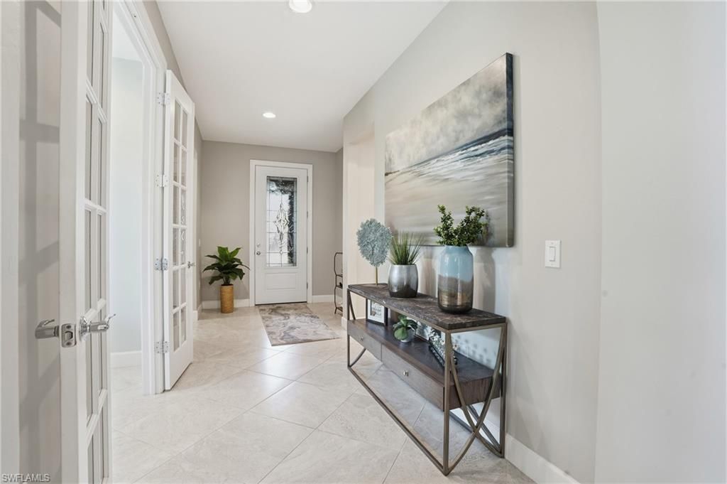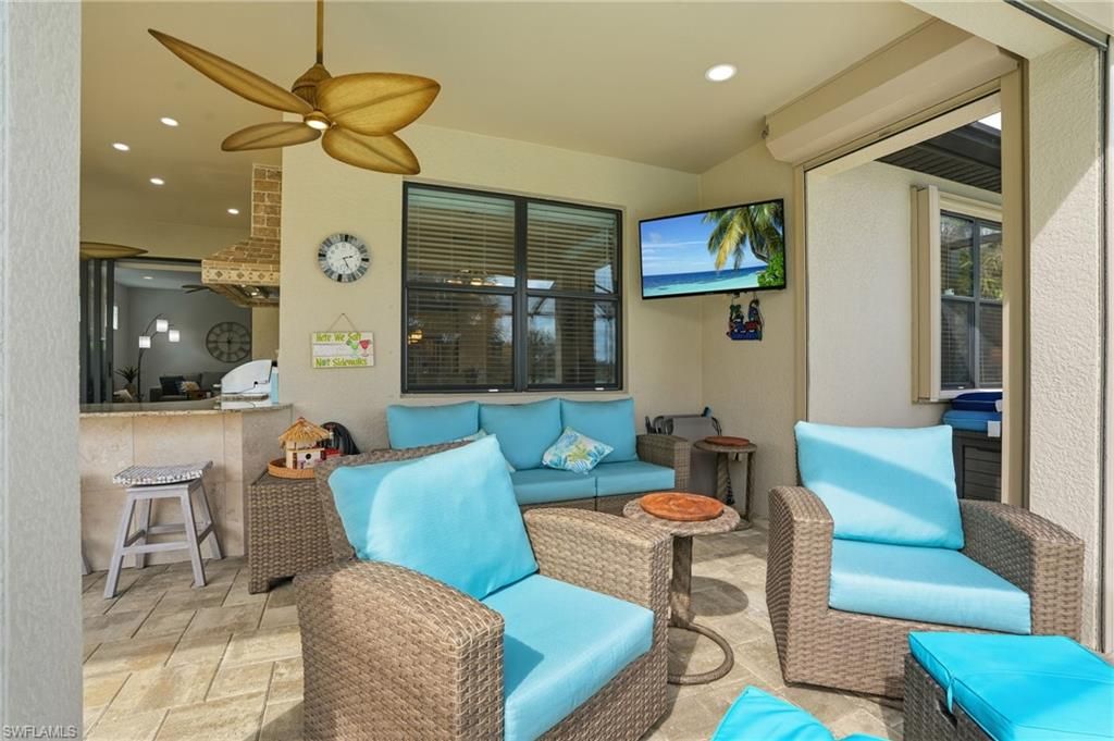 Dreaming of resort-style living in paradise? Look no further. This exquisite residence, nestled within the vibrant 55+ Del Webb community of Naples, is a true masterpiece of luxury and leisure.Step into a world where everyday life feels like an endless vacation. Del Webb offers a lifestyle of unparalleled amenities: indulge in gourmet dining, refine your swing on championship golf courses, play tennis, or invigorate your senses at the state-of-the-art fitness center. The adventure never ends.The home itself is a vision of perfection, a meticulously maintained, move-in-ready sanctuary that surpasses new construction. Soaring ceilings accentuate an atmosphere of comfort and light. The bright, airy gourmet kitchen is a chef's delight, showcasing stunning quartz countertops, a magnificent oversized island, and upgraded cabinetry throughout.This open-concept living space is an entertainer's dream, flowing seamlessly into the breathtaking southern exposure lanai. This is the epitome of Florida living. A massive outdoor kitchen, featuring built-in grill and hood, awaits your culinary artistry. Slip into the sparkling pool, relax at the built-in table, and gaze upon the serene lake from your super private, oversized corner lot.The practicalities are just as impressive: accordion and remote hurricane shutters provide peace of mind. The master suite offers a luxurious retreat with an oversized walk-in shower and closet. An expansive garage with epoxy floors accommodates two cars and your golf cart.This house doesn't just offer luxury; it offers a lifestyle. It has it all, without the extra work. Your paradise is waiting.