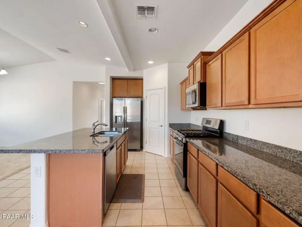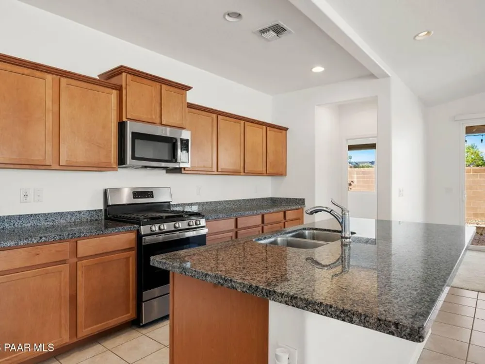 Popular Dakota plan with a tandem 3-car garage! Offering 1,594 sq. ft. with an open floor plan. 3 bedrooms, 2 full baths. Fresh paint, light and bright. 8' interior doors, and vaulted ceiling in the great room. Paver driveway. Energy efficient. Centrally located to Hwy 89 and 89A just minutes from the downtown Prescott Square and the Airport. Fantastic starter, or second home!