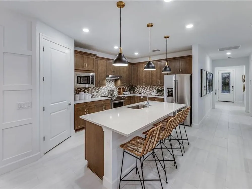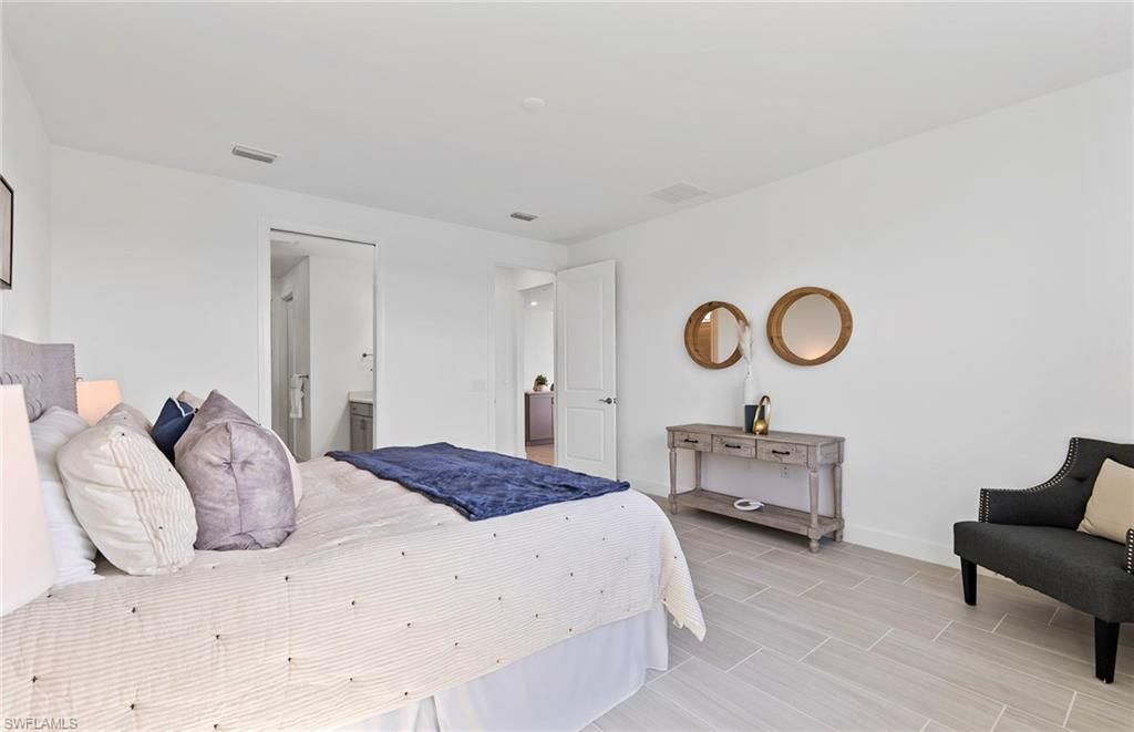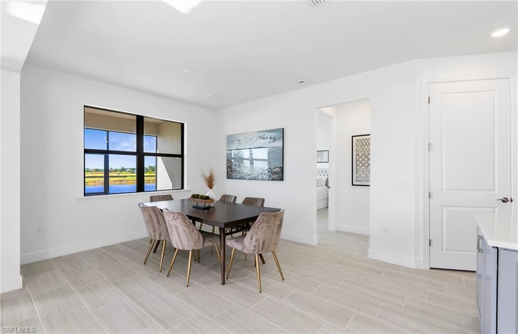 This Mystique floorplan offers 2 bedrooms, 2 bathrooms, a versatile den, and a spacious two-car tandem garage—perfect for additional storage, a workshop area, or even a golf cart. Designed with both function and elegance in mind, this home features an extended covered lanai with zero-corner sliding glass doors for seamless indoor-outdoor living and is pre-wired for an outdoor kitchen and pool or spa. The owner’s suite is a true retreat, showcasing an oversized walk-in shower with upgraded tile and frameless glass. The kitchen boasts built-in appliances, gray cabinetry paired with quartz countertops, and 12"x24" tile flooring that flows throughout the home. Additional upgrades include a full laundry room with cabinetry, countertops, and a sink; 8-foot interior doors; 5" upgraded baseboards; impact windows; a tile roof; and epoxy-finished garage floors. Located in Del Webb Naples, a premier 55+ resort-style community, residents enjoy access to over 30,000 square feet of amenity space across two stunning clubhouses: The Oasis Club and Grand Hall. The community is home to an 18-hole championship golf course (optional membership), two resort-style pools including an 8,000 sq. ft. beach-entry pool and a lap pool, a fitness center, movement studio, golf simulator, fire pit lounge, and The Rusty Putter Bar & Grille. Outdoor enthusiasts will love the 12 lighted pickleball courts, tennis courts, bocce ball courts, community garden, and miles of walking and biking trails. With a full calendar of events—including game nights, fitness classes, arts & crafts, and social gatherings—Del Webb Naples offers an unmatched lifestyle designed for relaxation, recreation, and connection. Live the active adult lifestyle you’ve dreamed of in a beautifully upgraded new home. Photos are from a furnished model. Options for this home may vary.