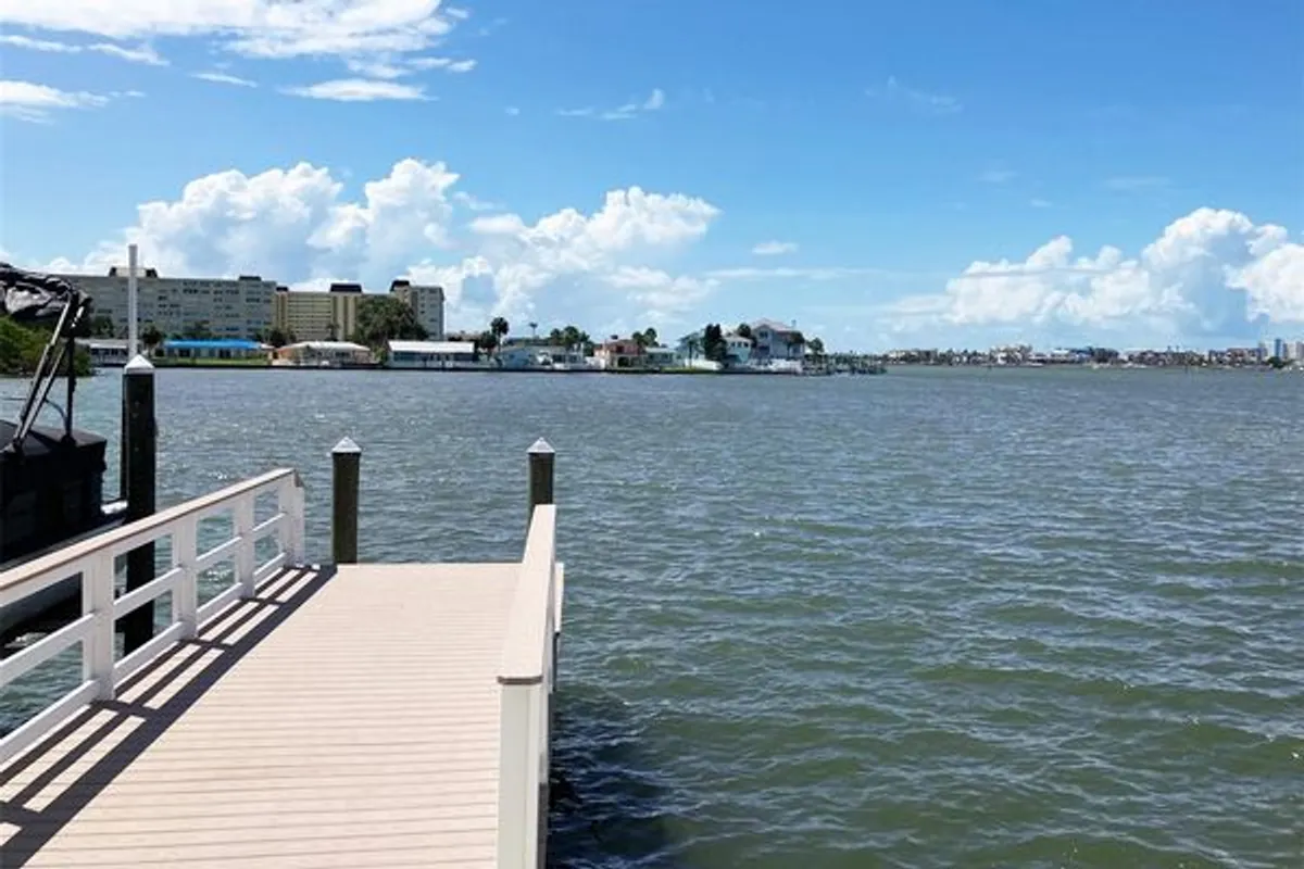 This fully remodeled 1400sq ft one story villa in the highly sought after 55+ gated waterfront community of Boca Ciega Point. has 2 bedrooms, 2 full baths and lots of storage space. The beautifully redesigned kitchen has Cambria quartz countertops, a farmhouse sink, and lots of high-end wood cabinets. The condo has an open floor plan which includes impact sliders in every room and hurricane shutters are also being install. There is a large courtyard entry, an open aired lanai on the water and new dock. The condo has deep water docking and beautiful panoramic views of the intracoastal water way. Everything is updated and new. The community offers an array of amenities, including two clubhouses, a spacious heated salt water pool, fitness center, year-around activities, tennis and pickle ball courts, social clubs, a card room, bocce ball, shuffleboard, library, and a boat club. This Boca community is conveniently located near a multitude of restaurants, retail shops, movie theater, and only a few minutes drive to the white sandy beaches of Madeira Beach. This hidden treasure offers not just a home but a lifestyle, with a range of amenities. It's a perfect retreat for those seeking an active and enjoyable 55+ community.