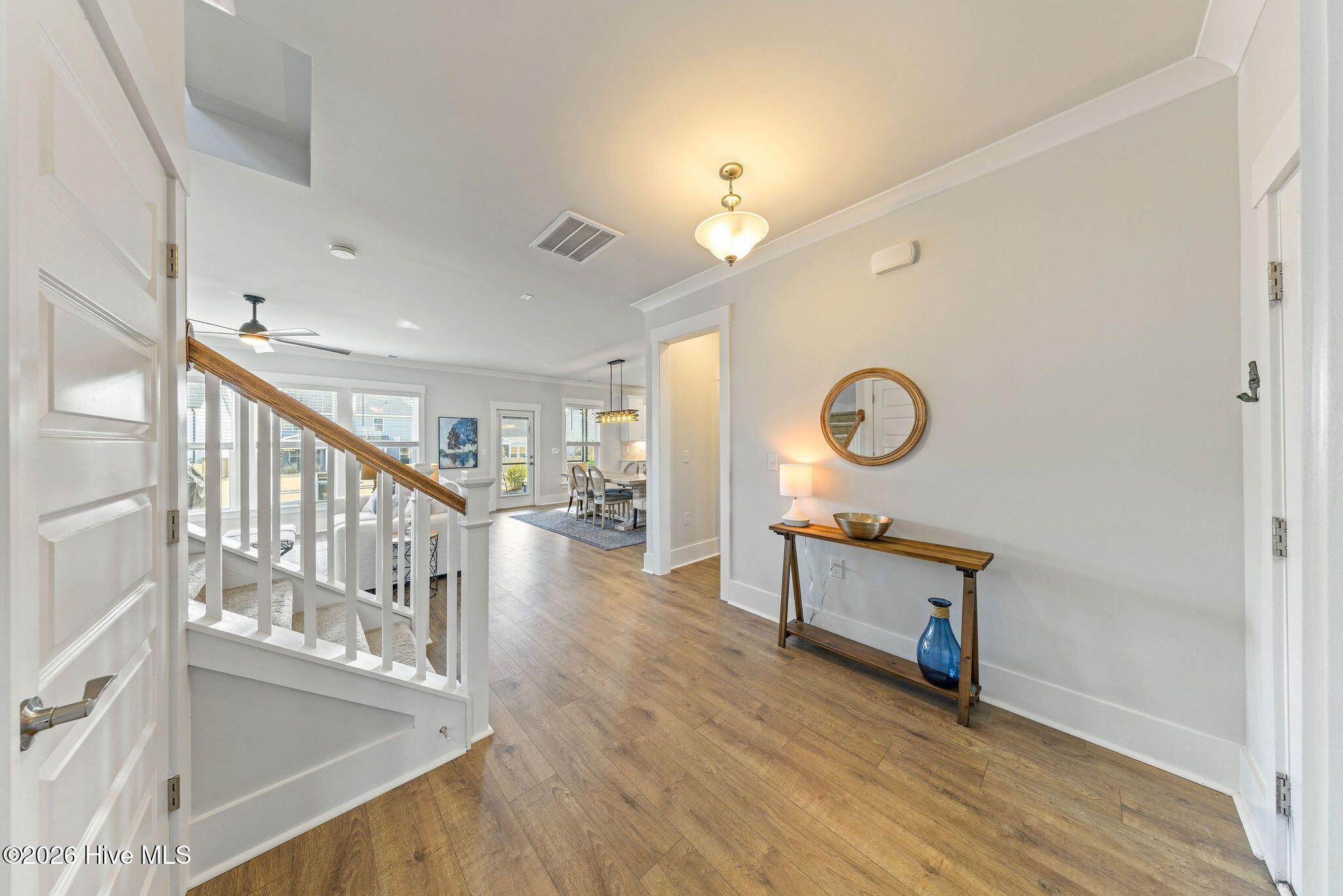 Location truly sets this home apart. Situated directly across from a community park with a playground, it offers open views, easy access, and a front-row seat to neighborhood life—creating a setting that feels both peaceful and connected. Step inside to a light-filled main living area highlighted by beautiful Craftsman-style trim and crown molding, with thoughtful upgrades found throughout the home. The bright kitchen is a true centerpiece, featuring quartz countertops, upgraded cabinetry, a gas cooktop with vented hood, and a pantry. A Butler's pantry adds both function and style, ideal for entertaining, extra storage, or even an office nook. The primary suite is thoughtfully designed with crown molding, a spacious walk-in closet, and a spa-like bath complete with a walk-in shower and private water closet. Two additional bedrooms and a versatile bonus room complete the upstairs. A dedicated office near the front entry provides the perfect work-from-home space or flex room, while the open living areas flow effortlessly for everyday living and entertaining. Step outside to enjoy a large backyard, screened porch, and patio creating the perfect spot for relaxing mornings or evening gatherings. All appliances convey. Move-in ready! Enjoy the active RiverLights lifestyle, now featuring two amenity centers. Residents have access to a wide range of amenities, including clubhouses, fitness centers, outdoor saltwater pools, playgrounds, parks, dog parks, and pickleball courts. The neighborhood also offers scenic trails, sidewalks, and streetlights throughout, along with a variety of clubs and activities for all interests. (HOA: 6-month rental minimum.) This home is a MUST see!