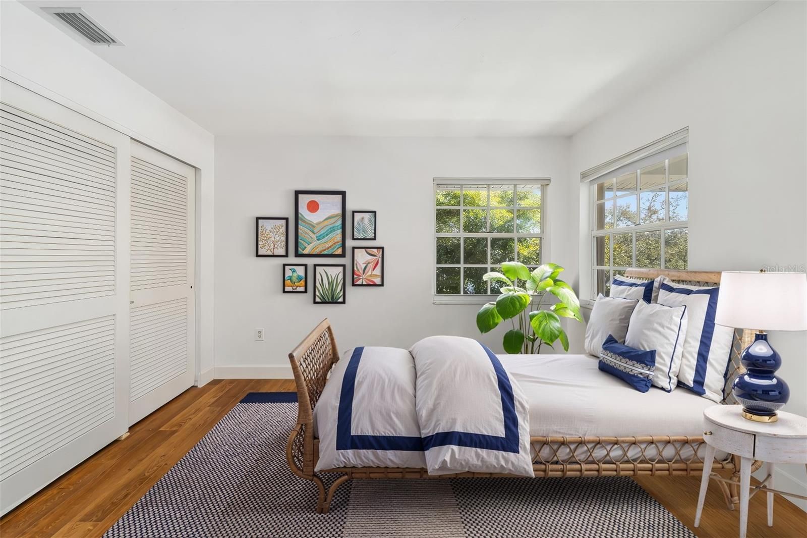 Under contract-accepting backup offers. Welcome to Perico Bay Village, where maintenance-free waterfront living, an active social atmosphere, and exceptional amenities come together to create an outstanding Florida lifestyle. You will be 2 miles to the BEST BEACHES of the GULF WATERS of ANNA MARIA ISLAND! This beautifully maintained, furnished condominium offers 1,985 sqft. The glassed-in lanai offering natural light to this 3bedroom, 2 bath is highlighted by the views of the mangroves amongst the water with its wide array of bird watching. As the largest floor plan in Perico Bay Village, this light-filled top-floor corner unit is constructed with cement block from top to bottom, providing both durability and peace of mind. Inside, a split-bedroom layout offers privacy and flexibility, complemented by a vaulted ceiling in the main living area, ceiling fans, and an open living and dining space that feels bright and welcoming. The kitchen features stainless steel appliances and a breakfast bar, flowing naturally into the main living areas for easy everyday living and entertaining. One of the home’s standout features is the enclosed Florida room, where you can enjoy your morning coffee, watch birds, or take in peaceful wildlife and sunset views overlooking a small lagoon fed by Tampa Bay. Sliding glass doors allow refreshing coastal breezes to move through the space, creating a relaxing indoor-outdoor atmosphere. Just off the dining area, a screened lanai provides additional outdoor living space—perfect for grilling, relaxing, or enjoying the surrounding scenery. The primary suite offers a walk-in closet and an updated en-suite bath featuring quartz countertops, dual sinks and cabinetry, and a walk-in tile shower with glass enclosure. Two additional bedrooms provide ample space for guests, with a guest bath conveniently located nearby. Additional highlights include interior washer and dryer, an extra walk-in storage closet, and recent updates throughout the home, including a new air conditioning system and ductwork, new kitchen stove/range and microwave, and luxury vinyl flooring. Convenience continues with an assigned covered carport parking space located just outside the front door, along with ample guest parking. Perico Bay Village is gated, Residents enjoy miles of recreational trails, a bird sanctuary, a heated community pool near the unit, an Olympic-size heated pool with lap lanes, an active clubhouse with frequent social events, a fitness center, four lighted tennis courts, pickleball courts, shuffleboard, and direct water access with paddleboard and kayak launch and storage. You can ride your bike or walk the streets in PBC or go to 3 different nearby nature preserves. Condo fees include exterior maintenance, cable, internet, water, sewer, and trash, allowing for true maintenance-free living. There are no age restrictions, and TWO pets are allowed with a combined weight of up to 40 pounds. Ideally located just minutes from Anna Maria Island, this home offers easy access to the area’s best beaches, the Sandbar restaurant shopping on Pine Avenue, Visit to the Florida Maritime Museum and entertainment ranges from pier fishing to sunset tiki cruises. With its spacious layout, turnkey furnishings, water views, and access to one of the area’s most amenity-rich waterfront communities, this Perico Bay Village residence presents an exceptional opportunity. Contact us today to schedule your private showing and experience this slice of Florida paradise in person.