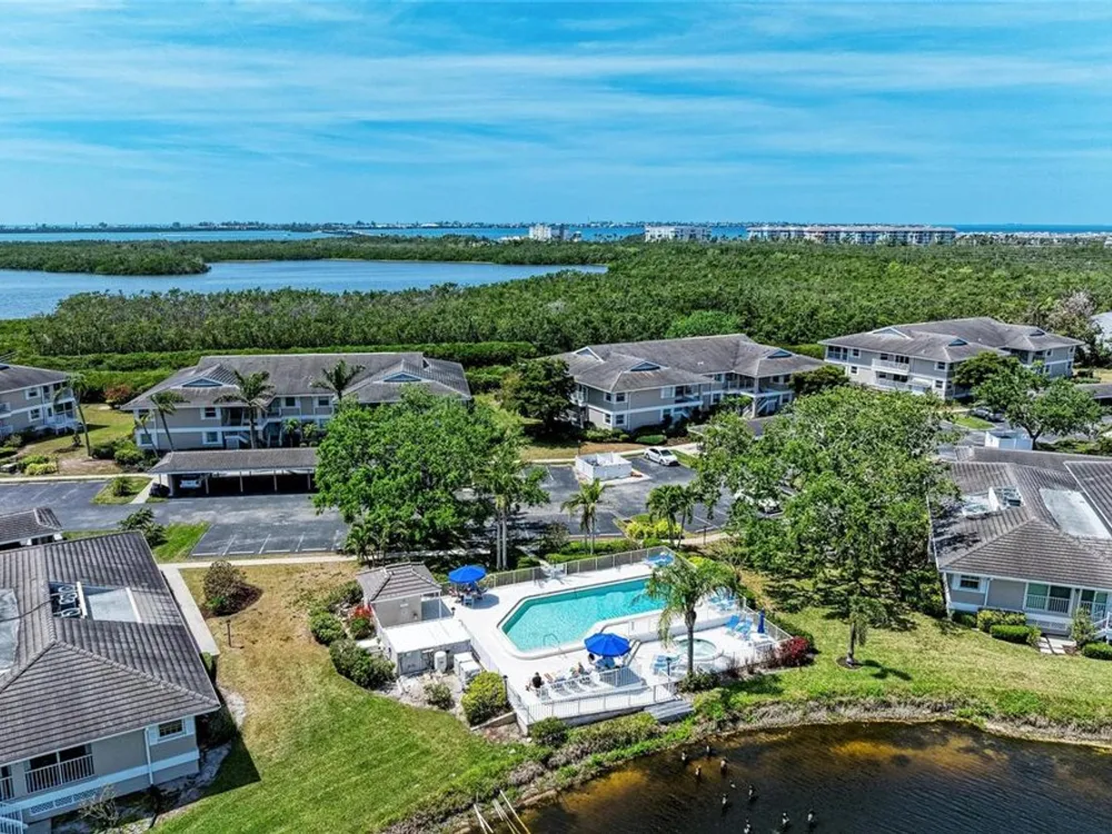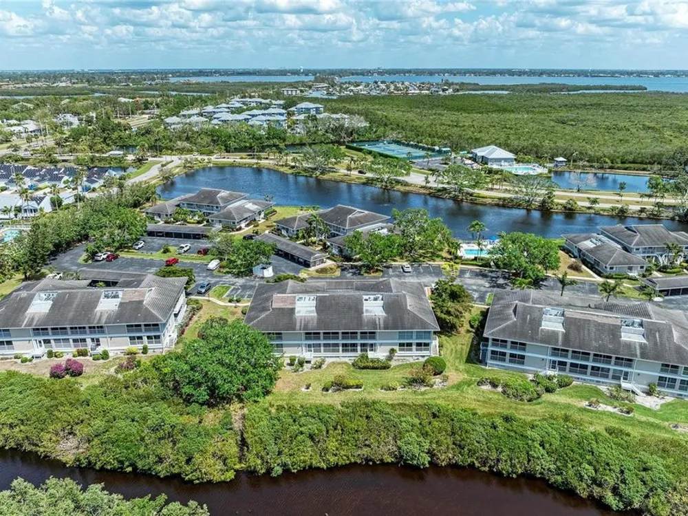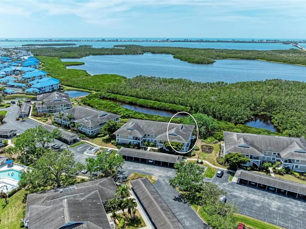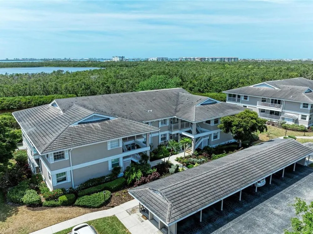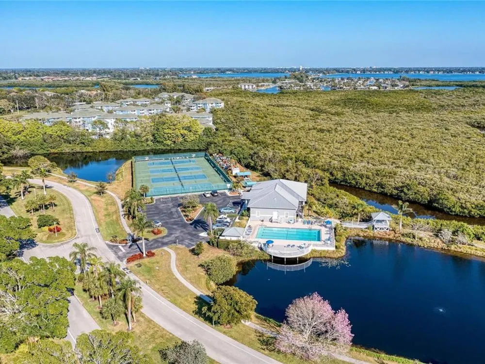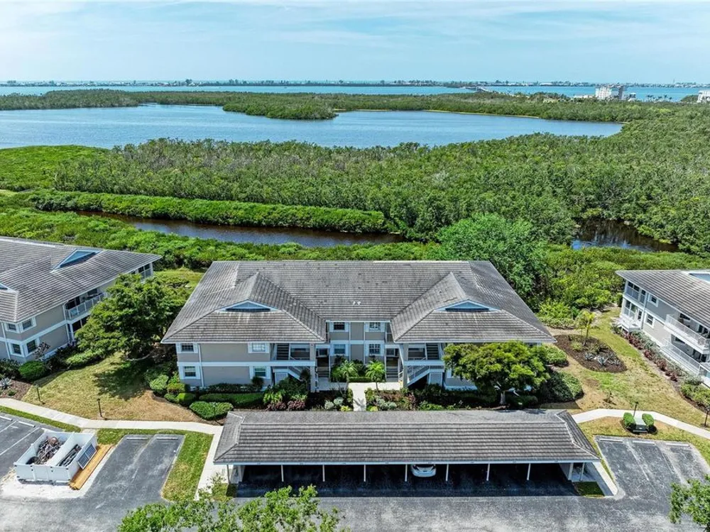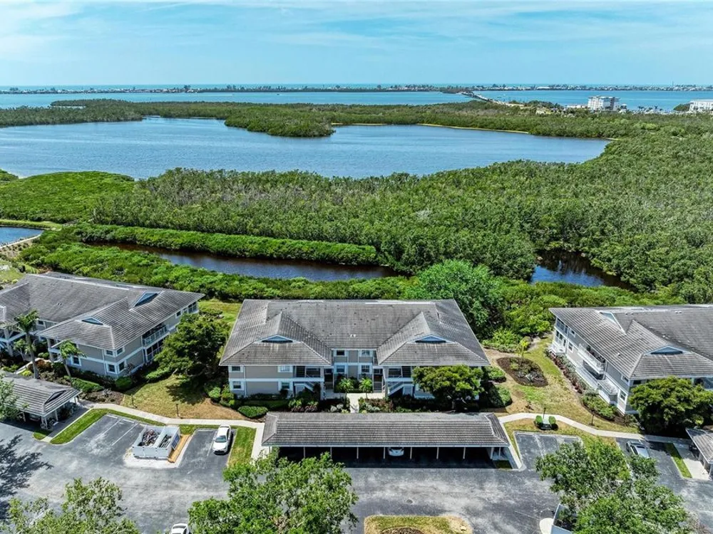 Beautifully maintained turnkey furnished 1,985 sqft, 3 bedroom, 2 bath condo with water view in Perico Bay Village! This spotless, move-in-ready condominium is being sold with all furniture and contents. Perico Bay is a friendly, amenity-rich, vibrant and active waterfront community. There are many socials and fun interactive activities in this maintenance-free community, offering a wonderful lifestyle at a great value for easy living. The largest floor plan in Perico Bay Village and structurally built with cement block from top to bottom, this spacious, light and bright corner top-floor unit provides water, wildlife and sunset views. Enjoy your morning coffee or watch the birds at sunset in the enclosed Florida room. Plus, the sliding glass doors open to allow a cool breeze for a relaxing atmosphere with a small Lagoon fed by Tampa Bay. Inside you will find a split bedroom floor plan, high vaulted living area ceiling, ceiling fans, kitchen with stainless steel appliances and breakfast bar, open living and dining area, primary bedroom walk-in closet with updated en-suite bath, interior washer and dryer, and extra walk-in storage closet. This home provides plenty of space and privacy for your guest with two additional bedrooms with a guest bath adjacent to the bedrooms. The home is outfitted with many recent updates including a brand new A/C unit and ducts, new primary bathroom with quartz counters, dual sinks and cabinets, updated walk-in tile shower with glass door, new kitchen stove/range and microwave and luxury vinyl flooring. Just off the dining area, enjoy outdoor living on the lanai to barbecue or relax to enjoy the outside cool breeze. The conveniently assigned covered carport parking spot is just outside your front door, plus access to additional guest parking. There are plenty of options to stay healthy and active in this community and enjoy the beautiful Florida outdoors. Perico Bay Club offers miles of recreational trails, a bird sanctuary, heated community pool near the condominium unit and heated Olympic-size community pool with lanes, an active clubhouse with many social events, fitness center, four lighted tennis courts, pickleball courts, shuffleboard, and direct water access paddleboard and kayak launch with storage and more. This well-maintained exclusive enclave of homes is also gated and staffed with a personal guard for extra security and privacy. Your condominium fees include exterior maintenance, cable, internet, water, sewer and trash. No age restrictions. Two pets allowed up to a combined weight of 40 pounds. In addition, this property is in a prime location, only minutes from Anna Maria Island and the best beaches, restaurants, shopping, arts and entertainment in the area. Call today to see this slice of paradise.