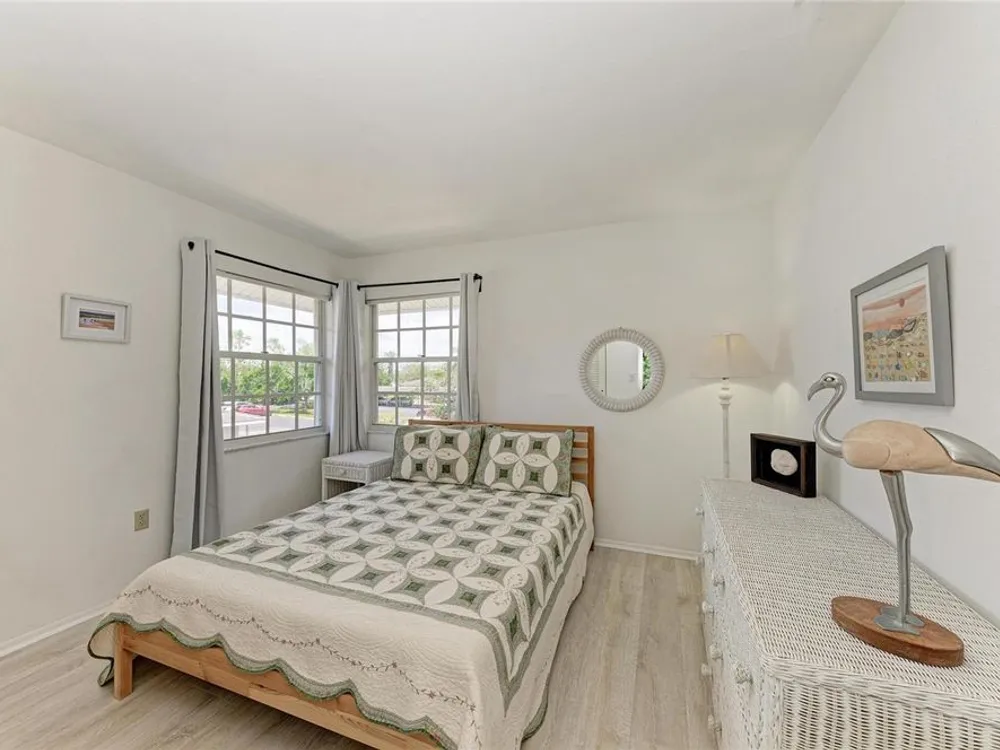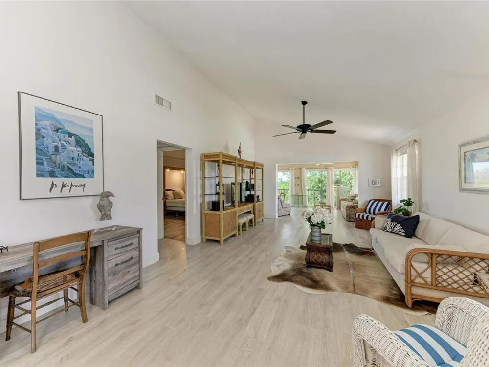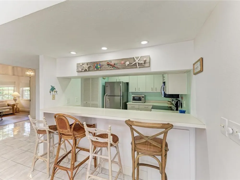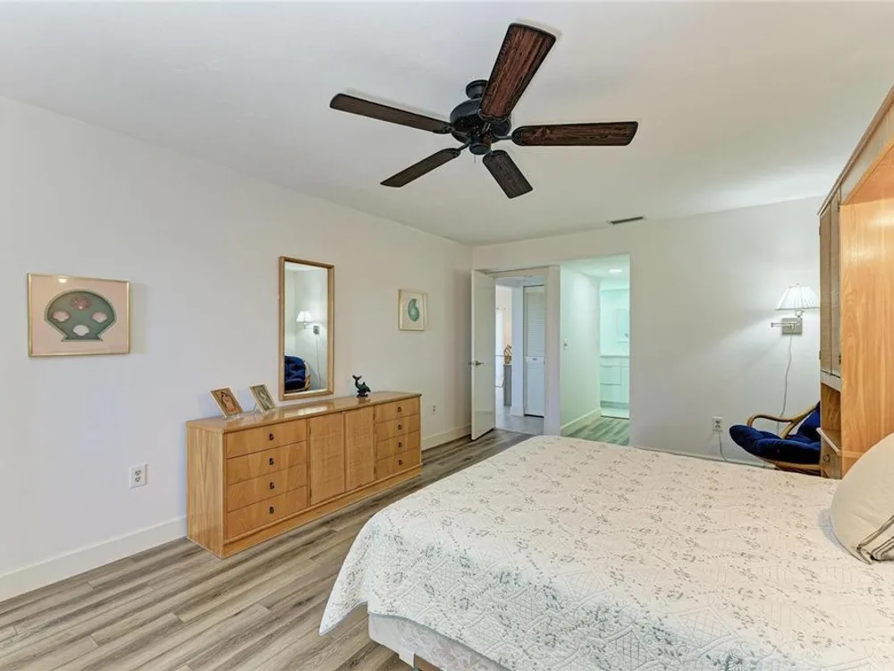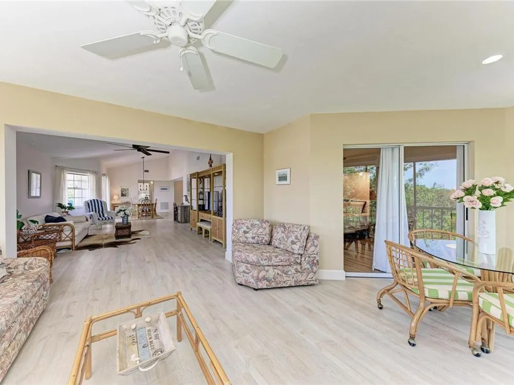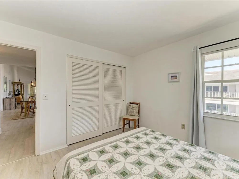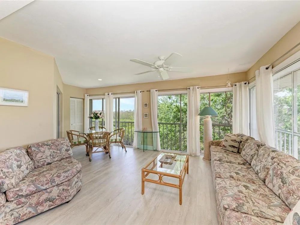 Beautifully maintained turnkey furnished 1,985 sqft, 3 bedroom, 2 bath condo with water view in Perico Bay Village! This spotless, move-in-ready condominium is being sold with all furniture and contents. Perico Bay is a friendly, amenity-rich, vibrant and active waterfront community. There are many socials and fun interactive activities in this maintenance-free community, offering a wonderful lifestyle at a great value for easy living. The largest floor plan in Perico Bay Village and structurally built with cement block from top to bottom, this spacious, light and bright corner top-floor unit provides water, wildlife and sunset views. Enjoy your morning coffee or watch the birds at sunset in the enclosed Florida room. Plus, the sliding glass doors open to allow a cool breeze for a relaxing atmosphere with a small Lagoon fed by Tampa Bay. Inside you will find a split bedroom floor plan, high vaulted living area ceiling, ceiling fans, kitchen with stainless steel appliances and breakfast bar, open living and dining area, primary bedroom walk-in closet with updated en-suite bath, interior washer and dryer, and extra walk-in storage closet. This home provides plenty of space and privacy for your guest with two additional bedrooms with a guest bath adjacent to the bedrooms. The home is outfitted with many recent updates including a brand new A/C unit and ducts, new primary bathroom with quartz counters, dual sinks and cabinets, updated walk-in tile shower with glass door, new kitchen stove/range and microwave and luxury vinyl flooring. Just off the dining area, enjoy outdoor living on the lanai to barbecue or relax to enjoy the outside cool breeze. The conveniently assigned covered carport parking spot is just outside your front door, plus access to additional guest parking. There are plenty of options to stay healthy and active in this community and enjoy the beautiful Florida outdoors. Perico Bay Club offers miles of recreational trails, a bird sanctuary, heated community pool near the condominium unit and heated Olympic-size community pool with lanes, an active clubhouse with many social events, fitness center, four lighted tennis courts, pickleball courts, shuffleboard, and direct water access paddleboard and kayak launch with storage and more. This well-maintained exclusive enclave of homes is also gated and staffed with a personal guard for extra security and privacy. Your condominium fees include exterior maintenance, cable, internet, water, sewer and trash. No age restrictions. Two pets allowed up to a combined weight of 40 pounds. In addition, this property is in a prime location, only minutes from Anna Maria Island and the best beaches, restaurants, shopping, arts and entertainment in the area. Call today to see this slice of paradise.