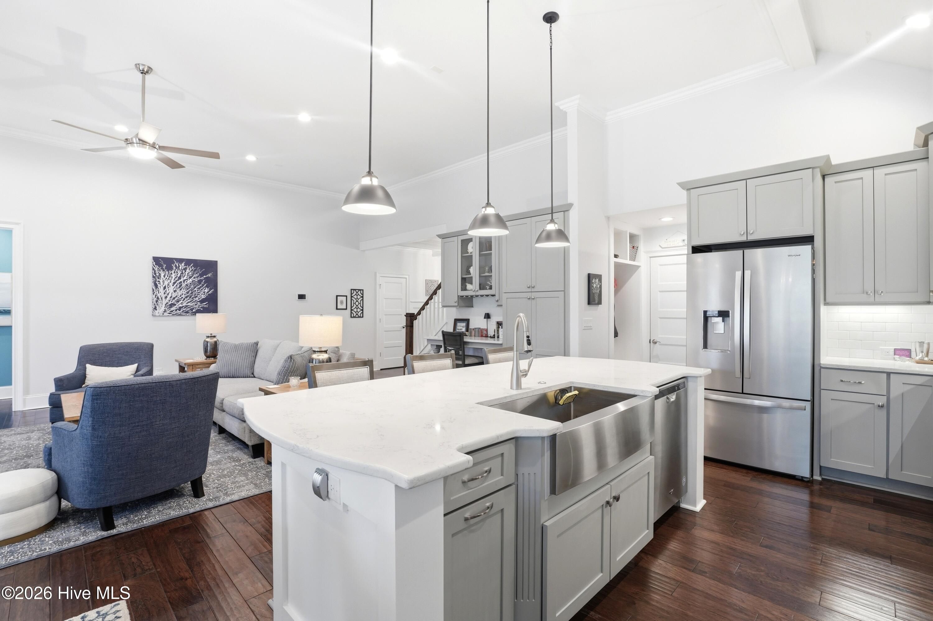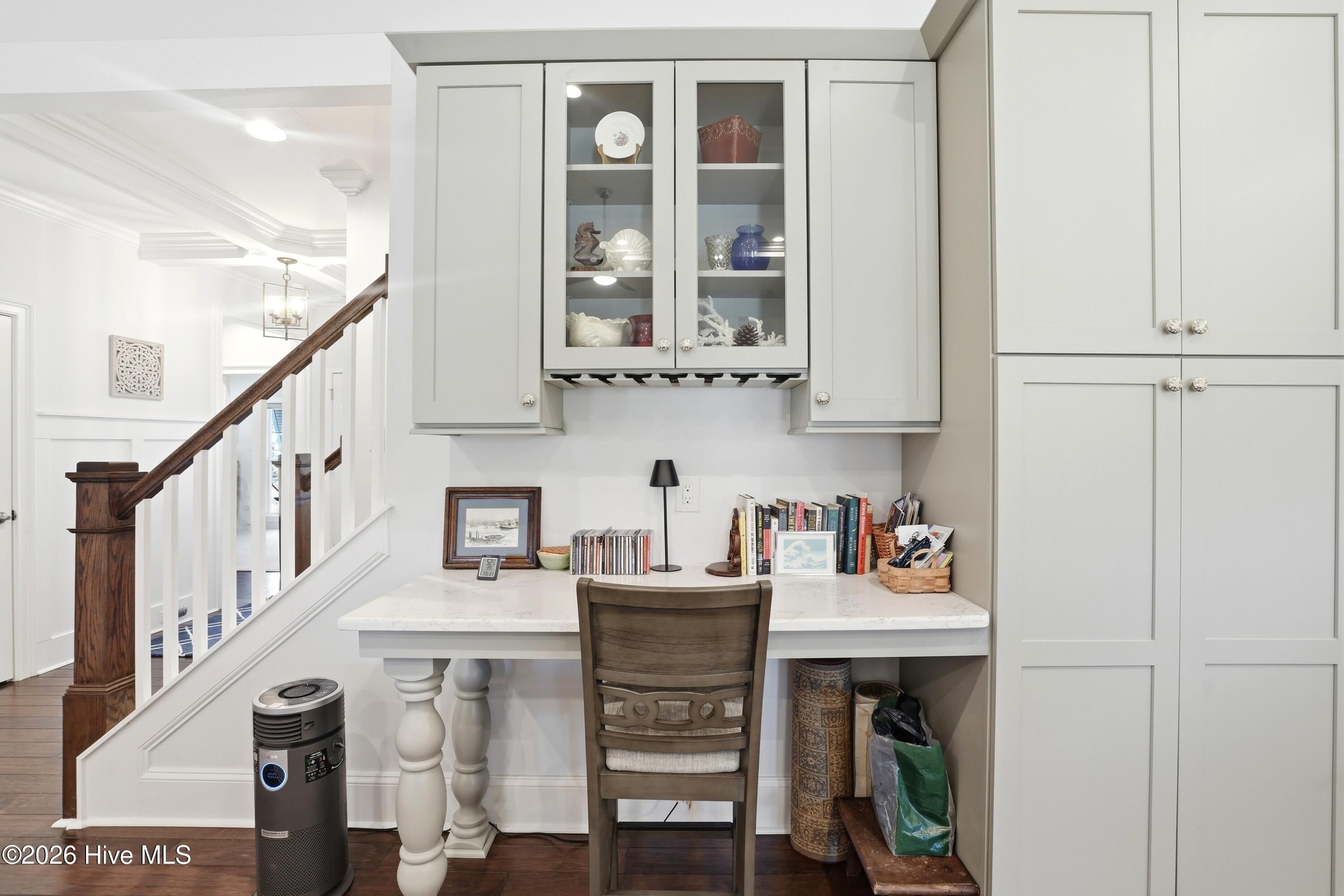 - Master Downstairs, Walk-in Closet(s), Vaulted Ceiling(s), Tray Ceiling(s), High Ceilings, Entrance Foyer, Mud Room, Solid Surface, Kitchen Island, Ceiling Fan(s), Pantry, Walk-in Shower
