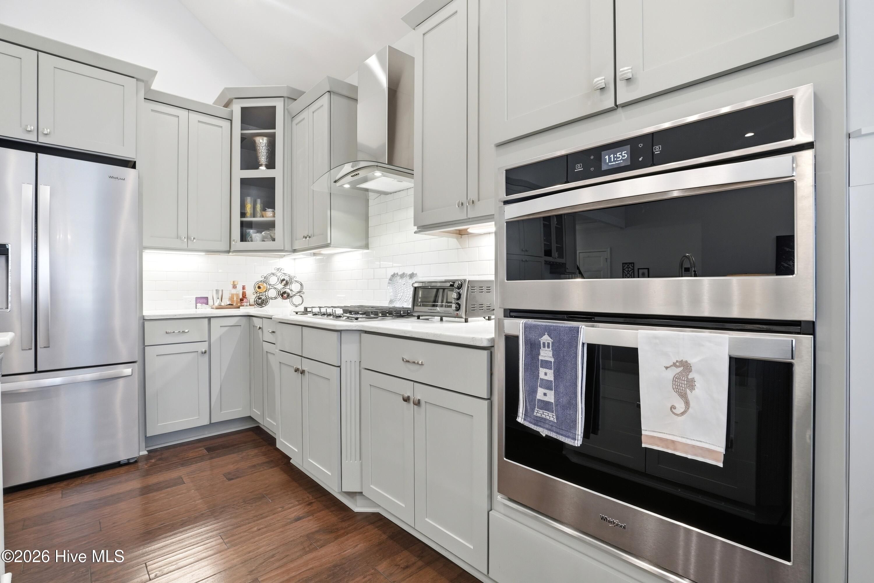 - Vented Exhaust Fan, Gas Cooktop, Electric Oven, Built-In Microwave, Washer, Refrigerator, Dryer, Disposal, Dishwasher