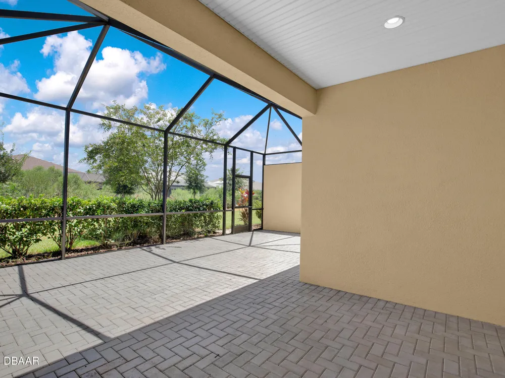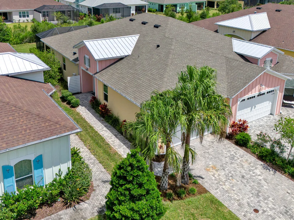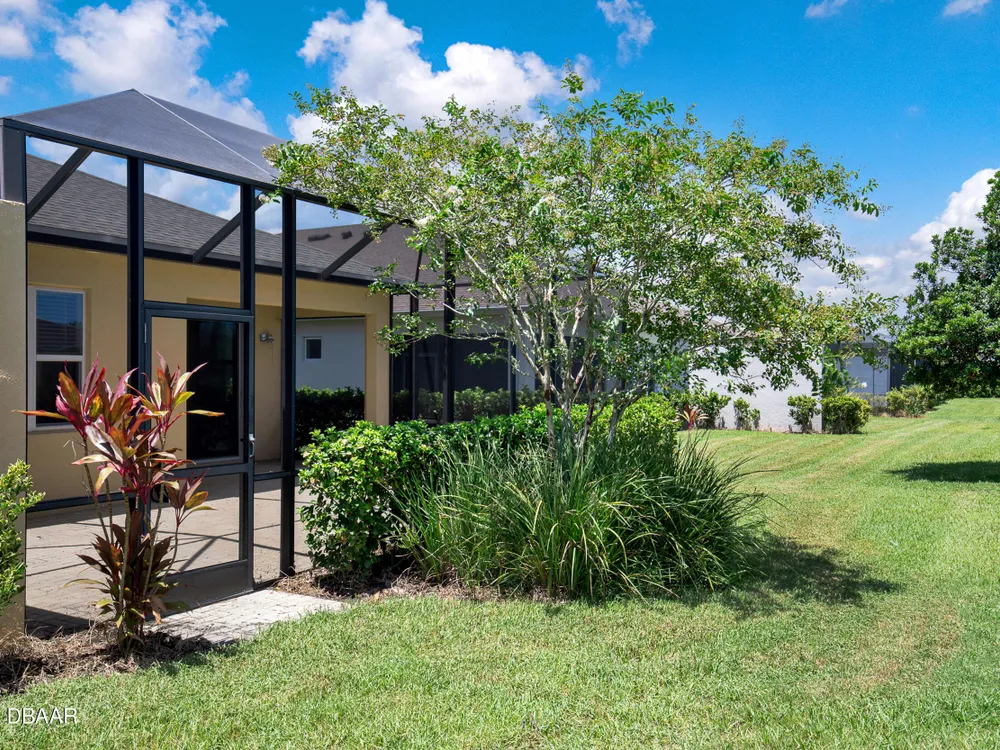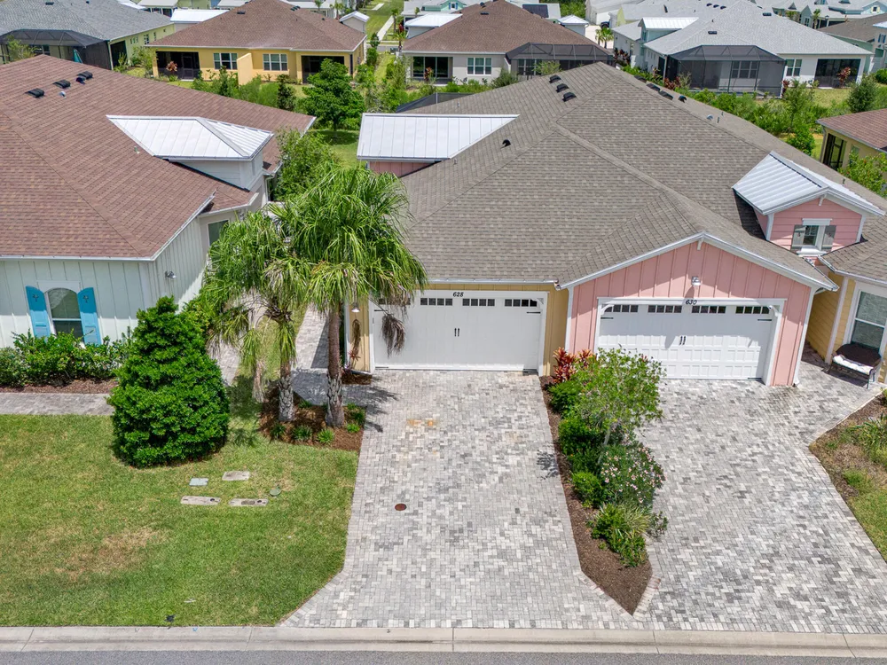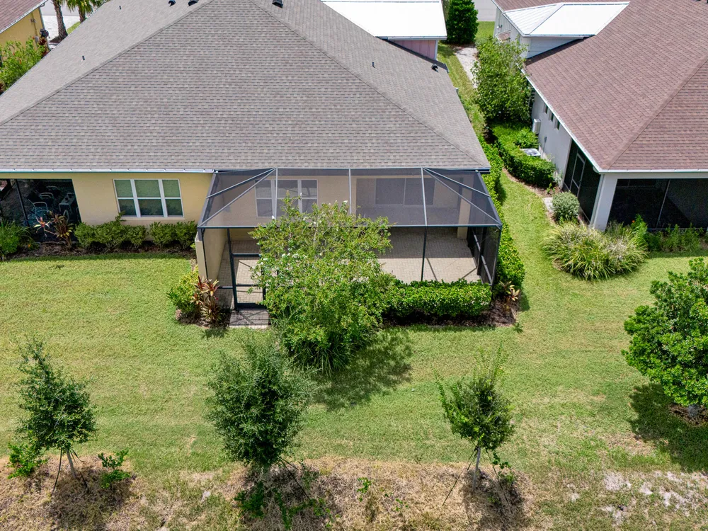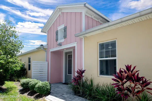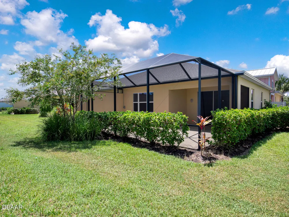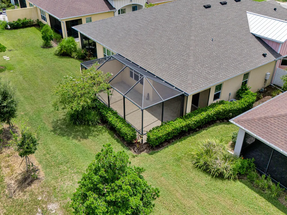 You'll love this sought-after Caicos Villa in Latitude Margaritaville! A spacious open floor plan featuring 2 bedrooms, 2 full bathrooms, den, and a large welcoming foyer. The kitchen features stainless steel appliances with 42'' soft-close cabinets and pull-out drawers, a gas range, custom backsplash, and granite countertops with a 60/40 split sink with tilt out storage drawer. Beautiful wood-look plank tile throughout the common areas, den, and laundry room. Both bedrooms feature upgraded carpet and padding. Custom flooring and frameless shower enclosure in the ensuite primary bathroom which also features granite countertops and plenty of storage. The second bathroom features a full tub with shower and granite countertop. Enjoy your Florida lifestyle on the extended screened in patio which is wired and ready for your new hot tub. Community amenities include dog park, fully outfitted Gym, resort-style pool, Town Square. Private beach club with shuttle.