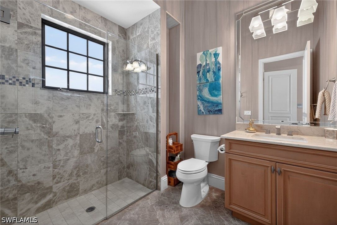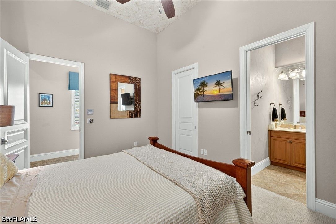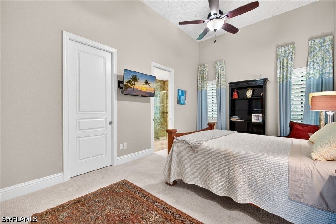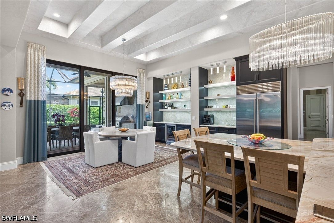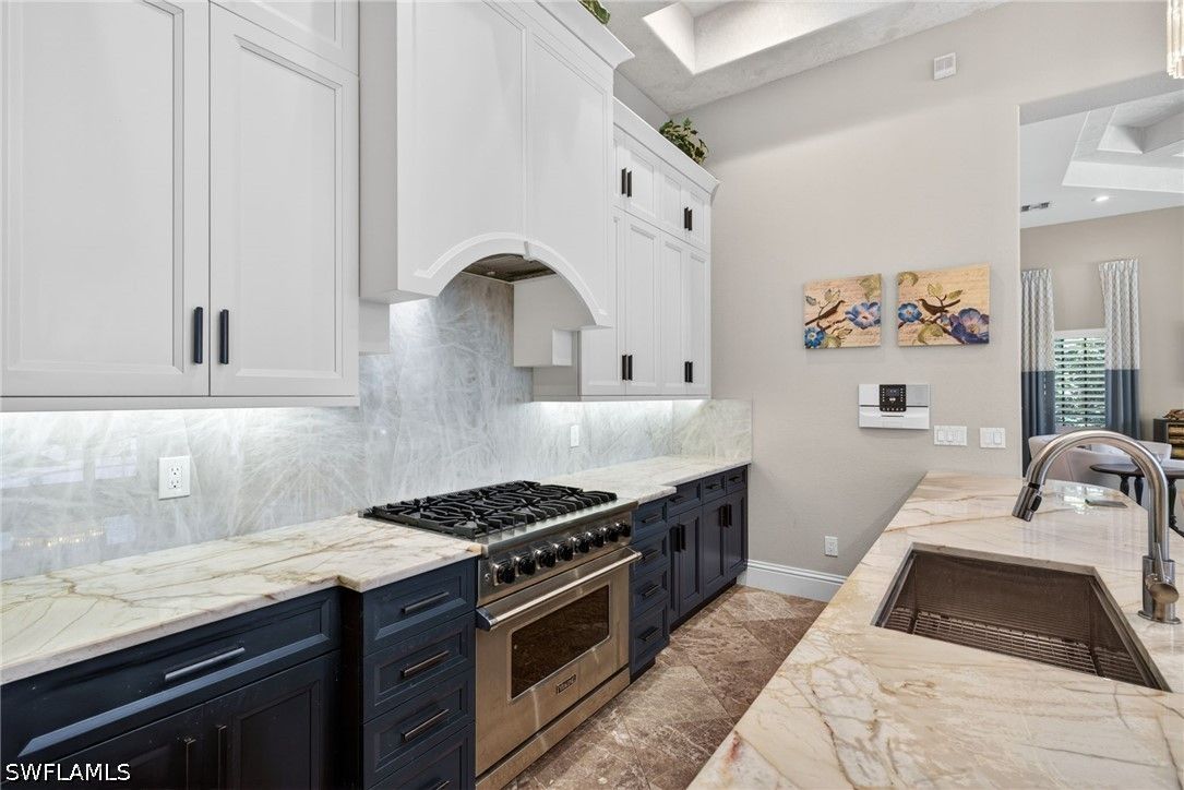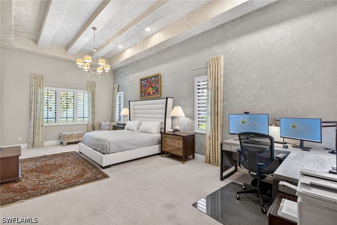 Tucked away at the end of a quiet, private street, this exceptional residence—constructed in 2015—offers more than 4,300 square feet of beautifully curated living space designed for both comfort and sophistication. From the moment you step inside, soaring ceilings with intricate architectural detail create an immediate sense of openness and elegance. The thoughtfully designed layout includes four spacious bedrooms, each with its own private bath, along with a versatile den ideal for a home office or additional living space. A dedicated dining room provides the perfect backdrop for formal entertaining, while the expansive kitchen seamlessly connects to the main living area, featuring updated appliances, abundant workspace, and a generously sized walk-in pantry. Outdoor living is equally impressive, with a screened-in lanai that serves as a true extension of the home. Complete with a fully equipped summer kitchen, it’s perfectly suited for entertaining or relaxed evenings poolside. The resort-style pool and spa are surrounded by lush, mature landscaping, creating a peaceful and private setting. Additional features include a whole-home generator, a three-car garage, and a circular driveway that enhances both convenience and curb appeal. The split-bedroom design ensures privacy, with the primary suite positioned as a secluded retreat. Located within the intimate enclave of Venezia Grande—an exclusive section of Vineyards with fewer than 25 homes—residents enjoy the rare benefit of a gated neighborhood tucked within a larger gated community, offering an added layer of security and exclusivity.