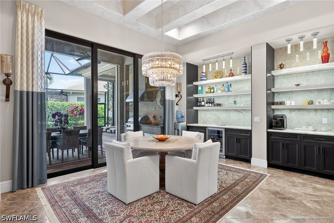 - Wet Bar, Breakfast Bar, Built-in Features, Bathtub, Tray Ceiling(s), Coffered Ceiling(s), Separate/Formal Dining Room, Dual Sinks, Entrance Foyer, French Door(s)/Atrium Door(s), High Ceilings, Living/Dining Room, Multiple Shower Heads, Custom Mirrors, Pantry, Separate Shower, Cable TV, Walk-In Pantry, Walk-In Closet(s), Window Treatments, High Speed Internet