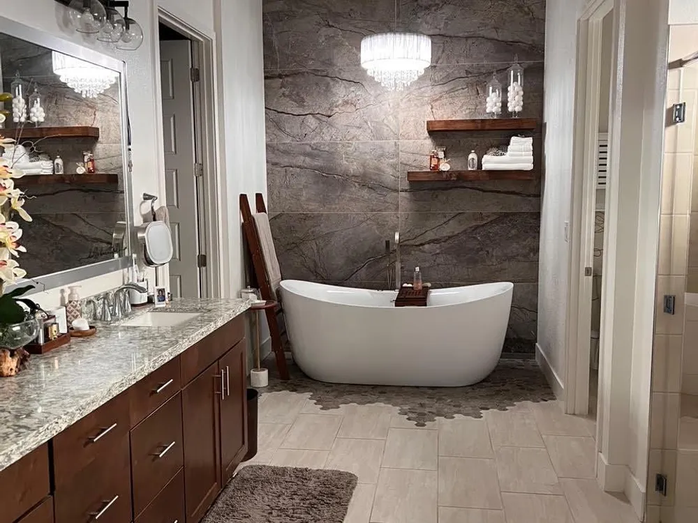 - Built-In Electric Oven, Free-Standing Refrigerator, Gas Cooktop, Range Hood, Ice Maker, Dishwasher, Disposal, Microwave, Double Oven, Tankless Water Heater, ENERGY STAR Qualified Appliances