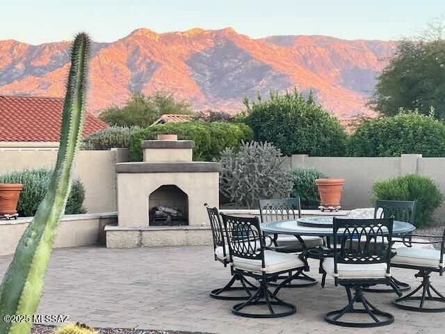 Your desert oasis awaits on Harmony Drive. A dreamy private courtyard welcomes you to this sought-after Cimarron model. This exceptional residence includes a main house, a guest house, a 2car garage & an additional third-car garage w/ built in work bench. Beautifully designed den w/ French doors. Crown molding & window shutters throughout. Chef's kitchen with granite countertops, high end custom cabinets, SS appliances & gas cooktop. An expansive great room w/gas fireplace opens to inviting outdoor living & entertaining areas. Impressive rear yard w/ built-in BBQ, water feature, outdoor FP & expanded rear terrace w/cobblestone pavers to enjoy stunning mountain view. An exceptional property w/ many custom features. SaddleBrooke is an award winning 55+. Call for your private showing today.