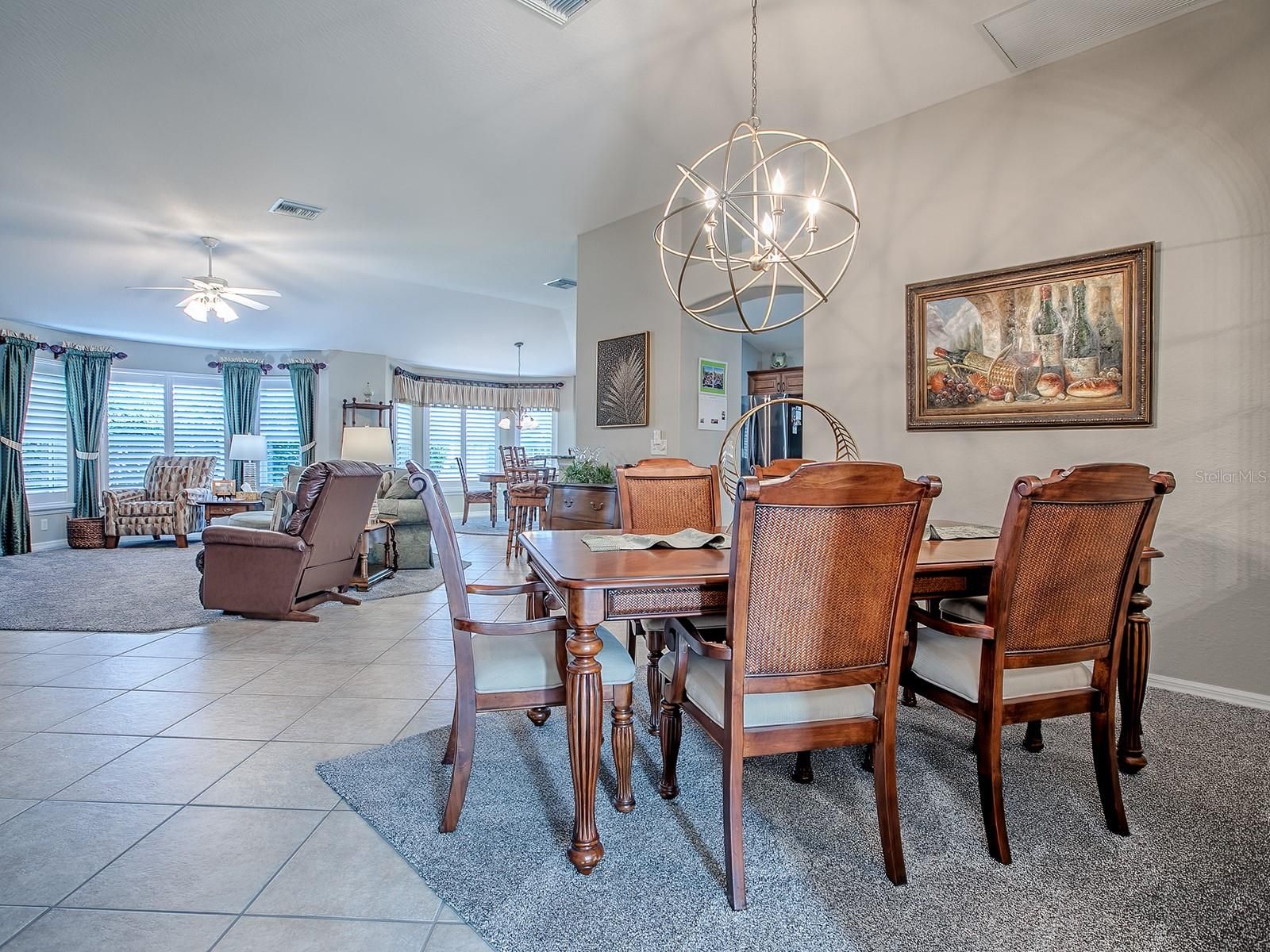 LOVELY 3 BEDROOM, 2 BATH LANTANA DESIGNER WITH GOLF CART GARAGE, SIDE ENCLOSED LANAI, AND PUTTING GREEN LOCATED ON A LARGE, PRIVATE CORNER LOT IN THE VILLAGE OF WINIFRED! NEWER HVAC 2022 (surge protector added in 2024), NEW ROOF 2022, HWH 2010. This stunning home has lovely CURB APPEAL with custom landscaping around the entire home, and painted drive and walkway. You’ll find DIAGONAL TILE throughout the home excluding the bedrooms, ROUNDED CORNERS, and KNOCKDOWN CEILINGS – (NO POPCORN), and PLANTATION SHUTTERS! The upgraded kitchen offers GRANITE COUNTERTOPS, and NEWER BLACK STAINLESS APPLIANCES with a natural GAS stove, lovely light cherry cabinetry, CLOSET PANTRY, and a breakfast bar! The casual dining area opens with FRENCH DOORS out to the enclosed lanai. This light and bright room will become your favorite place with a great view of the lovely landscaped side yard, and a door that opens out to a PAVERED PATIO and a PUTTING GREEN! This corner lot offers so much desired PRIVACY! All 3 bedrooms have carpet and vaulted ceilings, ceiling fans, and plantation shutters. The primary bedroom has an EN-SUITE BATH with a large a WALK-IN CLOSET with BUILT-INS; GRANITE countertops, dual sinks, a vanity, a window, separate toilet room, and a FRAMELESS RAIN GLASS SHOWER DOOR on the updated tiled shower. The spacious front guest room is being used as a den and office and both guest rooms have large closets! The guest bath has granite and lovely tiled shower with a FRAMELESS RAIN GLASS SHOWER DOOR with a custom valance. The inside laundry room has added cabinets for extra storage, washer and dryer that do convey with the home, a folding counter, and a small refrigerator. The oversized 2 car + GOLF CART GARAGE has plenty of room for all your needs, pull down attic stairs, a sink, and a water filtration system. This is a well maintained, lovely home located in a The POPULAR VILLAGE of WINIFRED. You’re close to LAKE SUMTER LANDING, ARNOLD PALMER LEGENDS COUNTRY CLUB offering 27 holes of golf, a pro shop, and driving range, and a beautiful restaurant with a spectacular view of the course. Recreation Centers close by as well as specialty grocery stores, dining, gas station, banks, all the conveniences within minutes. COME SEE ALL THIS LOVELY HOME HAS TO OFFER!