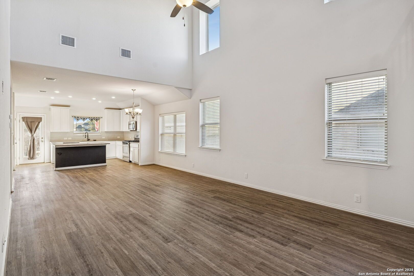 Welcome to 629 Jaboncillo St in Veramendi. A thoughtfully designed 4-bedroom, 2.5-bath home with the primary suite on the main level and a bright, open-concept living, dining, and kitchen layout. The heart of the home is the spacious kitchen featuring a large island, upgraded faucet, and a convenient cup washer, perfect for everyday living and entertaining. Enjoy LVP flooring throughout the main living areas, plus a covered patio and low-maintenance, smaller yard with the added privacy of no rear neighbors. Upstairs you'll find three secondary bedrooms and a shared full bath, including one larger bedroom with a walk-in closet. This would be ideal for a flex space, guest room, or game room setup. Living in Veramendi means access to an active, connected lifestyle with community parks, trails, and amenity experiences like resort-style pool features and gathering spaces. Plus, the community is zoned to New Braunfels ISD (including Veramendi Elementary) and sits close to shopping, dining, and entertainment options for easy day-to-day convenience.