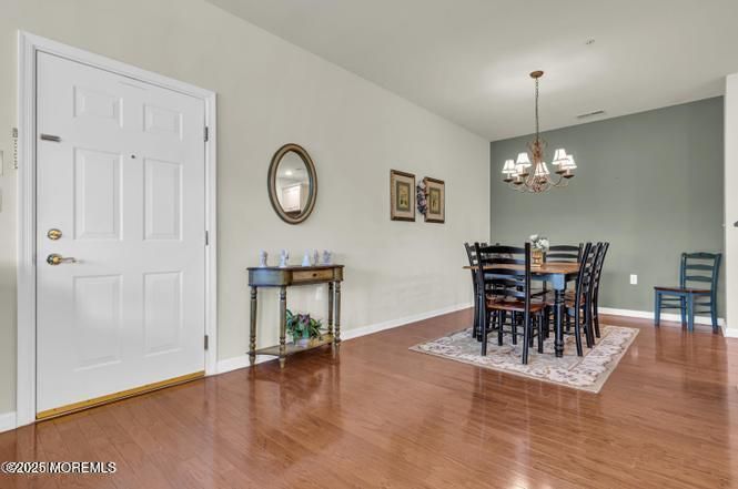 Come enjoy comfortable, carefree living in this beautifully appointed condo in Covington Village, Lakewood's premier 55+ active adult community. Located in an elevator building, this spacious 2nd floor unit features an open floor plan with airy 9' ceilings, hardwood floors in the common areas, a stylish kitchen with upgraded cabinets and granite countertops, and a private balcony for outdoor relaxation. The primary bedroom offers a walk-in closet and en-suite bath. Residents enjoy a state-of-the-art clubhouse with impressive great room, fitness center, movie theater, billiard room, banquet hall, large furnished patio, and a heated in-ground pool. Pets permitted (up to 30 lbs). Ideally located close to the Garden State Parkway, shopping, restaurants and Jersey Shore beaches. A Must See!