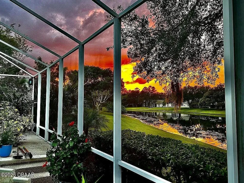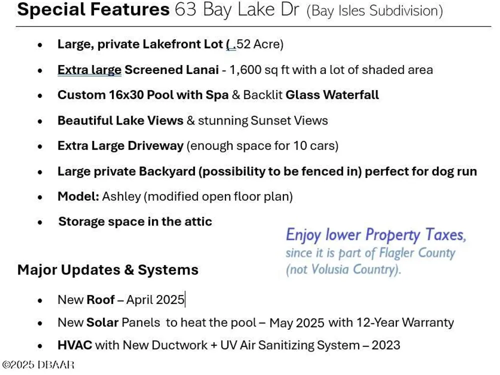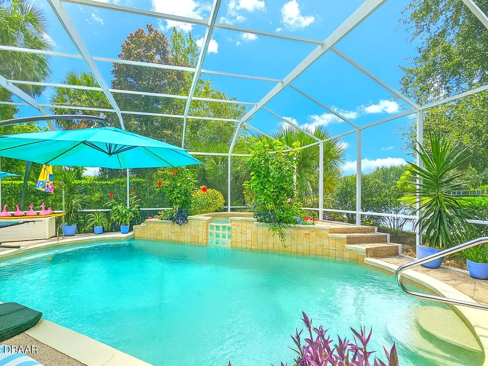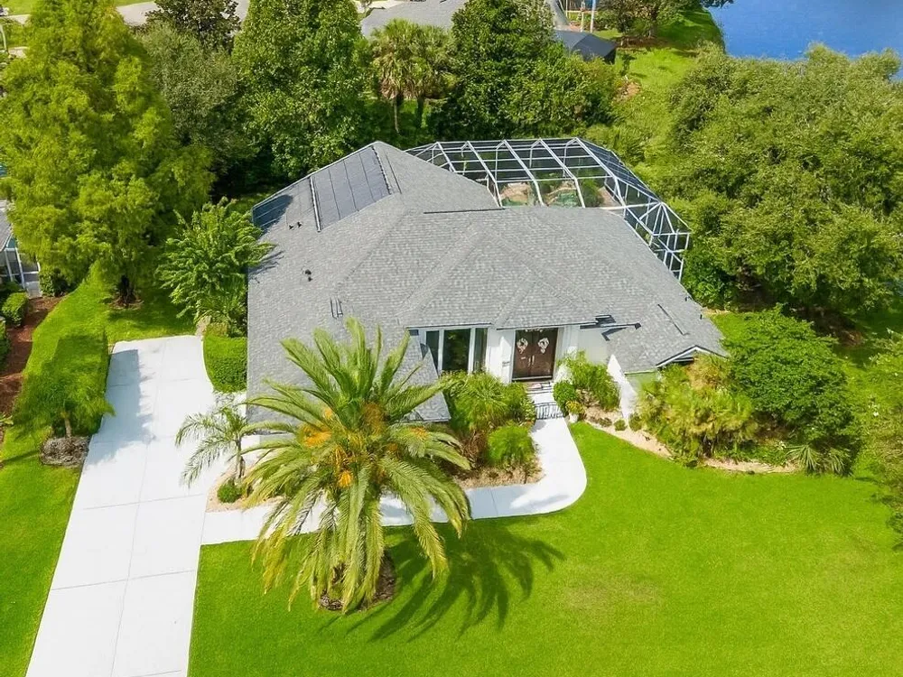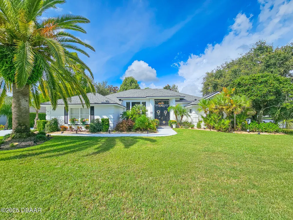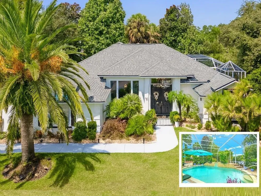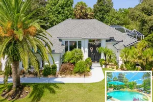 SUPER MOTIVATED SELLER !!! Don't miss this opportunity to own this beautifully updated move-in ready pool home in the prestigious Plantation Bay Community. Set on a rare .52-acre lakefront corner lot this hom e offers privacy, space, and sweeping water views. Your private oasis awaits with a 1,600 sq ft screened lanai featuring a sparkling 16 x 32 pool, spa, and glass waterfall—an entertainer's dream. Inside, the chef's kitchen shines with white cabinetry, granite countertops, stainless-steel appliances, and stylish pendant and under-cabinet lighting. It opens seamlessly to a spacious dining area with trey ceiling and floor-to-ceiling windows. Be captivated by soaring ceilings, and elegant finishes, including a magnificent modern crystal chandelier in the welcoming foyer. Major upgrades provide peace of mind: NEW roof, NEW solar pool panels (2025), and HVAC with new ductwork (2023). The private master suite is a retreat of its own, with Sliding door to the Lenai and French doors to the bathroom, dual vanities accented by sleek black fixtures, a soaking tub, a glass-enclosed shower, and a barn-door walk-in closet. The split floor plan ensures privacy, with two additional bedrooms and a full bath tucked behind French doors on the opposite side of the home - ideal for guests or family. The popular Ashley model has been opened for a spacious, light-filled layout, with dramatic architectural windows, plantation shutters, and a new electric fireplace. The living areas impress with dramatic architectural windows, soaring ceilings, and a new electric fireplace, all flowing effortlessly to the lanai through a wall of glass sliders. Recent upgrades include a shark-coated garage floor, a new garage system with camera, Rain Bird digital sprinkler, dawn-to-dusk lighting, and Whirlpool washer/dryer. The large backyard can be fenced in and is perfect for a dog run. The lanai screens, surrounding the expansive pool and spa with outdoor shower, were replaced in 2020. Community Lifestyle: Plantation Bay offers two golf courses, tennis, pickleball, bocce, a modern fitness and wellness center with pools, spa services, and multiple dining options. With 24-hour manned gates and patrols, it is one of the safest and most desirable communities in Ormond Beach. And the best part: It belongs to Flagler County, so you will enjoy lower Property Taxes than Volusia County! Disclaimer: All information is deemed reliable but not guaranteed.
