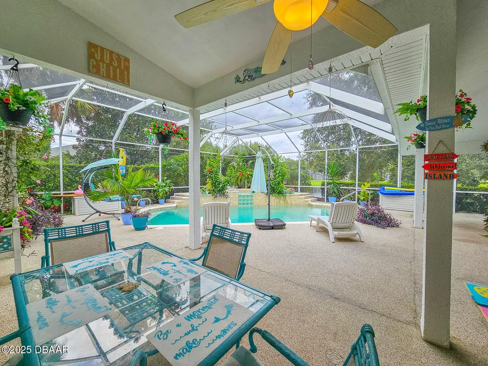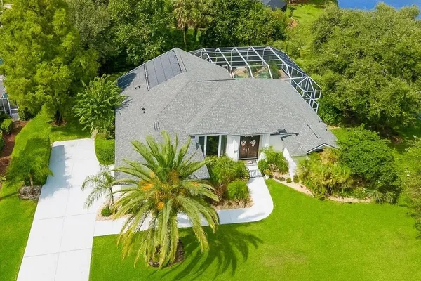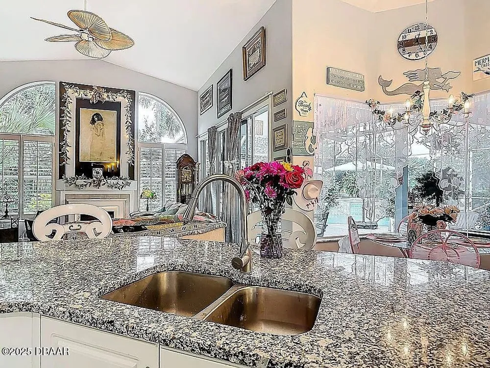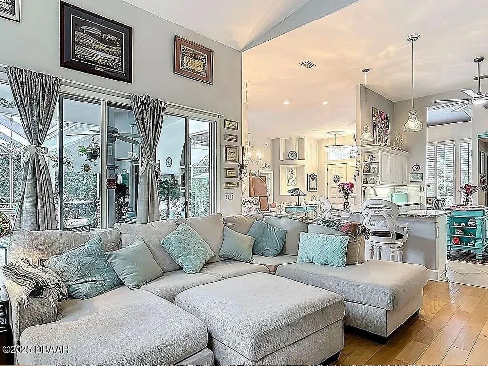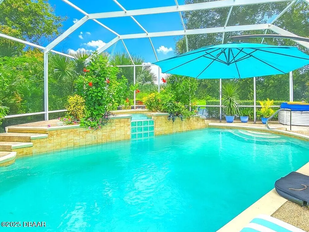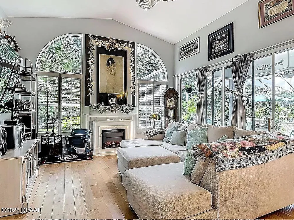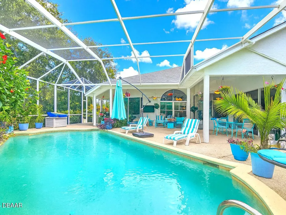 SUPER MOTIVATED SELLER !!! Don't miss this opportunity to own this beautifully updated move-in ready pool home in the prestigious Plantation Bay Community. Set on a rare .52-acre lakefront corner lot this hom e offers privacy, space, and sweeping water views. Your private oasis awaits with a 1,600 sq ft screened lanai featuring a sparkling 16 x 32 pool, spa, and glass waterfall—an entertainer's dream. Inside, the chef's kitchen shines with white cabinetry, granite countertops, stainless-steel appliances, and stylish pendant and under-cabinet lighting. It opens seamlessly to a spacious dining area with trey ceiling and floor-to-ceiling windows. Be captivated by soaring ceilings, and elegant finishes, including a magnificent modern crystal chandelier in the welcoming foyer. Major upgrades provide peace of mind: NEW roof, NEW solar pool panels (2025), and HVAC with new ductwork (2023). The private master suite is a retreat of its own, with Sliding door to the Lenai and French doors to the bathroom, dual vanities accented by sleek black fixtures, a soaking tub, a glass-enclosed shower, and a barn-door walk-in closet. The split floor plan ensures privacy, with two additional bedrooms and a full bath tucked behind French doors on the opposite side of the home - ideal for guests or family. The popular Ashley model has been opened for a spacious, light-filled layout, with dramatic architectural windows, plantation shutters, and a new electric fireplace. The living areas impress with dramatic architectural windows, soaring ceilings, and a new electric fireplace, all flowing effortlessly to the lanai through a wall of glass sliders. Recent upgrades include a shark-coated garage floor, a new garage system with camera, Rain Bird digital sprinkler, dawn-to-dusk lighting, and Whirlpool washer/dryer. The large backyard can be fenced in and is perfect for a dog run. The lanai screens, surrounding the expansive pool and spa with outdoor shower, were replaced in 2020. Community Lifestyle: Plantation Bay offers two golf courses, tennis, pickleball, bocce, a modern fitness and wellness center with pools, spa services, and multiple dining options. With 24-hour manned gates and patrols, it is one of the safest and most desirable communities in Ormond Beach. And the best part: It belongs to Flagler County, so you will enjoy lower Property Taxes than Volusia County! Disclaimer: All information is deemed reliable but not guaranteed.