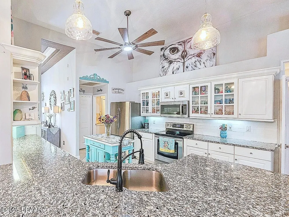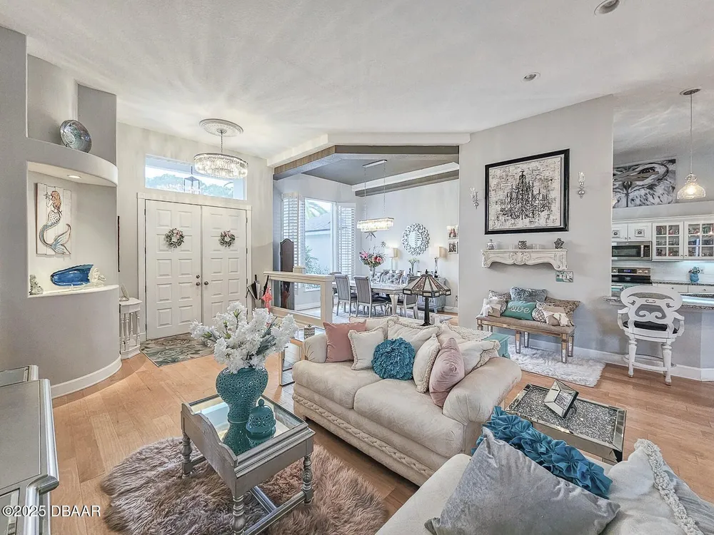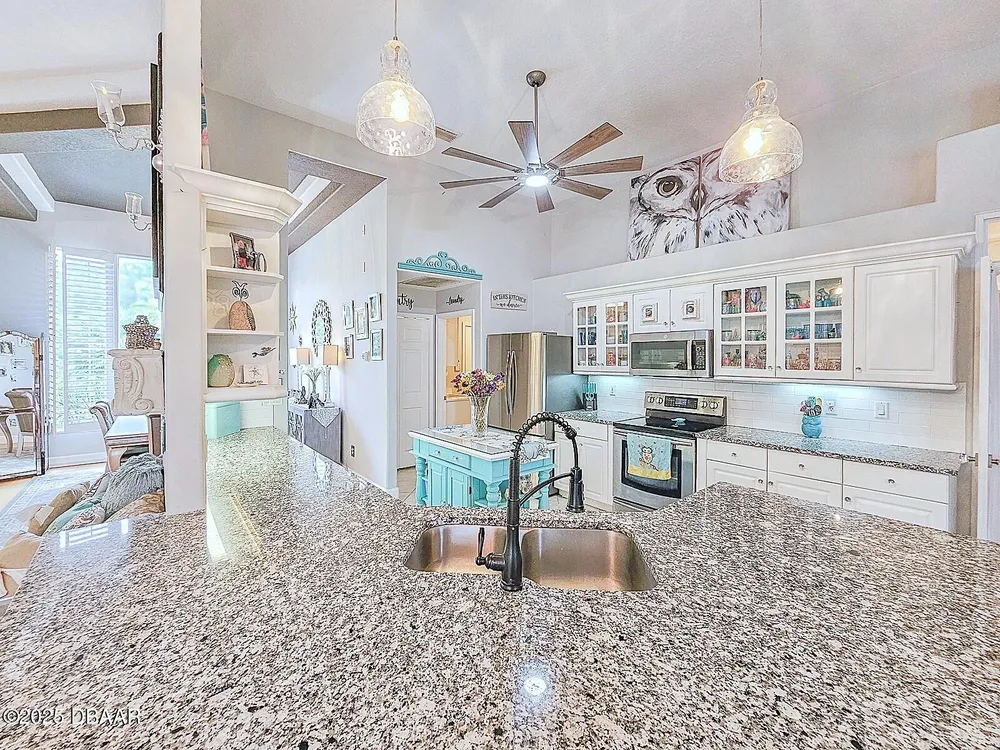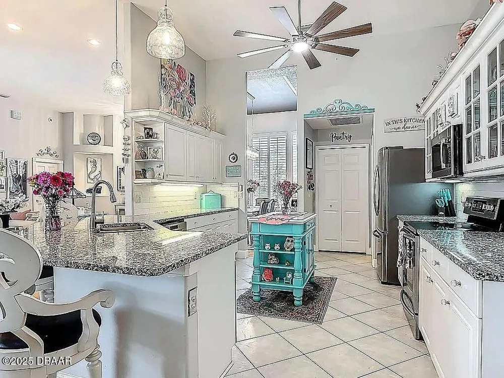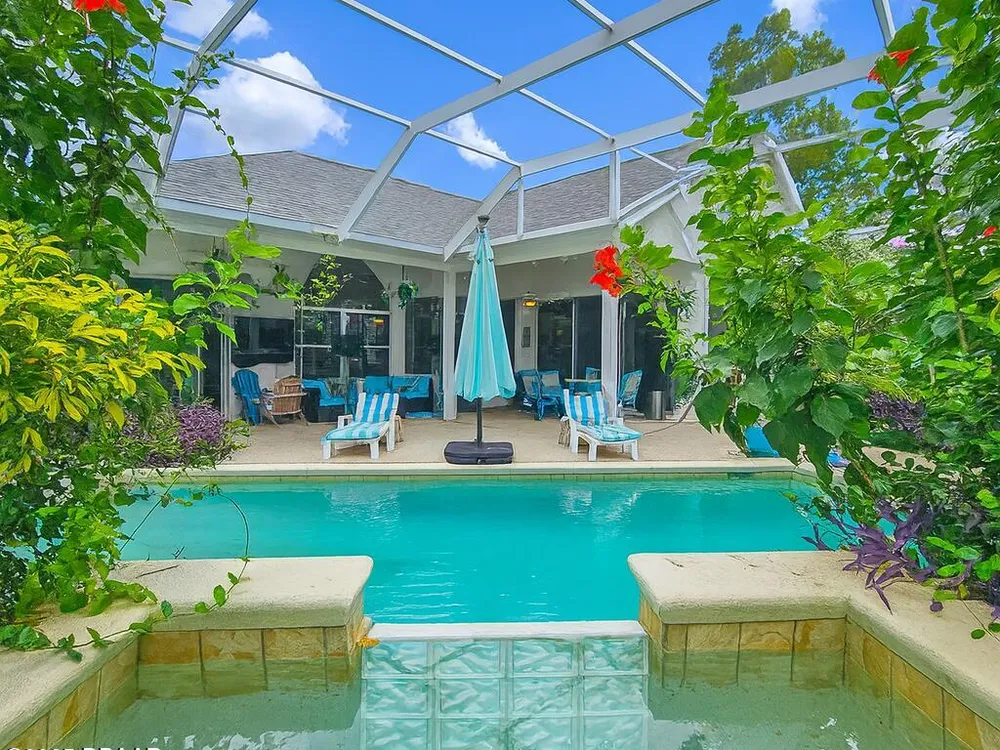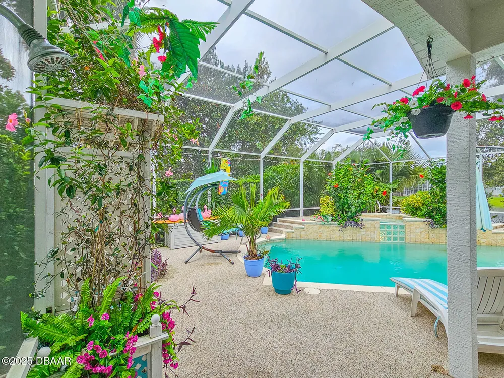 SUPER MOTIVATED SELLER !!! Don't miss this opportunity to own this beautifully updated move-in ready pool home in the prestigious Plantation Bay Community. Set on a rare .52-acre lakefront corner lot this hom e offers privacy, space, and sweeping water views. Your private oasis awaits with a 1,600 sq ft screened lanai featuring a sparkling 16 x 32 pool, spa, and glass waterfall—an entertainer's dream. Inside, the chef's kitchen shines with white cabinetry, granite countertops, stainless-steel appliances, and stylish pendant and under-cabinet lighting. It opens seamlessly to a spacious dining area with trey ceiling and floor-to-ceiling windows. Be captivated by soaring ceilings, and elegant finishes, including a magnificent modern crystal chandelier in the welcoming foyer. Major upgrades provide peace of mind: NEW roof, NEW solar pool panels (2025), and HVAC with new ductwork (2023). The private master suite is a retreat of its own, with Sliding door to the Lenai and French doors to the bathroom, dual vanities accented by sleek black fixtures, a soaking tub, a glass-enclosed shower, and a barn-door walk-in closet. The split floor plan ensures privacy, with two additional bedrooms and a full bath tucked behind French doors on the opposite side of the home - ideal for guests or family. The popular Ashley model has been opened for a spacious, light-filled layout, with dramatic architectural windows, plantation shutters, and a new electric fireplace. The living areas impress with dramatic architectural windows, soaring ceilings, and a new electric fireplace, all flowing effortlessly to the lanai through a wall of glass sliders. Recent upgrades include a shark-coated garage floor, a new garage system with camera, Rain Bird digital sprinkler, dawn-to-dusk lighting, and Whirlpool washer/dryer. The large backyard can be fenced in and is perfect for a dog run. The lanai screens, surrounding the expansive pool and spa with outdoor shower, were replaced in 2020. Community Lifestyle: Plantation Bay offers two golf courses, tennis, pickleball, bocce, a modern fitness and wellness center with pools, spa services, and multiple dining options. With 24-hour manned gates and patrols, it is one of the safest and most desirable communities in Ormond Beach. And the best part: It belongs to Flagler County, so you will enjoy lower Property Taxes than Volusia County! Disclaimer: All information is deemed reliable but not guaranteed.