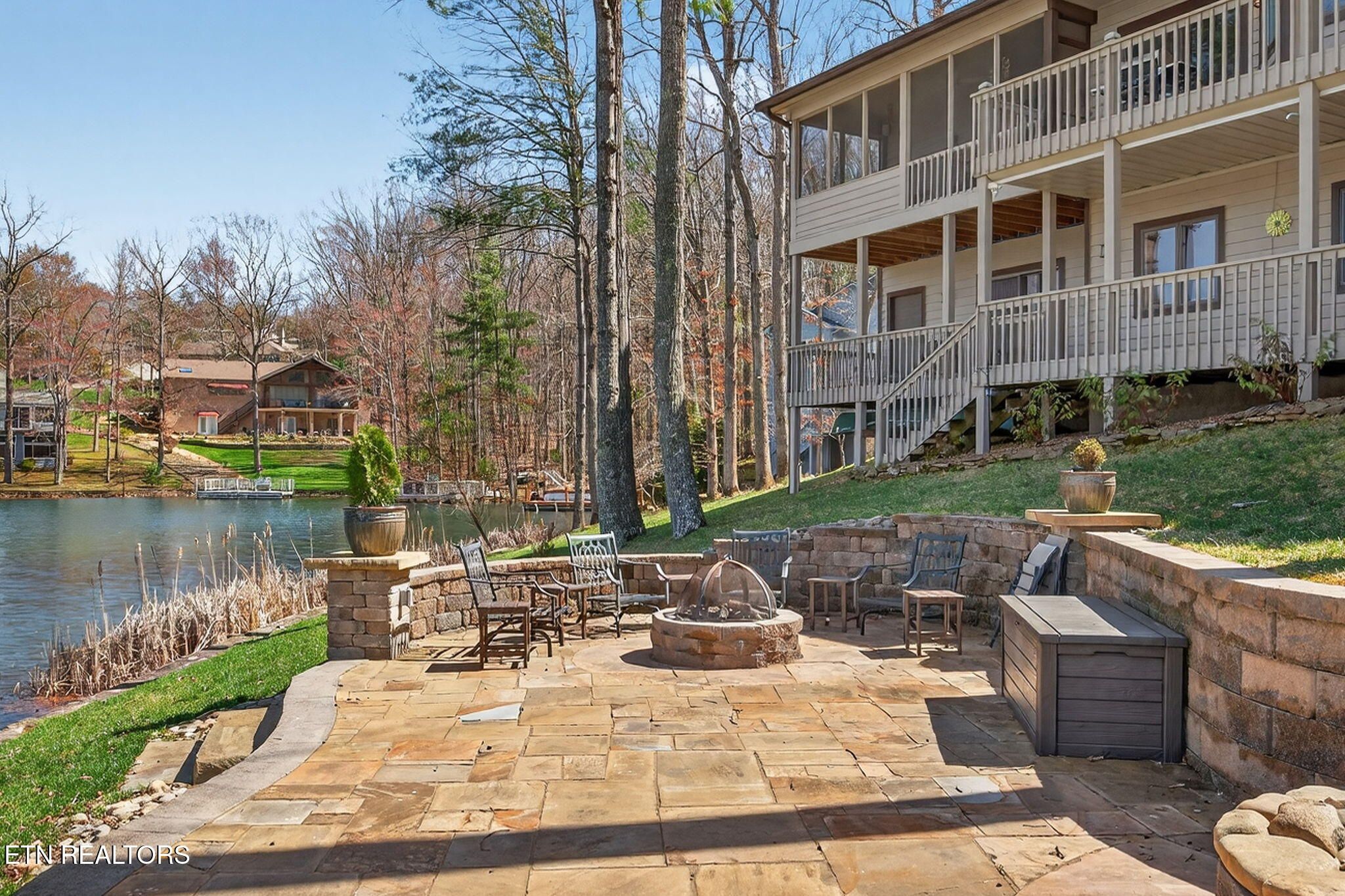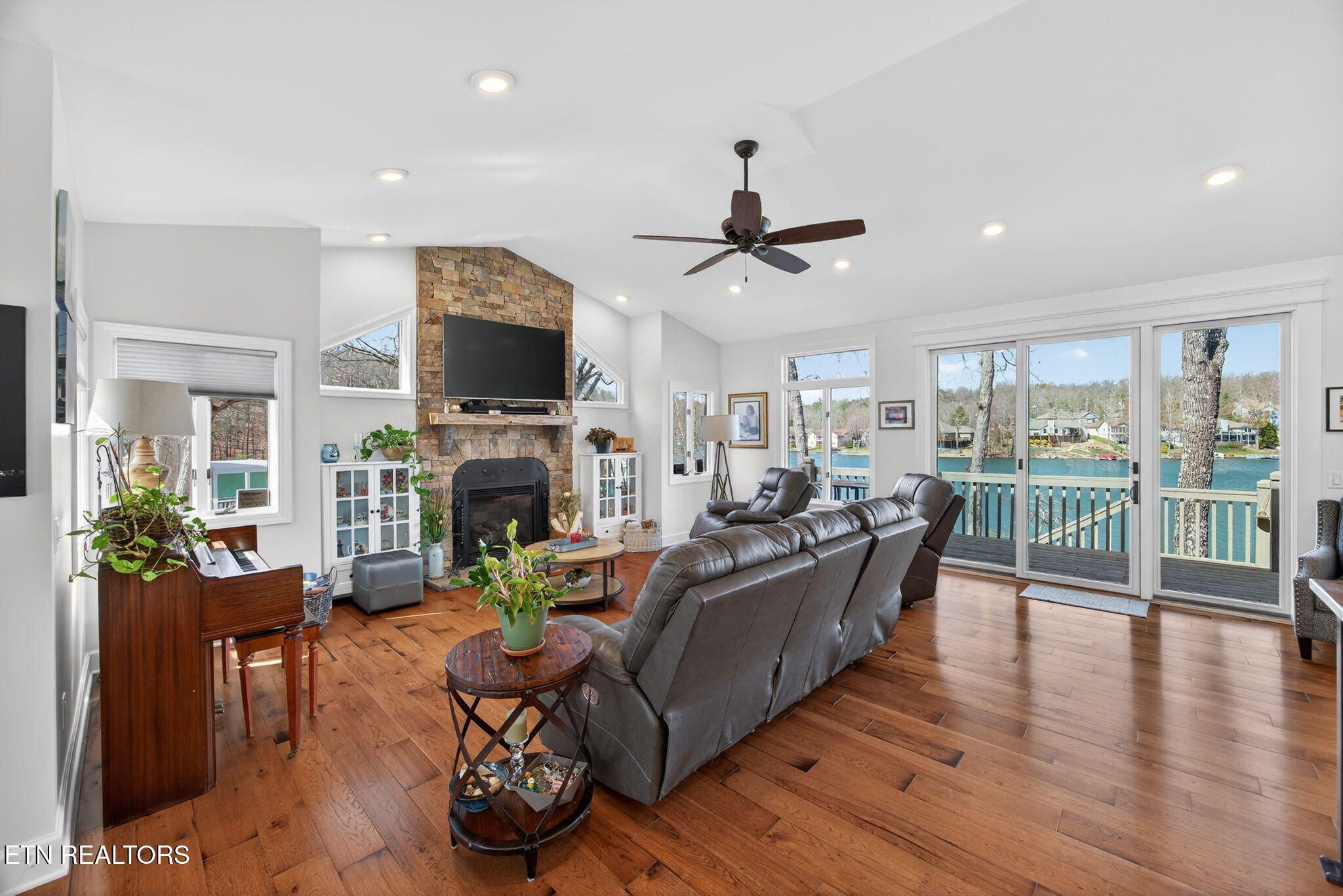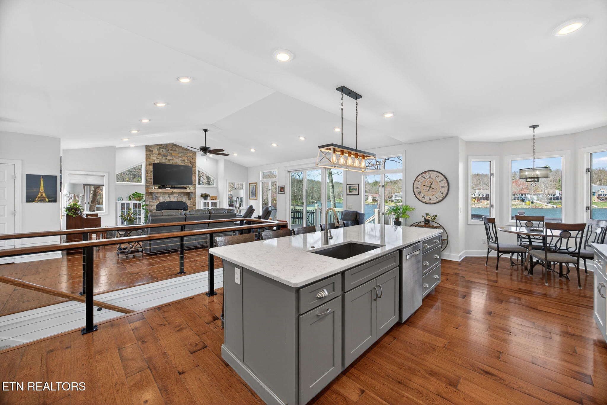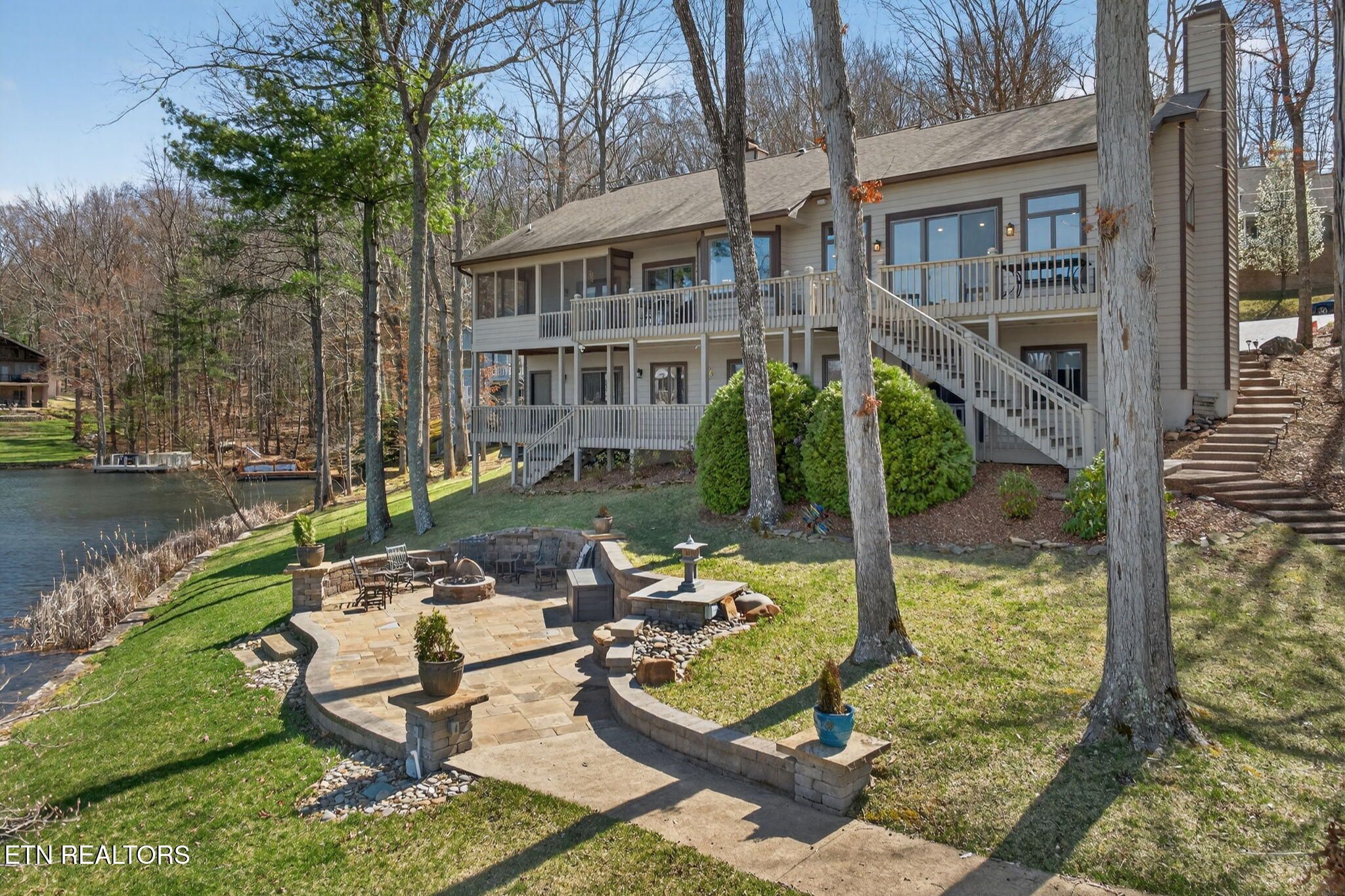 If you're looking for a sweeping view of Lake Dartmoor, this home is not to be overlooked. This amazing lakefront property offers 4 bedrooms and 3 1/2 baths with approximately 3500 square feet of gracious living space. Comfortable yet elegant, entering the living room you are provided with panoramic floor to ceiling views of the lake. An open floorplan takes you to the kitchen with an island that can accommodate 4-6 people for visiting with your guests. The kitchen offers a breakfast nook before taking you into the formal dining room which can seat 12. As you move through the main floor, you will find the large master ensuite offering access to the deck as well as a walk-in closet, a small office and a bath featuring a double vanity with storage, a walk-in shower and linen closet. The hall from the Master bedroom leads to the laundry room, a half bath and garage entry. It also offers access to the dedicated walk-in pantry. The lower level offers a spacious family room with a full kitchen and walk out access to the deck and lake views. In addition, you will discover 1 master bedroom also offering access to the deck and 2 additional bedrooms. There are 2 full baths, one with a walk-in shower and one with a tub providing hospitality coupled with privacy for guests. The patio doors from the lower-level family room take you down a few steps to a stone paver fire pit featuring a water fall which is the perfect place to enjoy a beautiful sunset with friends and family before heading to your dock for an evening sail. (Pontoon boat available for purchase.) Extensive storage is also provided on the lower level. Webster couldn't include enough adjectives to describe the beauty and comfort of this home. Don't miss this one-of-a-kind home...let's make it yours! Buyer to verify all information to make an informed offer.