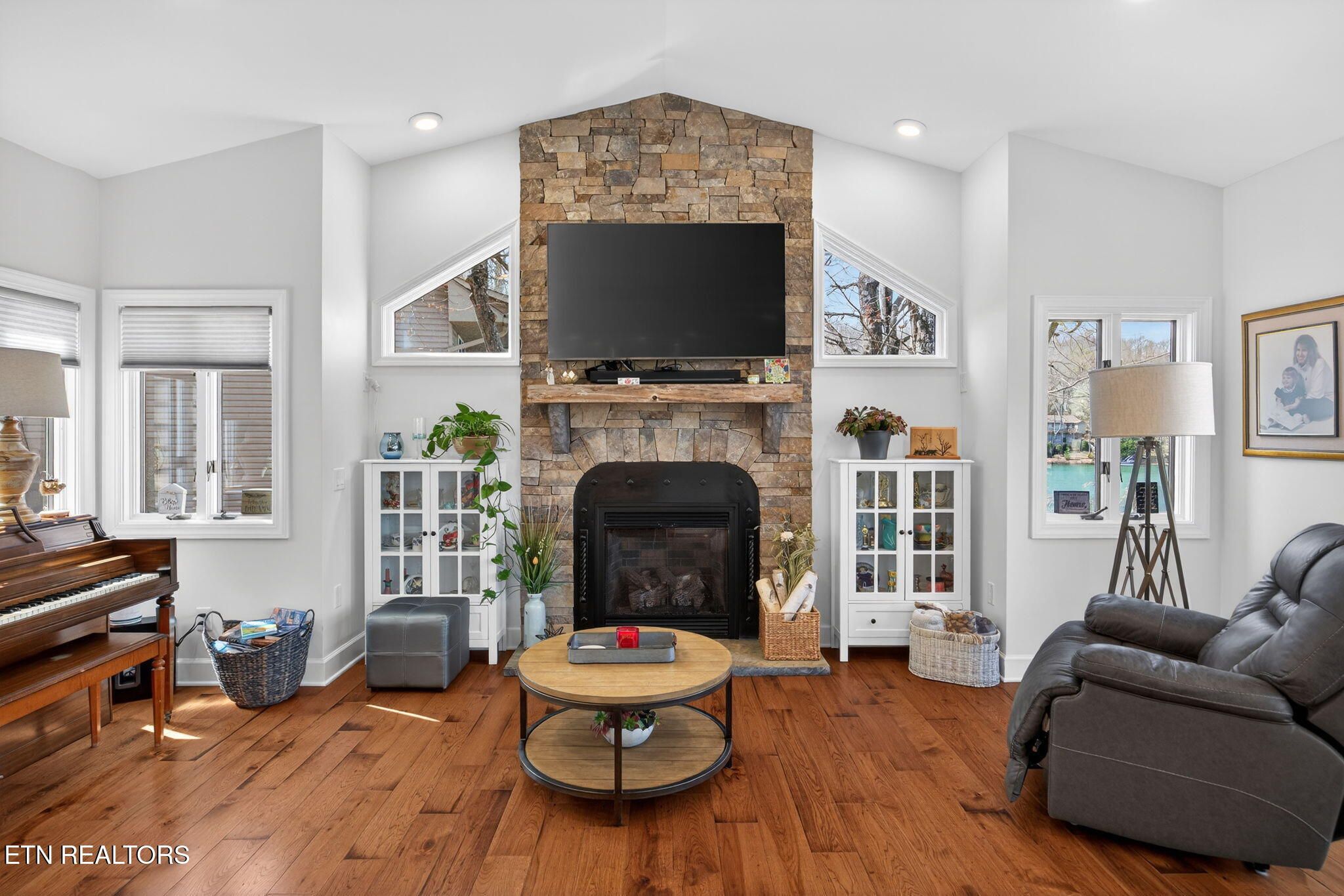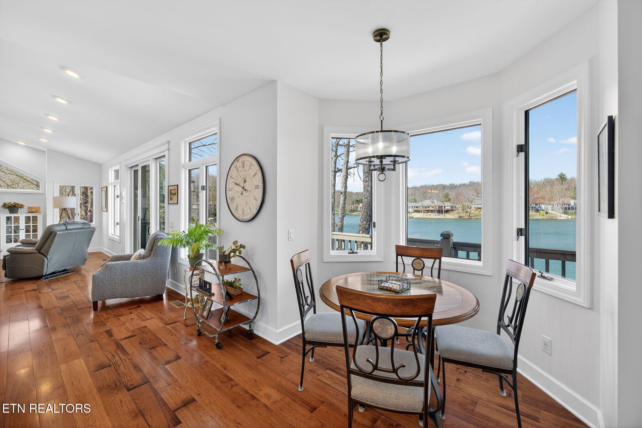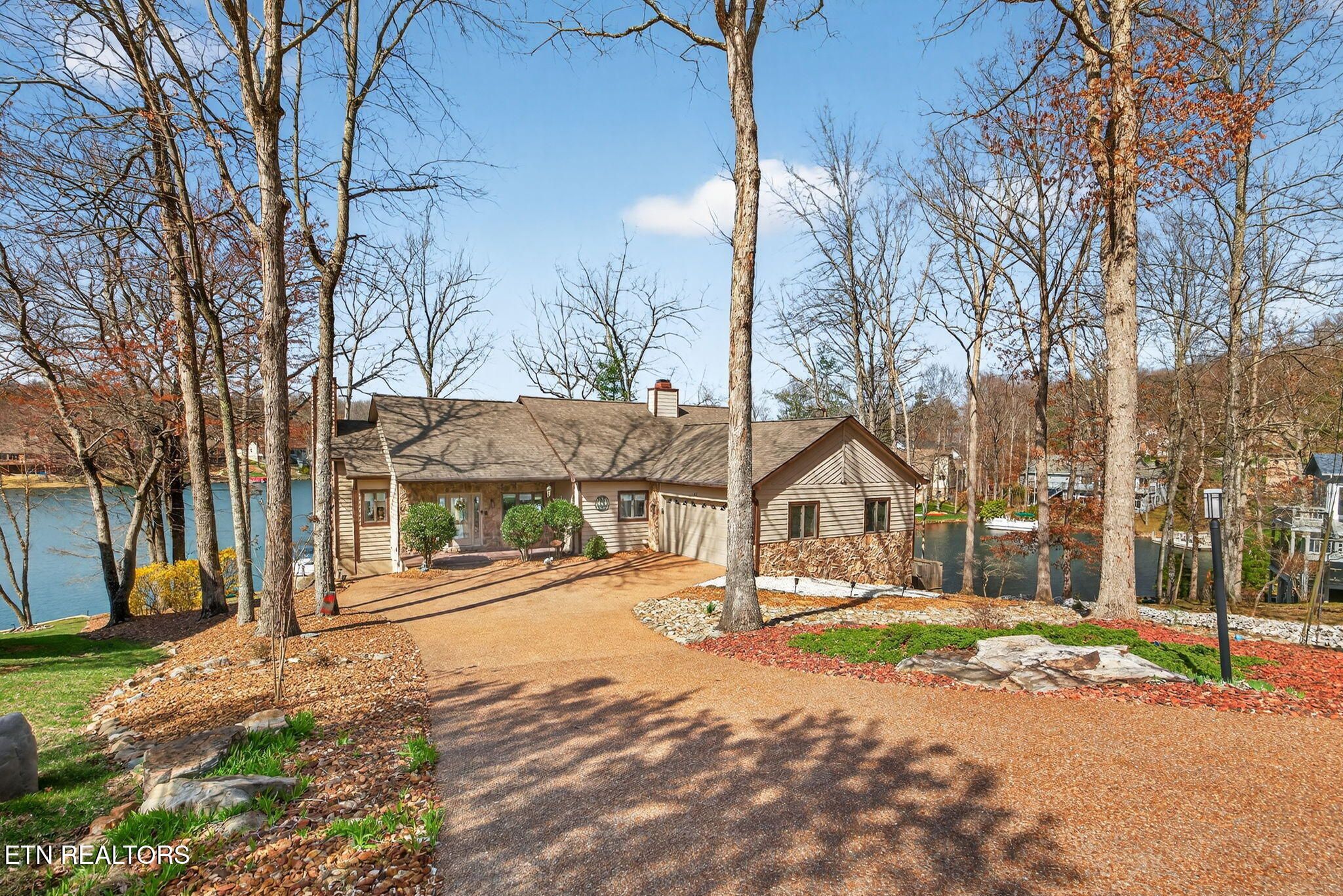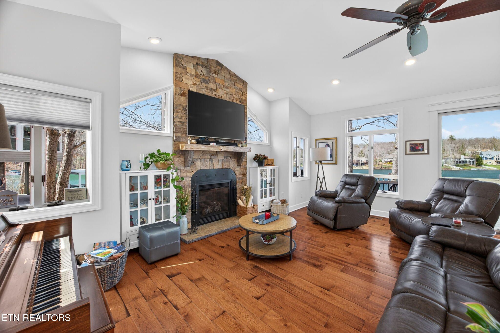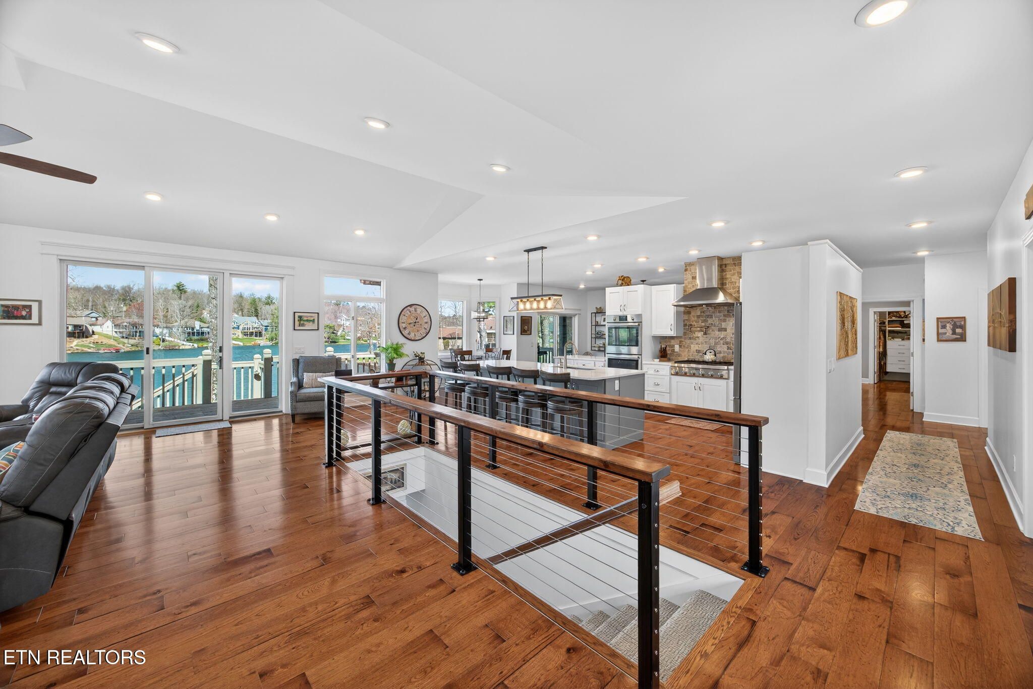 If you're looking for a sweeping view of Lake Dartmoor, this home is not to be overlooked. This amazing lakefront property offers 4 bedrooms and 3 1/2 baths with approximately 3500 square feet of gracious living space. Comfortable yet elegant, entering the living room you are provided with panoramic floor to ceiling views of the lake. An open floorplan takes you to the kitchen with an island that can accommodate 4-6 people for visiting with your guests. The kitchen offers a breakfast nook before taking you into the formal dining room which can seat 12. As you move through the main floor, you will find the large master ensuite offering access to the deck as well as a walk-in closet, a small office and a bath featuring a double vanity with storage, a walk-in shower and linen closet. The hall from the Master bedroom leads to the laundry room, a half bath and garage entry. It also offers access to the dedicated walk-in pantry. The lower level offers a spacious family room with a full kitchen and walk out access to the deck and lake views. In addition, you will discover 1 master bedroom also offering access to the deck and 2 additional bedrooms. There are 2 full baths, one with a walk-in shower and one with a tub providing hospitality coupled with privacy for guests. The patio doors from the lower-level family room take you down a few steps to a stone paver fire pit featuring a water fall which is the perfect place to enjoy a beautiful sunset with friends and family before heading to your dock for an evening sail. (Pontoon boat available for purchase.) Extensive storage is also provided on the lower level. Webster couldn't include enough adjectives to describe the beauty and comfort of this home. Don't miss this one-of-a-kind home...let's make it yours! Buyer to verify all information to make an informed offer.