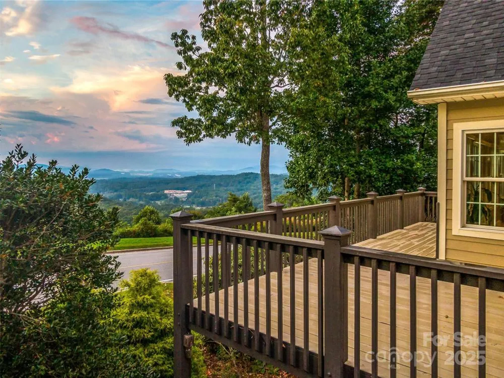 Watch the sun set over the Blue Ridge Mountains every evening from your private back deck with views of Pisgah Mountain. Located in Carriage Park gated community, this home offers breathtaking year round mountain views that will make you never want to leave. Step inside to a spacious open floor plan featuring a light filled living room with gas fireplace, vaulted ceilings, and hardwood floors. The kitchen is outfitted with granite countertops, stainless steel appliances, a gas range, wet bar and breakfast bar. Towards the front of the home you have your dining room, perfect for those family gatherings, and a separate space for an office, den, or reading room. The large bedrooms each offer walk in closets and spacious bathrooms with walk in showers. As you enter the lower level to a second living room, you are greeted by a gas fireplace for another cozy spot to spend your time. The walk out basement allows you to utilize more outdoor space. The third bedroom and bathroom make for a great place for guests to enjoy a private stay. Additional features include a whole house generator, tankless water heater, central vacuum, washer/dryer, second fridge and freezer, and ample basement space you can use as storage or expand the lower level for more square footage! Carriage Park offers a 24 hour gated entry, club house, indoor pool, tennis courts, walking trails, and community activities. Just 3 miles from Hendersonville and less than 9 miles to Asheville airport, Carriage Park is conveniently location just a short drive to anything you may need!