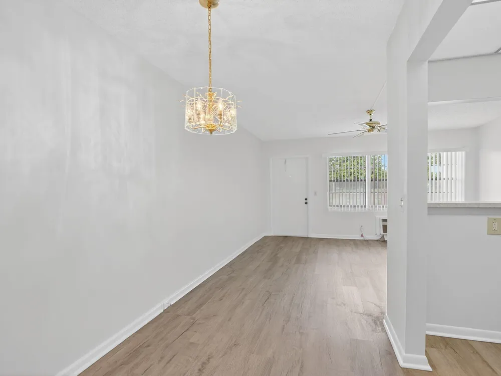 Move right into this freshly painted 1-bedroom, 1-bath condo! Featuring brand-new vinyl flooring throughout, this bright and inviting unit boasts a spacious, modern feel. Perfect for comfortable living and easy maintenance. Enjoy the tranquil views of the lake from your second floor balcony. This unit is conveniently located near the elevator.Dorset at Century Village Boca Raton is a 55+ condominium community within the larger, beautiful Century Village development. Known for its extensive amenities and active adult lifestyle Century Village offers a clubhouse with fitness center, swimming pools, tennis and pickleball courts, theater and entertainment venues, walking and biking trails and shuttle bus service to local shopping centers.