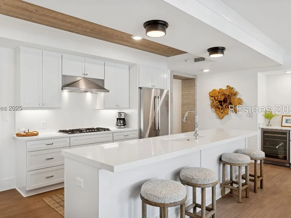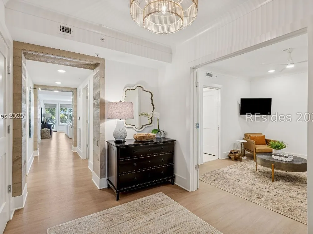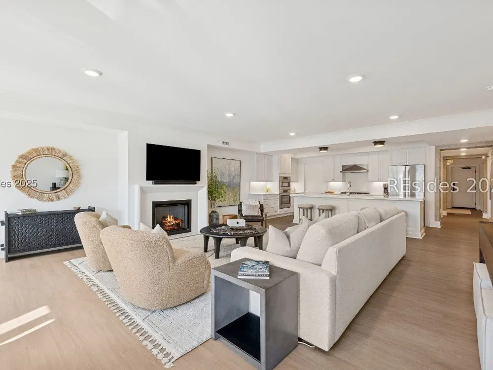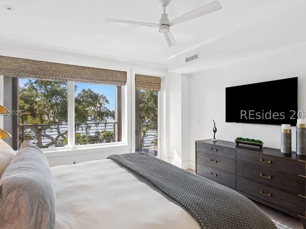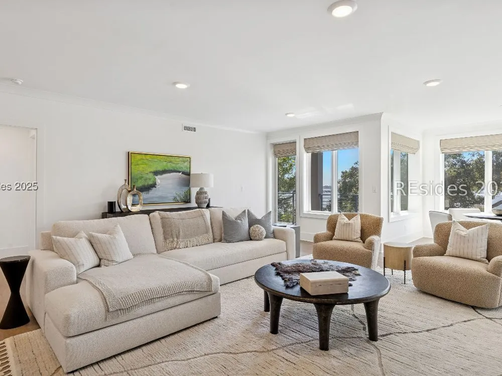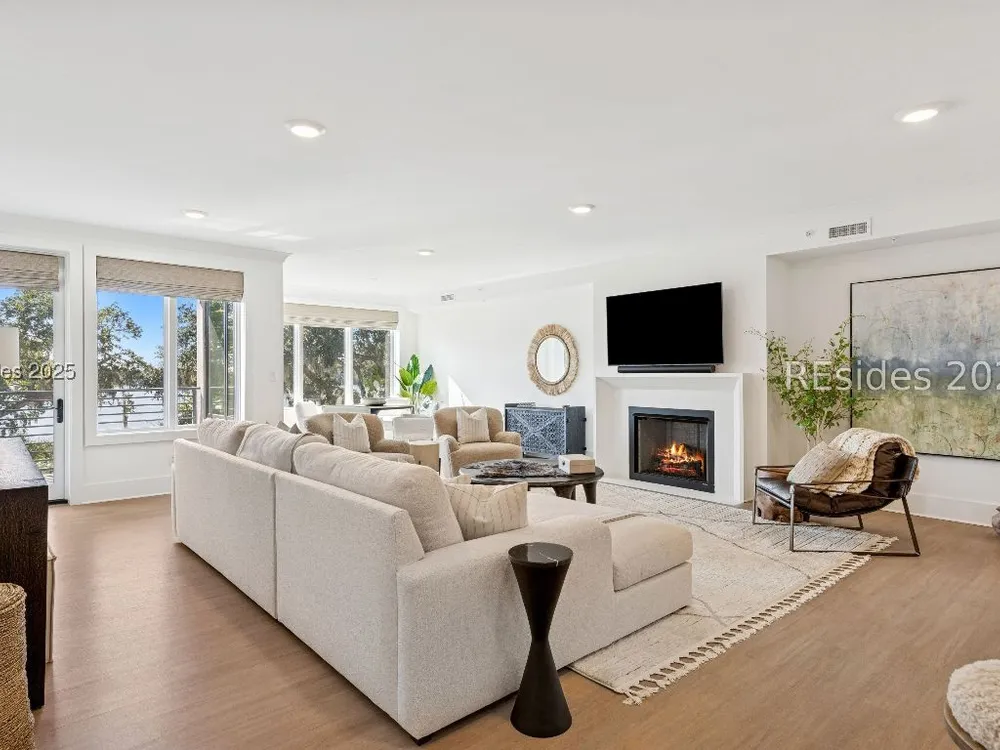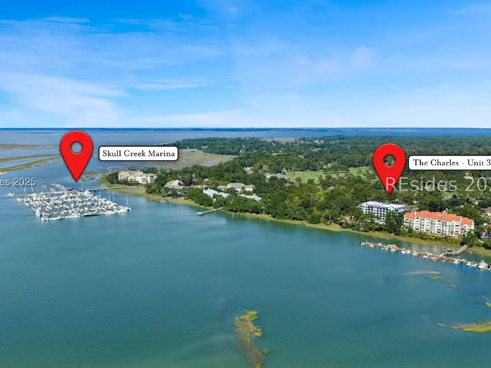 Spectacular waterfront living at The Charles! This 3BR/3.5BA villa overlooks Skull Creek Marina and the Intracoastal Waterway, offering breathtaking views of dolphins, boats, and glowing sunsets from your private covered balcony. Inside, every inch is beautifully finished - from the 9-ft ceilings and light-filled living area with gas fireplace to the chef's kitchen with quartz countertops, shaker cabinetry, oversized island, walk-in pantry, and wine bar. The primary suite is a serene retreat with a spa-like bath featuring a soaking tub and walk-in shower, while each guest suite includes a private bath. Enjoy an array of resort-style amenities: waterfront pool, sundecks, fire pit, grilling area, covered parking with storage, and lush landscaped grounds, plus access to Hilton Head Plantation's premier amenities, leisure trails, and private beach on Port Royal Sound. Move-in ready, no decisions, no delays, with every detail perfected. Including a complete collection of high-end designer light fixtures, furnishings, artwork, and accessories.