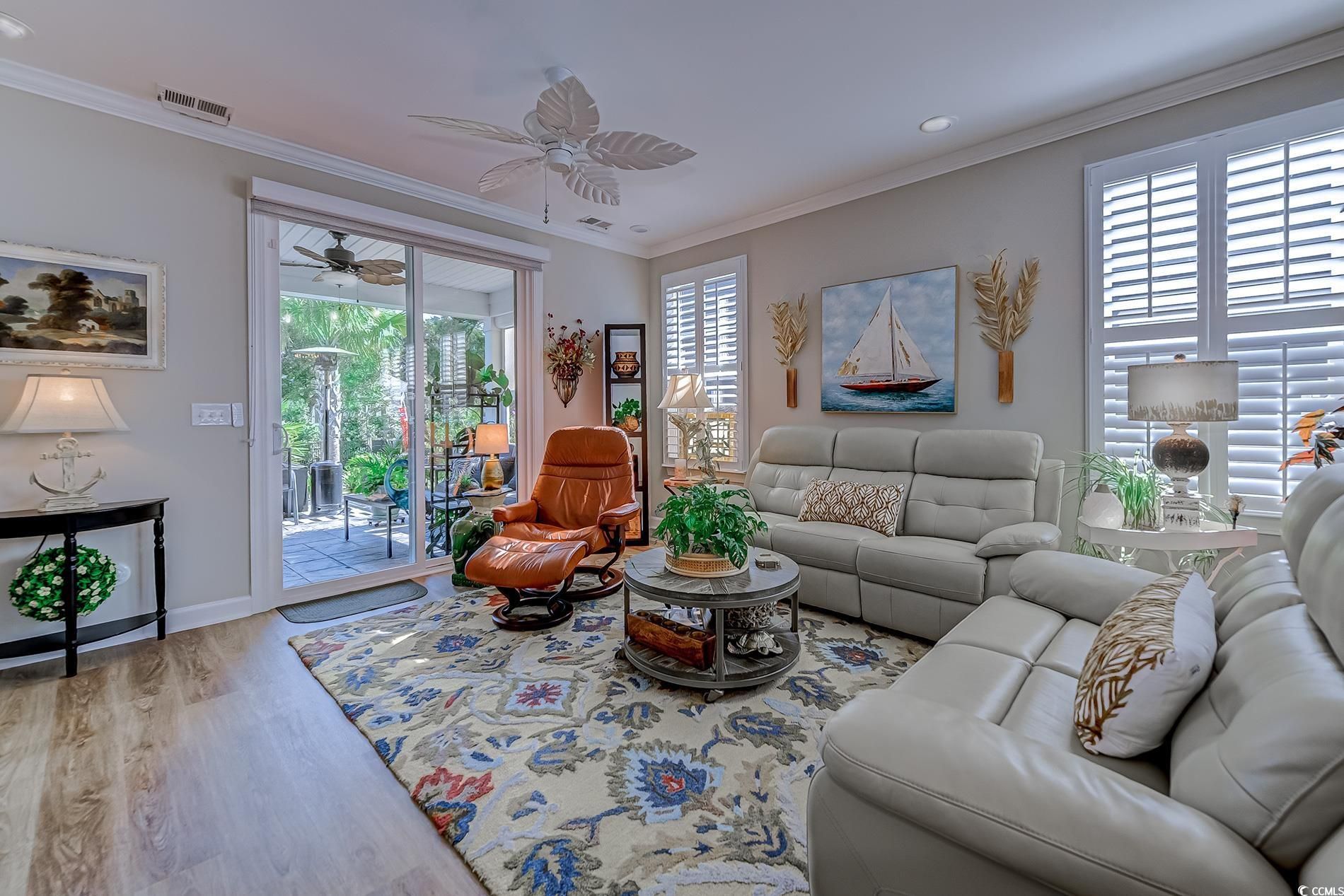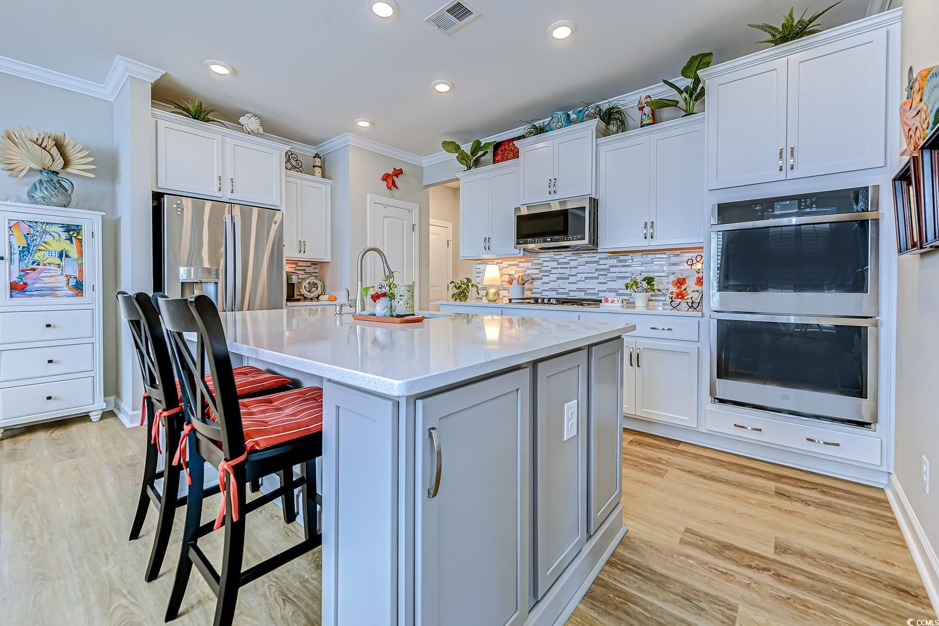 This must-see home is located in the highly desirable Bridgewater community, Starfish Village section, in Little River, SC. With 1,940 square feet of living space, and a 2-car garage, this Chesapeake Homes Hibiscus is spacious and offers several options that hold beauty and utility in high regard. Upon entering the home, you’ll be greeted by a prominent double-height foyer which leads you to the wide-open downstairs living space; an open-concept main living space, perfect for entertaining and family gatherings. The open-concept layout and large kitchen island are ideal for meal preparation and socializing and lend themselves to always being the home’s gathering place. This home offers a gourmet kitchen which includes a large center island, double wall ovens, and extended quartz counter tops and cabinet space to enhance cooking capabilities and functionality. This gourmet kitchen upgrade elevates the home's heart, providing increased space for entertainment and a more enjoyable cooking experience. The primary owner's suite is conveniently located on the first floor. Upstairs, you will find 2 additional bedrooms, a full bathroom, a large open loft area, and storage space. All bedrooms feature walk in closets. When you’re ready to go outside, there is the option of relaxing on your patio or rear-covered porch. The backyard is fenced with beautiful landscape that includes 2 windmill palms, 2 palm trees and almost complete privacy. The Hibiscus is perfect for your family who can’t wait to enjoy coastal living. Seller is a Real Estate Agent.