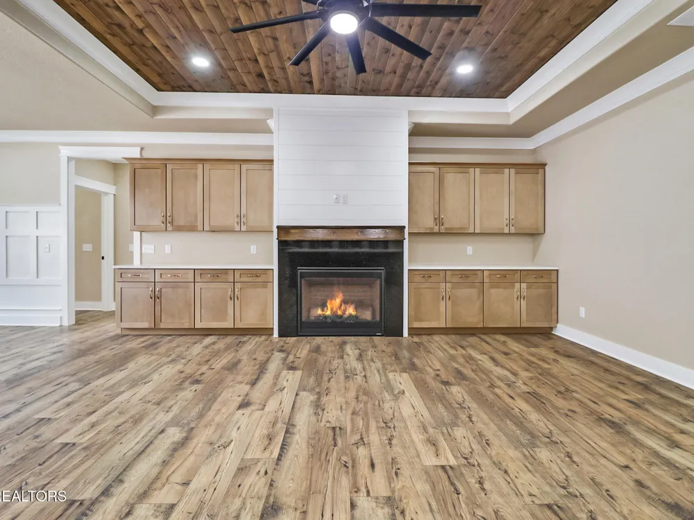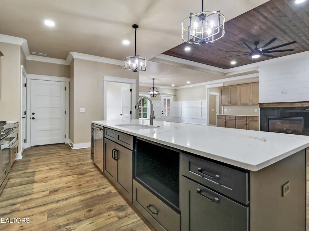 Built to impress! This all-brick home showcases luxury finishes and outstanding attention to detail at every turn. Constructed with durable 2x6 walls and fueled by natural gas, this 3-bedroom, 2-bathroom home offers 2,316 SqFt of thoughtfully designed living space. The open-concept layout features a split floor plan, a large kitchen with quartz countertops, custom cabinetry, and a 10-ft island ideal for entertaining. The living room includes a gas fireplace, built-ins with quartz tops, and a striking trey ceiling with a custom wood design. A spacious main-level flex room provides endless possibilities and includes its own fireplace. Crown molding, accent walls, and wainscoting add character throughout, while the master bedroom and guest room 2 offer generous walk-in closets. You'll appreciate the abundance of custom cabinets, linen closets, and storage space, plus an encapsulated crawlspace for peace of mind. Schedule your showing today - this is one you don't want to miss!
