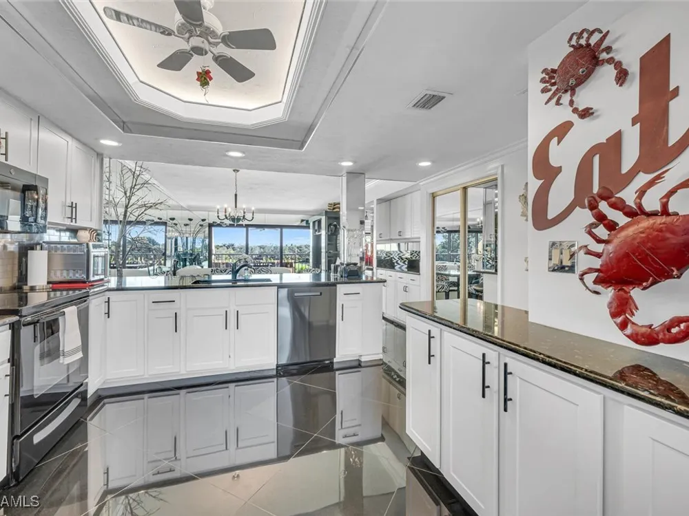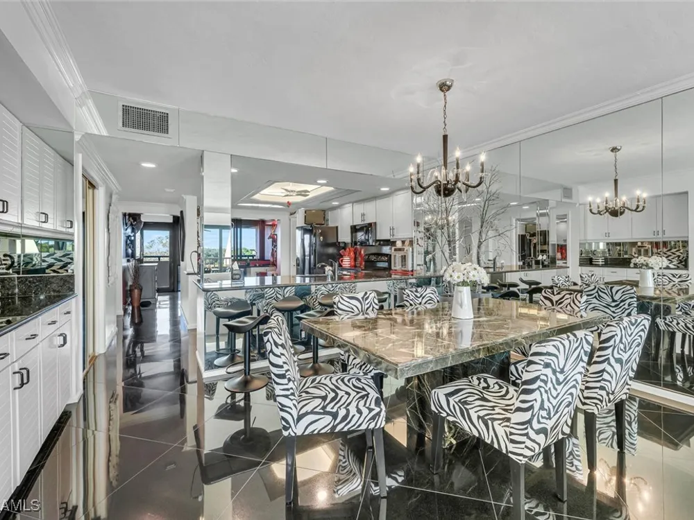 Step into sophistication with this stunningly updated condo in the heart of Pelican Bay’s exclusive Hyde Park. Designed to impress, this residence boasts a breathtaking lake and lushly landscaped views, setting the stage for serene mornings and unforgettable evenings. Inside, sleek black tile flooring laid on the diagonal creates a bold, modern aesthetic effortlessly complemented by a custom mirrored wall that amplifies natural light and enhances the spacious ambiance. The seamless blend of contemporary style and timeless elegance makes this home one-of-a-kind. Beyond its striking interior, this condo delivers the unparalleled Pelican Bay lifestyle—private beach access, world-class dining, championship golf, and state-of-the-art fitness facilities. Whether you’re seeking a serene retreat or an entertainer’s dream, this Hyde Park gem is the ultimate expression of luxury coastal living.