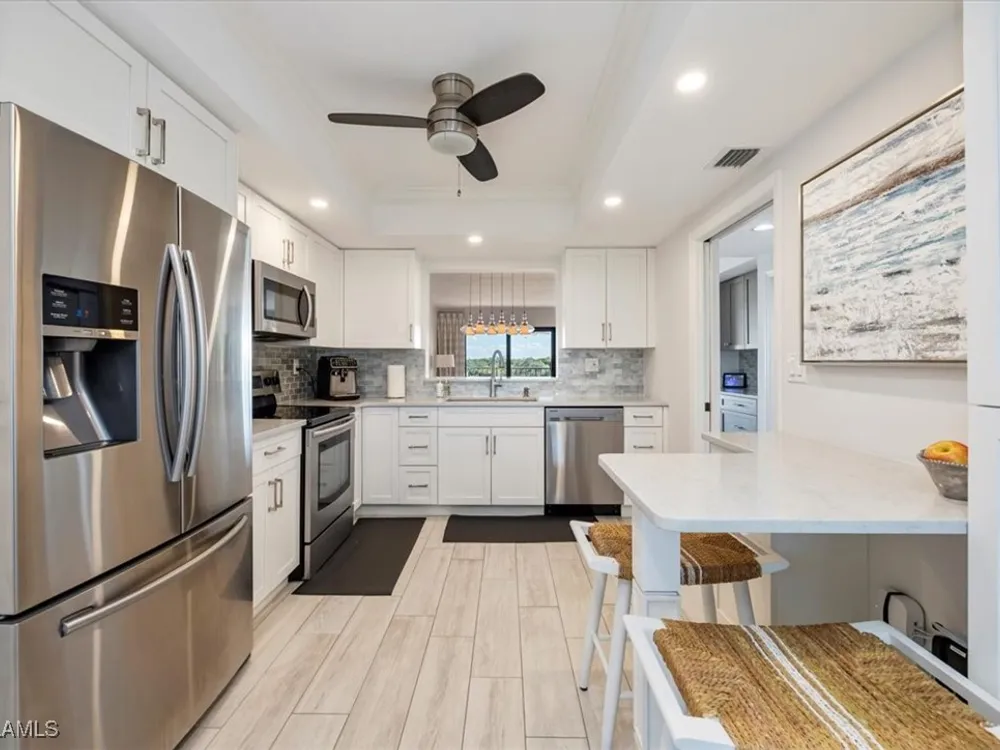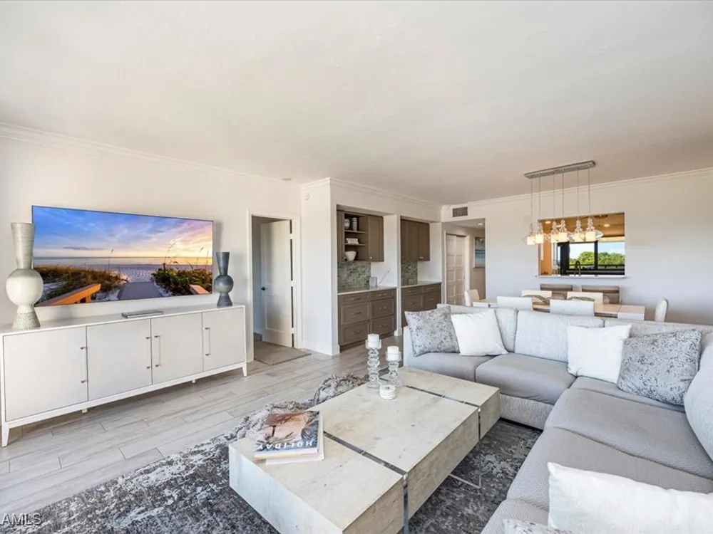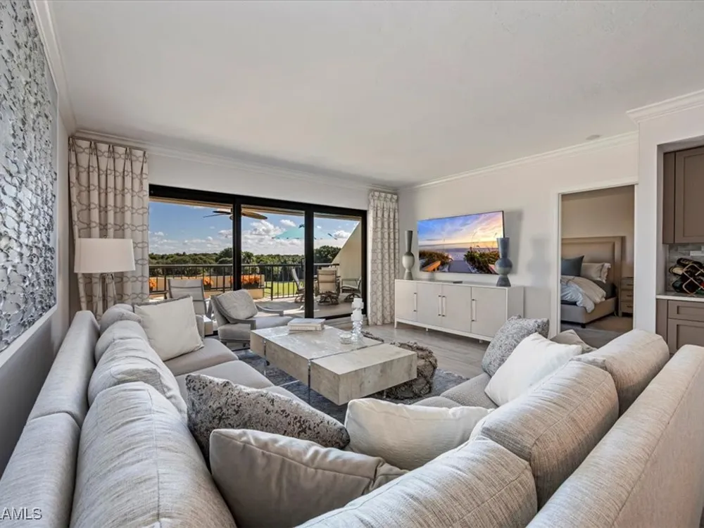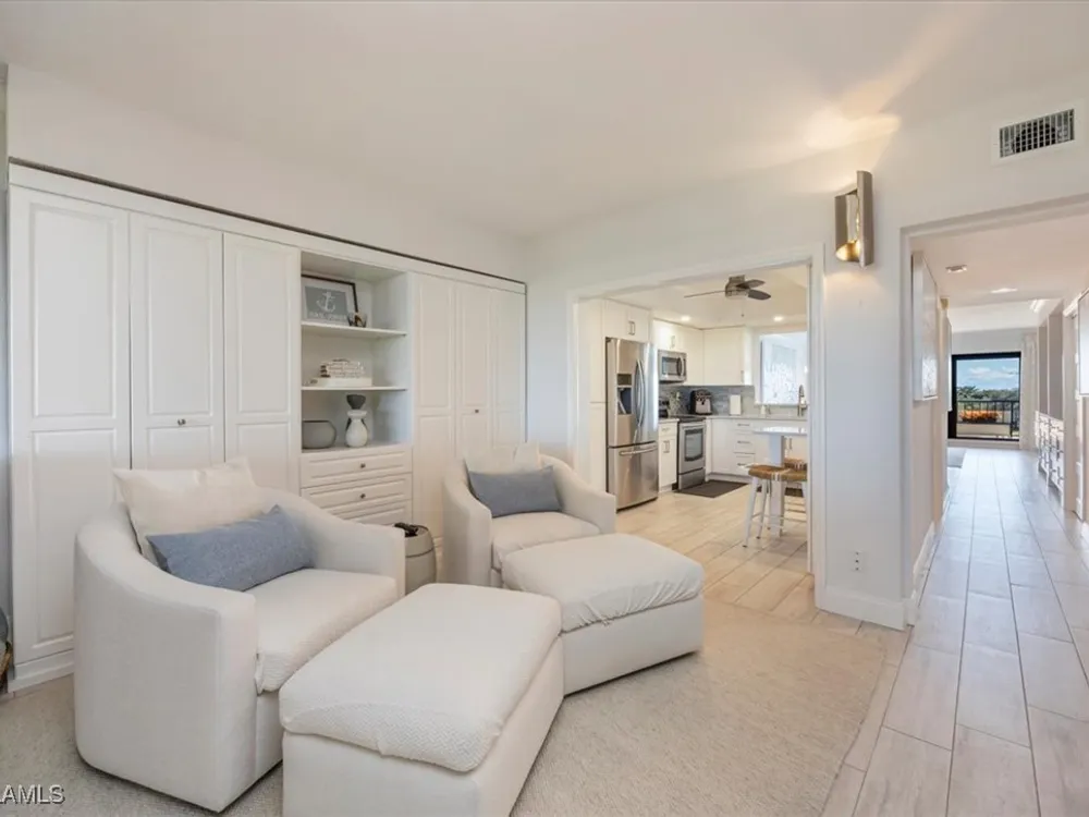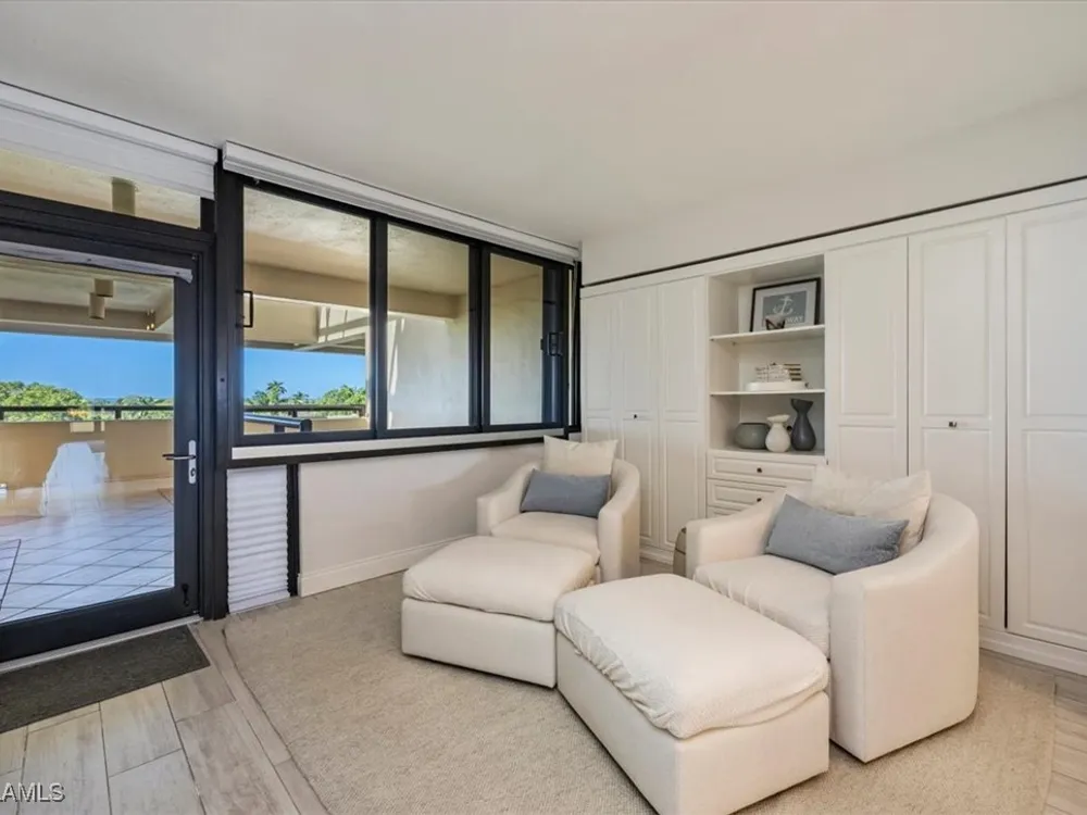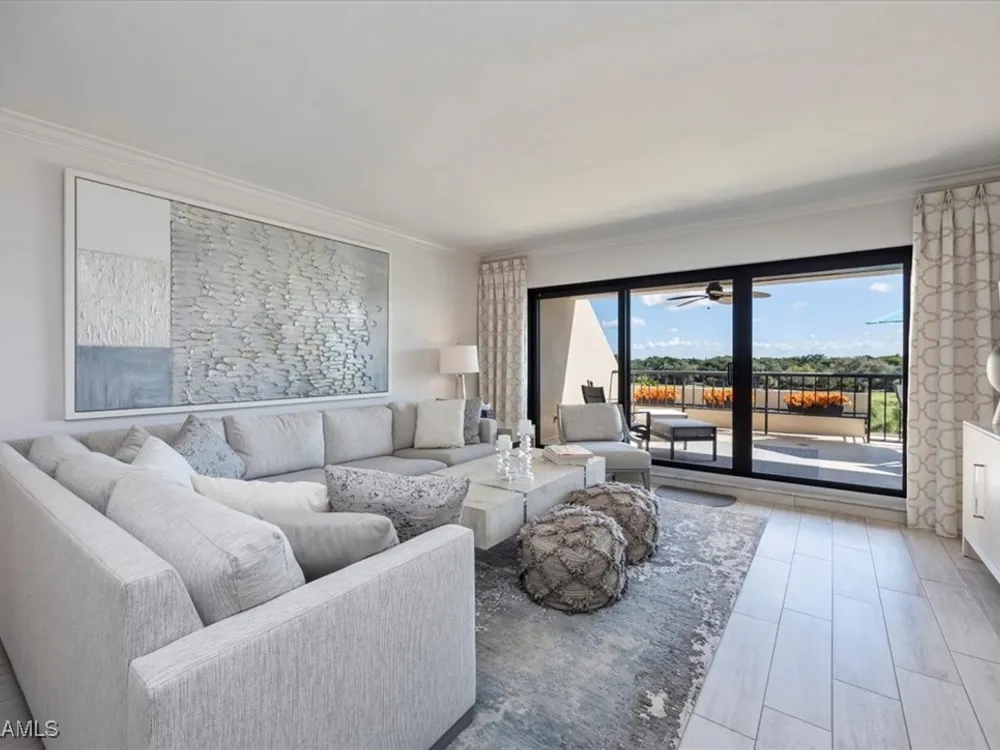 4th-Floor Condo with Golf and Gulf Views in Pelican Bay! Enjoy both sunrise and sunset views from this fully renovated 4th-floor residence in Hyde Park. Located just across from the beach tram and South tennis courts, this unit offers direct access to the best of Pelican Bay living. Interior features include Italian porcelain wood-look tile flooring, white shaker cabinets, quartz countertops, glass tile backsplashes, and new stainless steel appliances. A versatile flex space with built-in shelving includes twin Murphy beds, ideal for guests or a home office. Two balconies provide panoramic views, one east-facing over the golf course and manicured grounds, the other west-facing toward the Gulf for sunset skies. Residents enjoy access to Pelican Bay’s private beaches with chair service, beachfront dining, tennis, pickleball, fitness center, and miles of trails. Conveniently located between Waterside Shops/Artis–Naples and Mercato. Move-in ready. Ideal location. Full amenities.