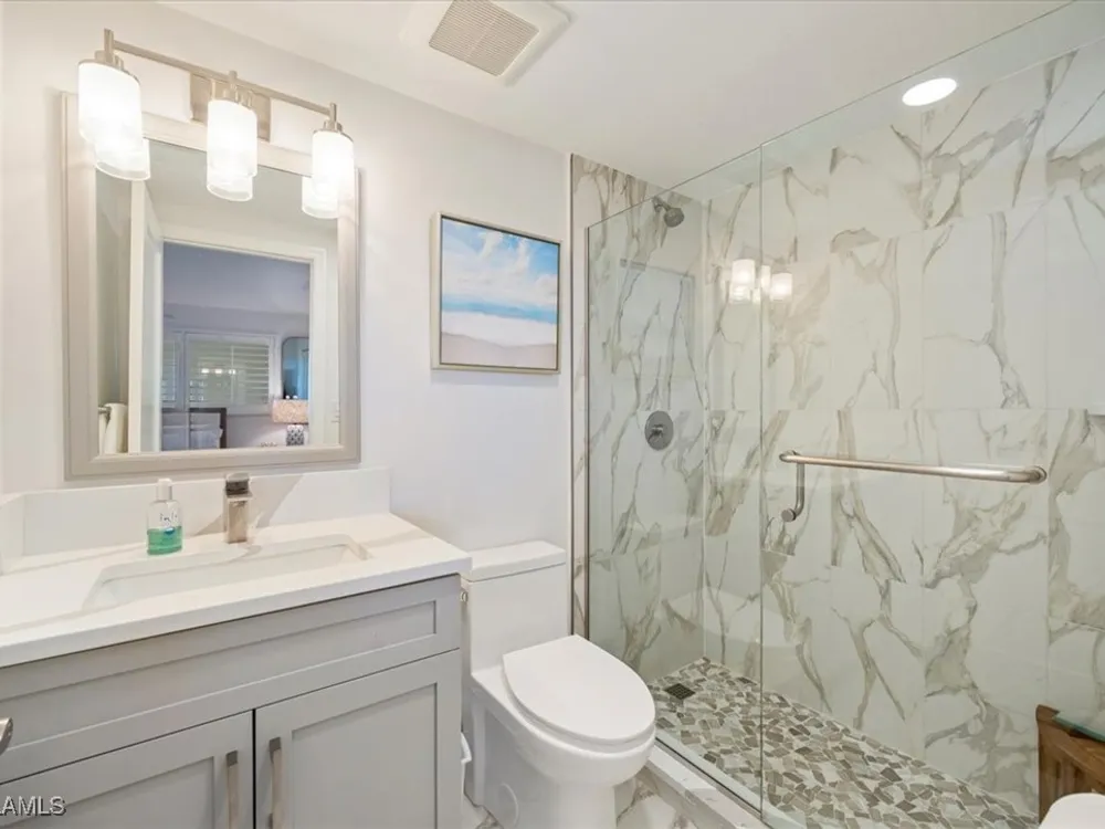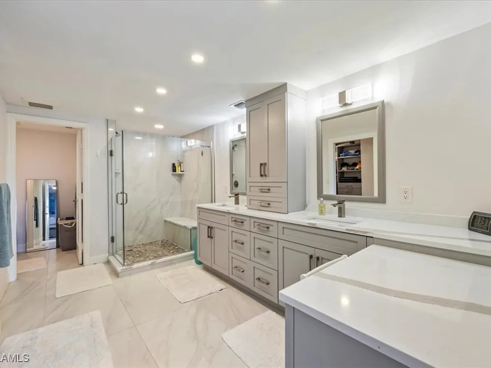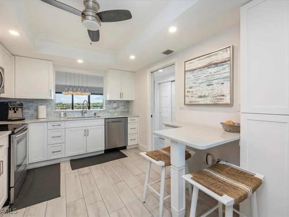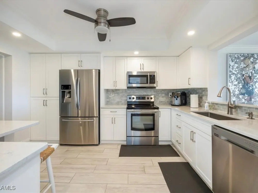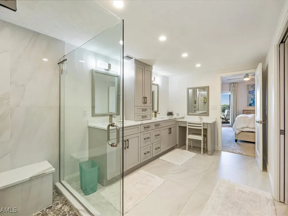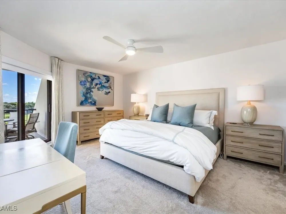 4th-Floor Condo with Golf and Gulf Views in Pelican Bay! Enjoy both sunrise and sunset views from this fully renovated 4th-floor residence in Hyde Park. Located just across from the beach tram and South tennis courts, this unit offers direct access to the best of Pelican Bay living. Interior features include Italian porcelain wood-look tile flooring, white shaker cabinets, quartz countertops, glass tile backsplashes, and new stainless steel appliances. A versatile flex space with built-in shelving includes twin Murphy beds, ideal for guests or a home office. Two balconies provide panoramic views, one east-facing over the golf course and manicured grounds, the other west-facing toward the Gulf for sunset skies. Residents enjoy access to Pelican Bay’s private beaches with chair service, beachfront dining, tennis, pickleball, fitness center, and miles of trails. Conveniently located between Waterside Shops/Artis–Naples and Mercato. Move-in ready. Ideal location. Full amenities.