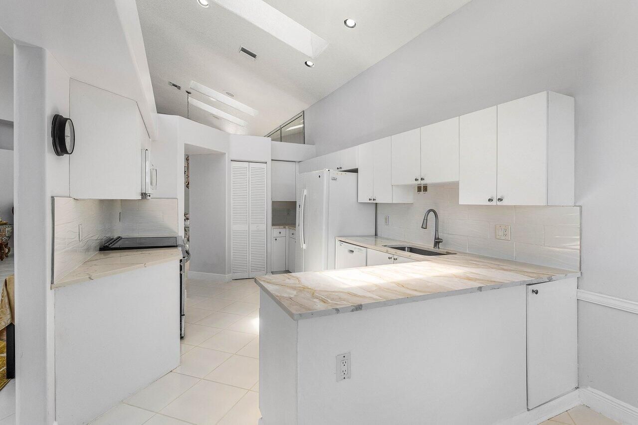 AMAZING GOLF COURSE AND WATER VIEWS UPON ENTERING THIS ONE STORY HOME WITH VOLUME CEILINGS. LIGHT AND BRIGHT WITH OPEN CONCEPT LIVING, THIS 3 BEDROOM, 3 BATH HOME OFFERS LOTS OF NATURAL LIGHT WITH A GREAT INDOOR-OUTDOOR FEEL. SPACIOUS MAIN BEDROOM HAS GORGEOUS GOLF COURSE VIEWS AS WELL AS THE LIVING AREA AND KITCHEN WITH COZY BREAKFAST NOOK. THE KITCHEN FEATURES QUARTZ COUNTER TOPS. THE OPEN LIVING AND DINING AREAS EMBRACE THE OUTDOOR VIEWS WITH ITS ADDITIONAL GLASS ENCLOSED LARGE COVERED PATIO AREA (about 400 sq ft) WHERE YOU CAN UNWIND AND OR ENJOY THE PEACEFUL SETTINGS OVERLOOKING THE 17TH HOLE. MAIN BEDROOM HAS A EXTA LARGE WALKIN CLOSET AND BATHROOM WITH DOUBLE VANITIES, SEPARATE SHOWER, LARGE TUB AND PRIVATE WC. THE SECOND BEDROOM HAS AN ENSUITE BATHROOM AND WALK IN CLOSET.
