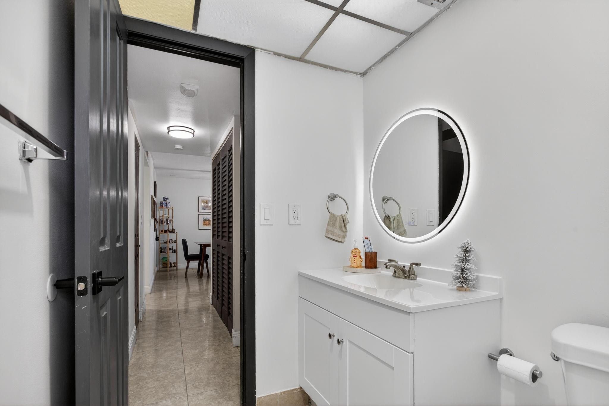 Beautiful move in ready 2 bedroom, 2 bath unit in an amazing location! Freshly painted, with renovated kitchen and new cabinets, crown molding, baseboards, and tile floor throughout. Screened patio, Hurricane shutters. Community pool and club house. Good for investors! Special Assessment $294 monthly for 12 years.