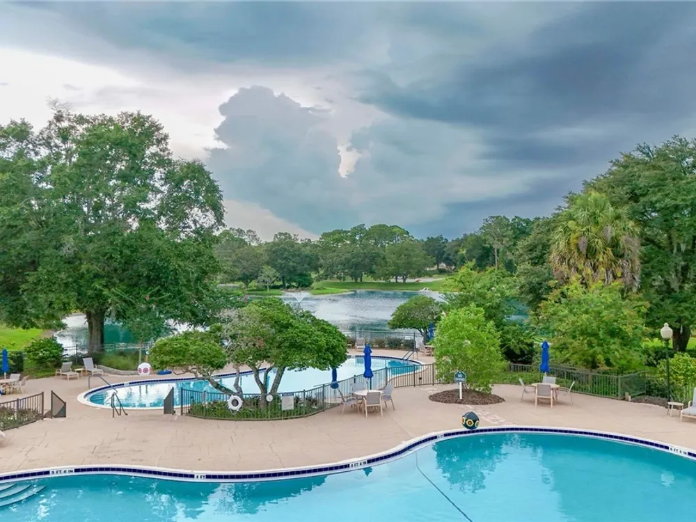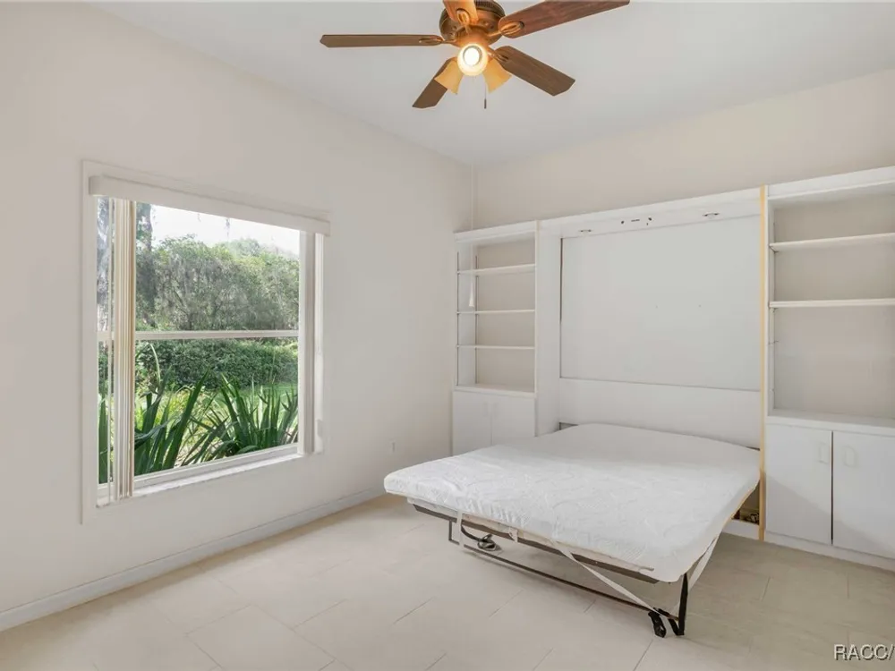 One or more photo(s) has been virtually staged. Step into comfort with this great, maintenance-free villa located in charming Foxhollow Village! This home is a fantastic value, featuring Tile flooring throughout. The heart of the home is an inviting eat-in kitchen with classic wood cabinetry, flowing into a large living room great for entertaining, complete with a dedicated entertainment alcove and pocket door sliders leading to your lanai. You'll find two ample bedrooms, one thoughtfully designed with a built-in Murphy bed and custom bookcases. The expansive owner's suite offers the convenience of two walk-in closets and a luxurious bath, which includes a separate shower and lavatory, plus a garden tub room with dual sinks and a linen closet. Guuest bathroom has new installed shower. Roof was replaced in 2023. This home is one of only 2 homes in Fox Hollow who has huge side Lanai with a large screened Patio. Community offers 2 pools, Tennis courts, pickleball courts, clubhouse and a 15 acres park with walking trail. Minutes to all area ameneties. Don't miss out this Villa is waiting for you!!