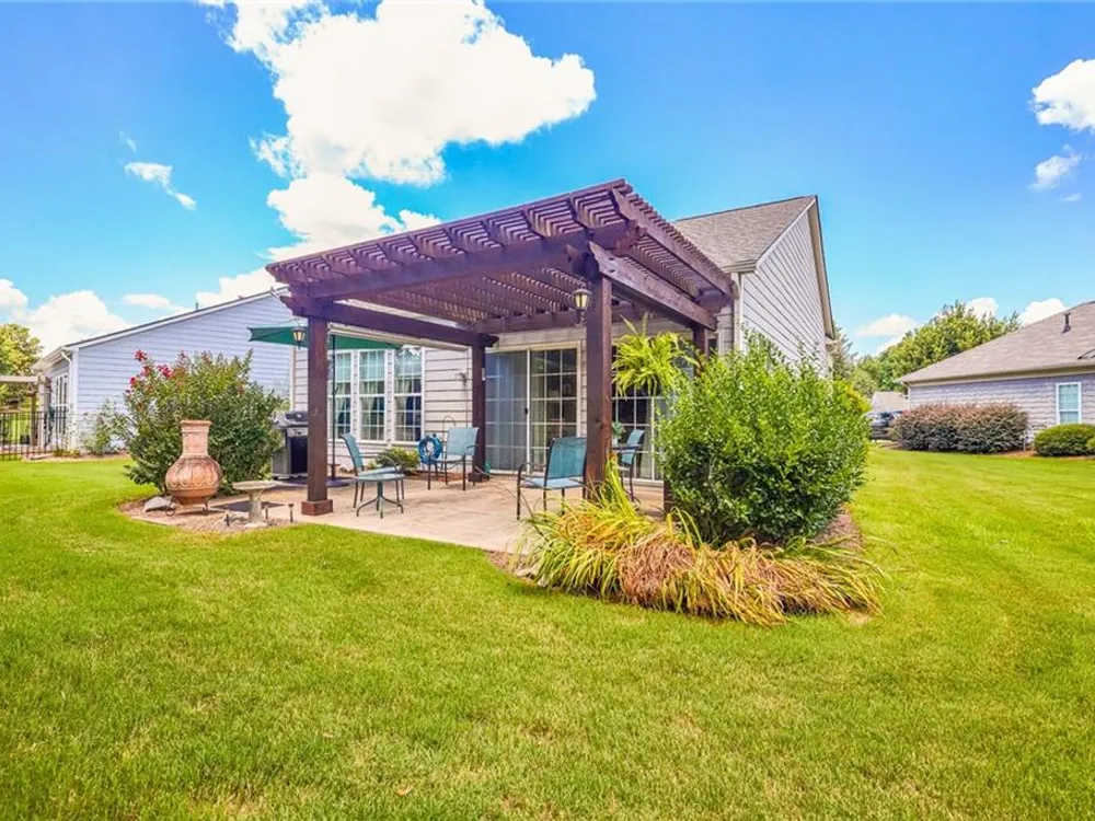 Welcome to 6303 Rockpoint Lane. This adorable 2 bed / 2 bath home features one of the best backyards around. It has an expanded patio with a pretty pergola and a chiminea! This is the perfect home if you like to spend equal time inside and out. The floorplan is a Fox Run where the kitchen is in the front of the house next to the garage, making unloading packages and groceries so easy. The kitchen is spacious and the island, providing extra storage. There is also room for a table to enjoy breakfast and the garden view from the window. Light fills the living room and leads to the very popular sunroom. The master bedroom is large enough for a king size bed. The bathroom has a double vanity and a large walk-in shower. Village at Deaton Creek is a wonderful community with something for everyone. The clubhouse in the largest in the area and has 100 activities every month. You will meet new people by just going for a walk. There is 8 miles of trails and sidewalks, a fishing pond, indoor and outdoor pools, and so much more. Call today to see the fun you are missing. VDC is like adult summer camp.