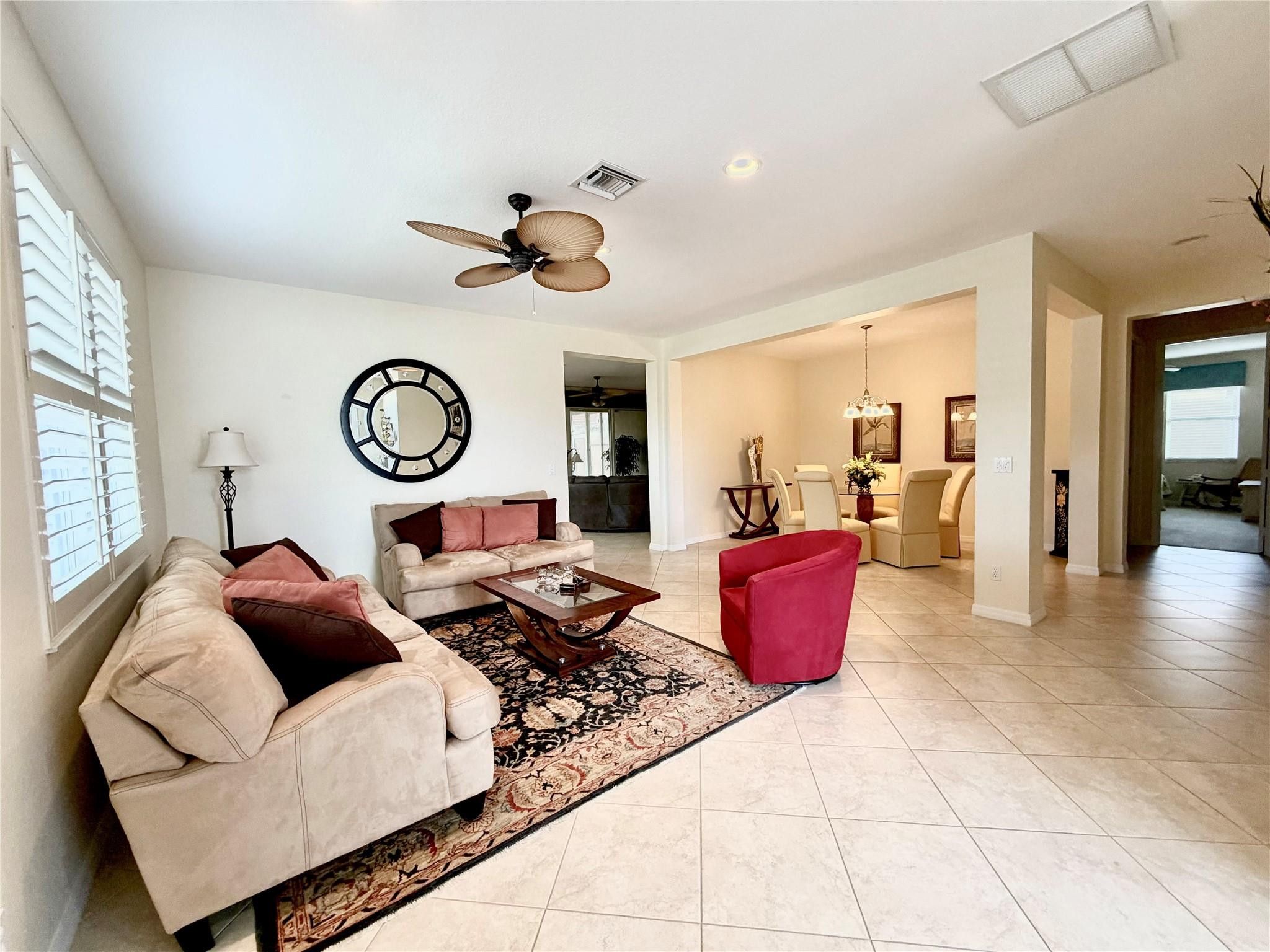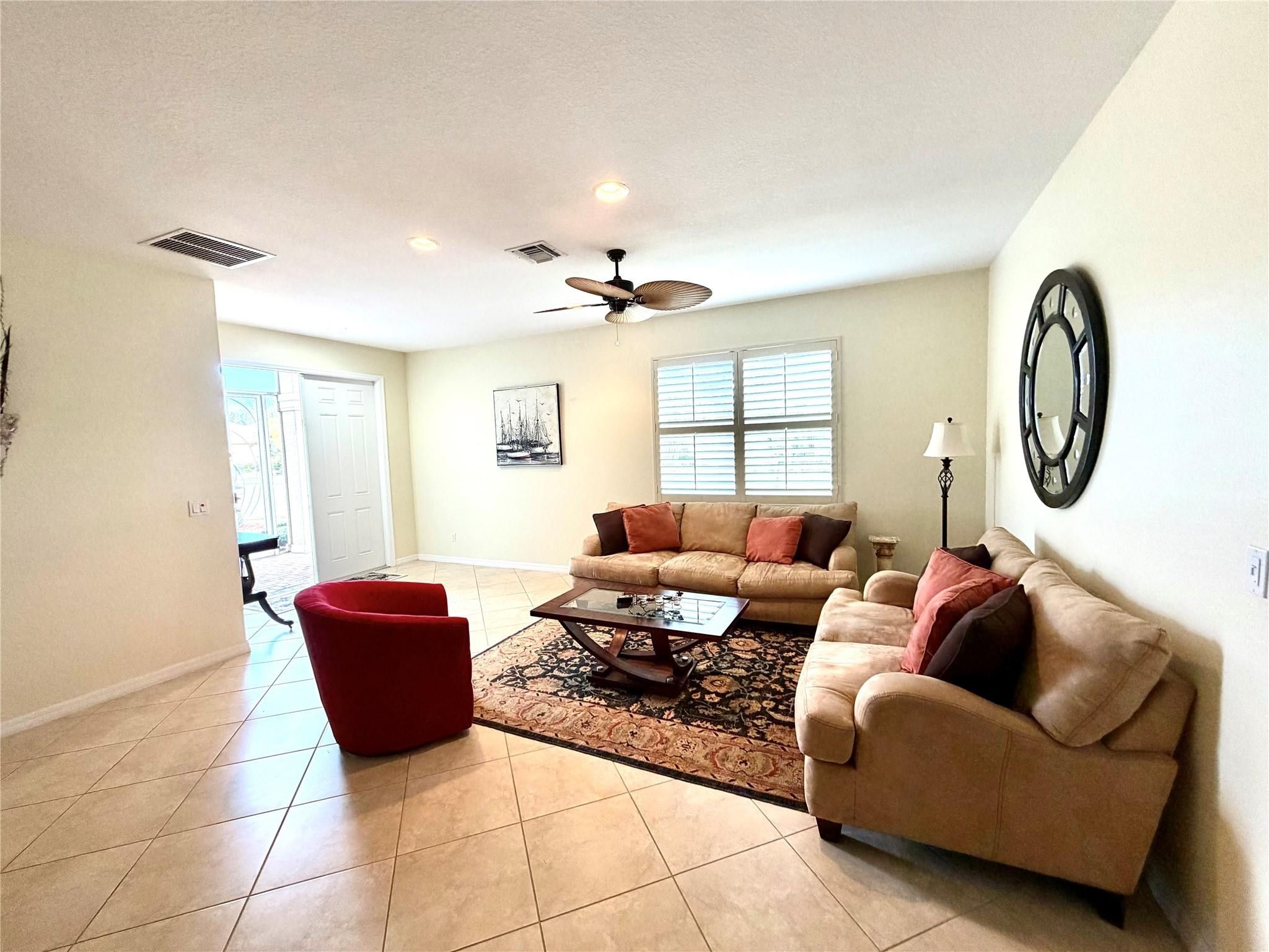 4 bedrooms, 3 full baths. Double front door entrance with screen enclosure. Home offers a living and dining room. Family room with double sliding doors to extend covered patio with impact glass. Breakfast area, snack counter, SS appliances, granite countertops and under-counter lights. 42" upper cabinets. Spacious master suite, oversized walk in closet. Master bath with 2 vanities, separate tub and walk in shower.