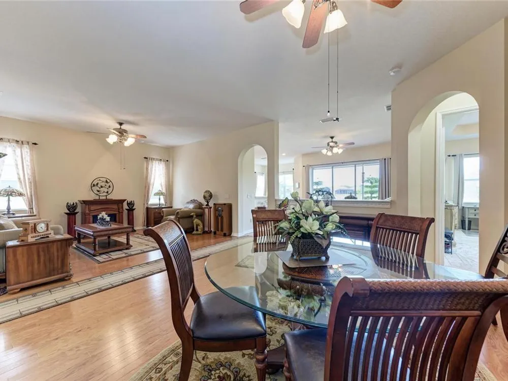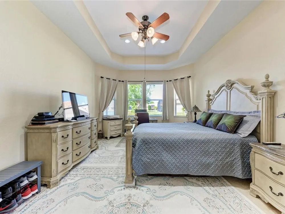 - Ceiling Fan(s), High Ceilings, Open Floorplan, Main Level Primary, Split Bedrooms, Thermostat, Window Treatments