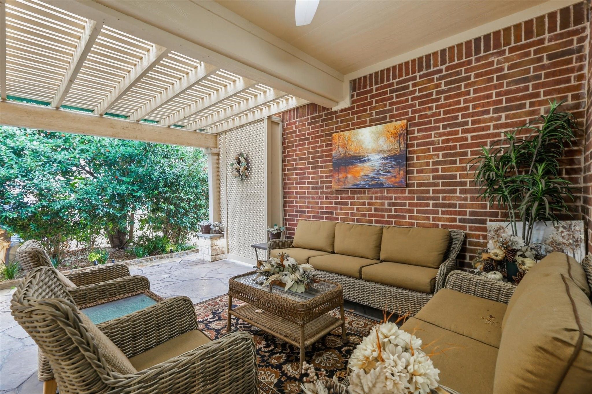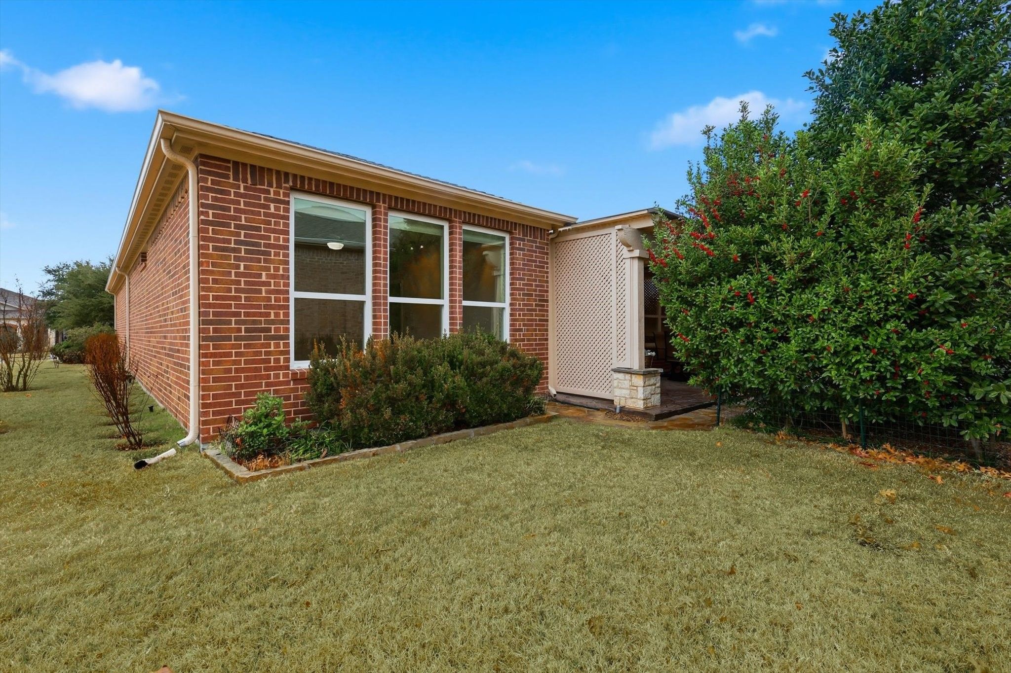 Stunning Vernon Hill Floor Plan on a corner lot with gorgeous landscaping in the vibrant 55+ community of Frisco Lakes where luxury, convenience and resort style living await. This 3 bedroom home also has a Private Office with French Doors. The kitchen features granite counters, Stainless Steel Appliances, yards of 42in cabinets, pull out drawers and a Breakfast Room with a built in desk and cabinets. Roomy Living Room and Formal Dining Room are perfect for entertaining. Primary Suite has a wall of windows and opens to the lavish Primary Bathroom with Dual Vanities a Seamless Walk in Shower and a large walk in closet. 2 additional bedrooms adjoin a lovely guest bathroom. Utility Room has a sink and extra built in cabinets. Oversized Garage is great for storage. Extended patio with stamped concrete, elegant pergola and lush landscaping. This community boasts an array of amenities designed to enrich your lifestyle, pickleball courts, walking paths, 3 clubhouses with 3 fitness centers, indoor & outdoor pools & a pristine 18-hole championship golf course. Make this your next home sweet home!