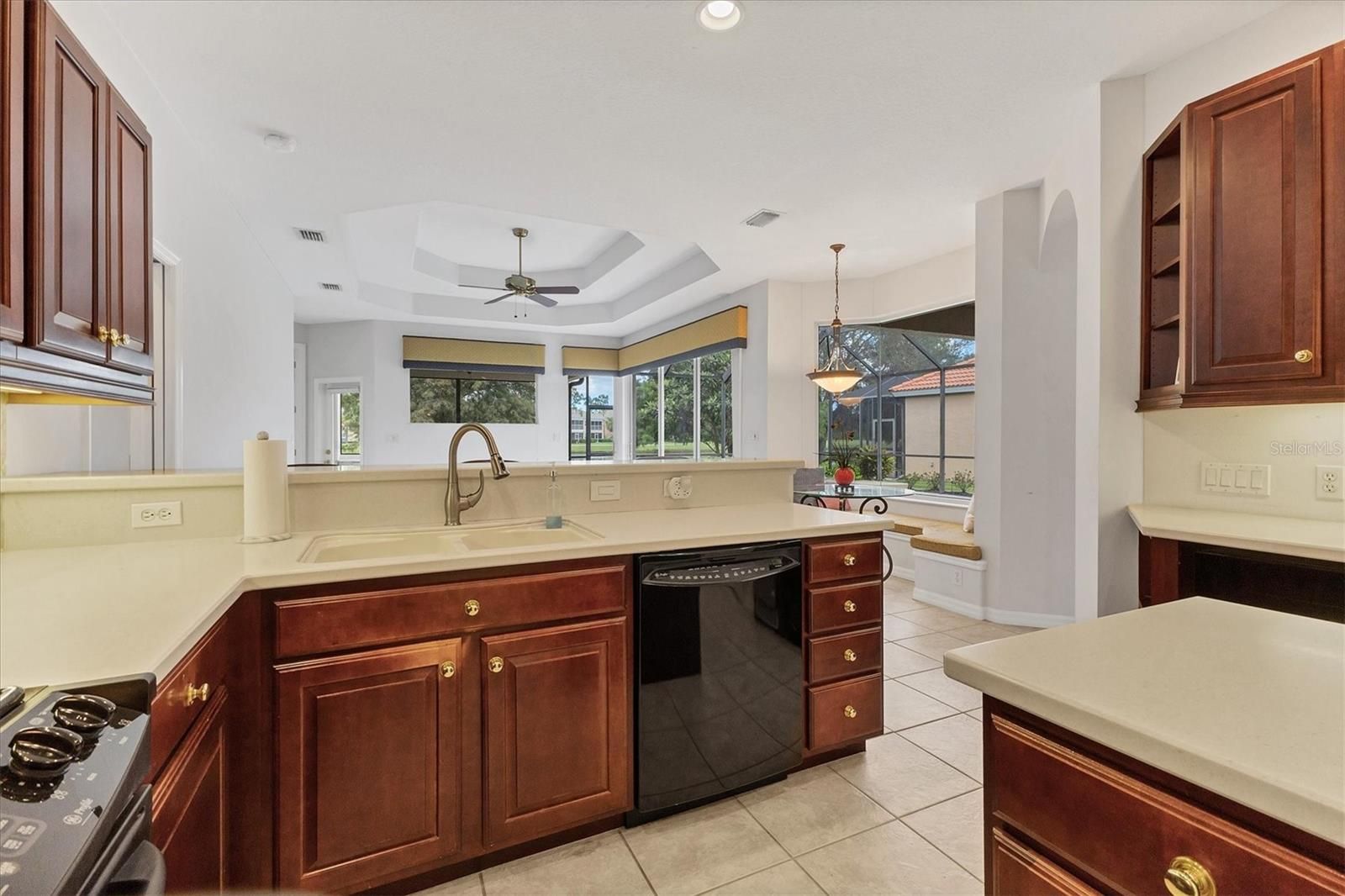 - Built-in Features, Ceiling Fan(s), Crown Molding, High Ceilings, Open Floorplan, Solid Surface Counters, Solid-Wood Cabinets, Split Bedrooms, Tray Ceiling(s), Walk-In Closet(s), Window Treatments