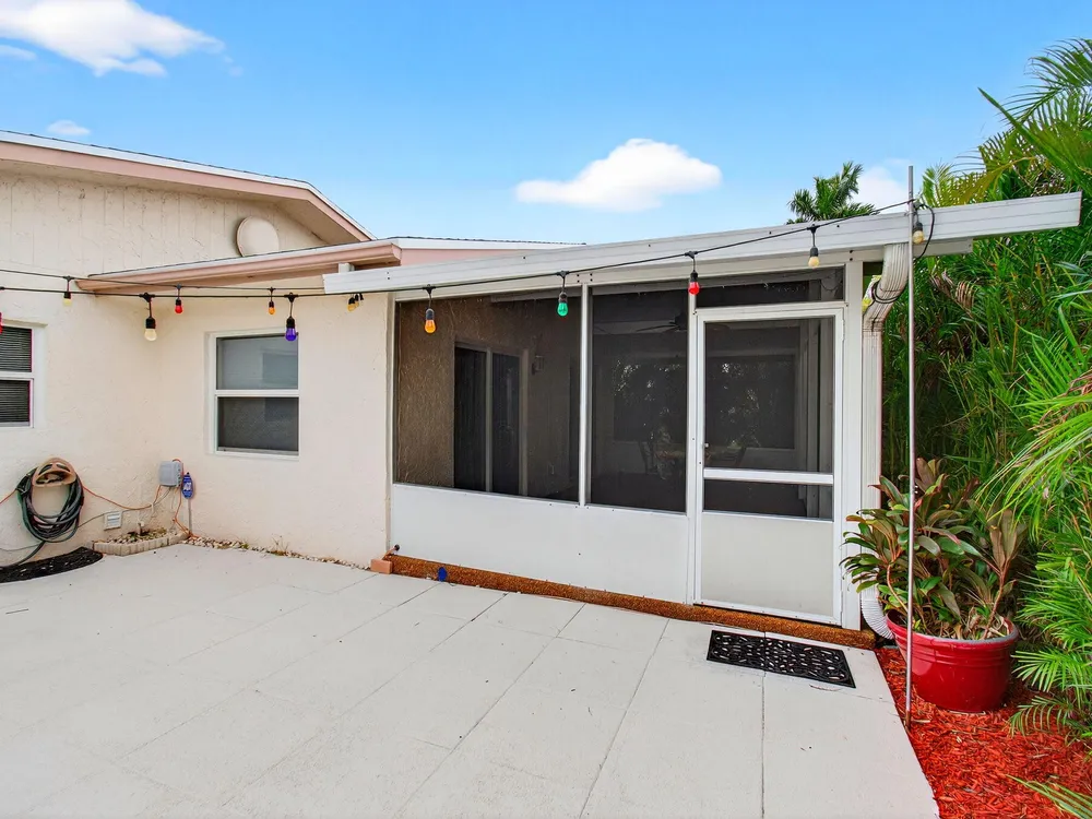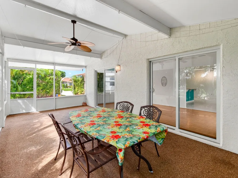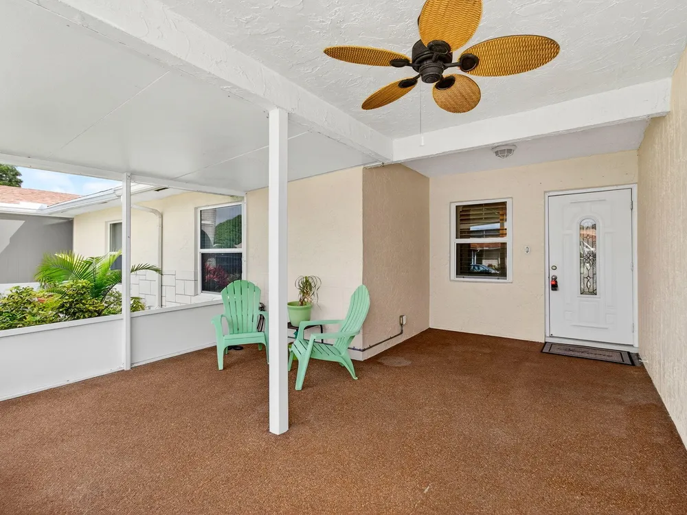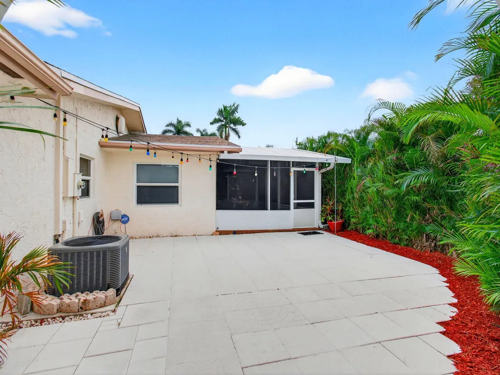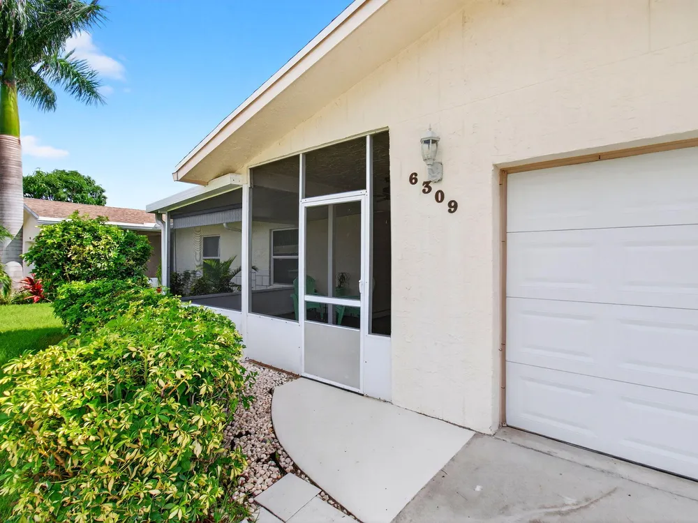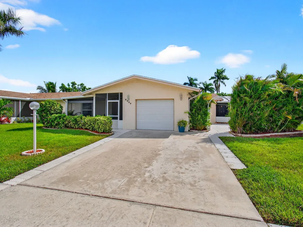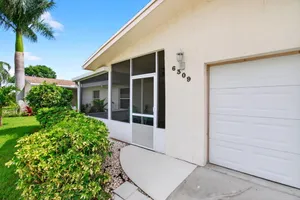 Discover the serene, welcoming ambiance of 6309 Dusenburg Road, a meticulously maintained villa located in the sought-after Delray Villas 55+ community in Delray Beach, Florida. This inviting property radiates sophistication and attention to detail marked by an open floor plan and improved with both wood and tile flooring.On arrival, notice the finely screened in and covered front entry patio, a space that beautifully melds the comforts of indoors with the charm of exterior aesthetics. Transitioning from the entrance, an expansive, naturally lit living area is magnificently accented with an air conditioning system, installed in 2024, ensuring a serene atmosphere all year round.