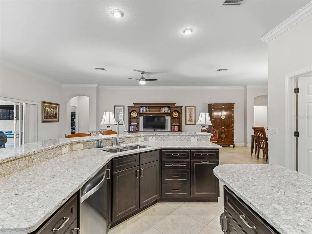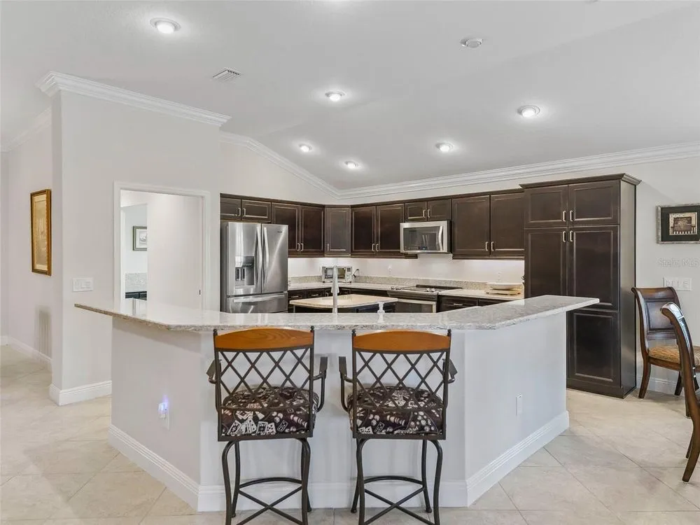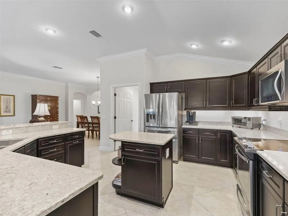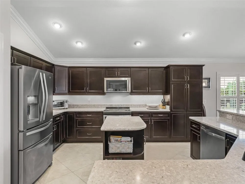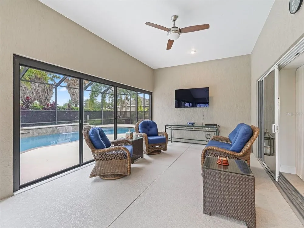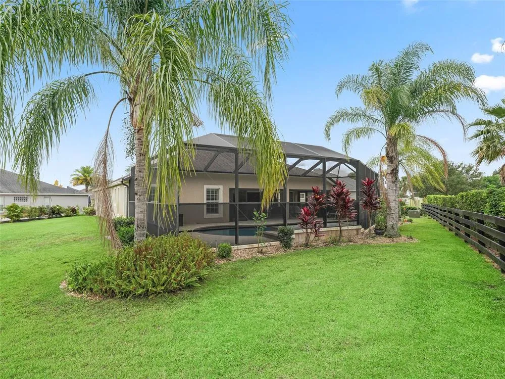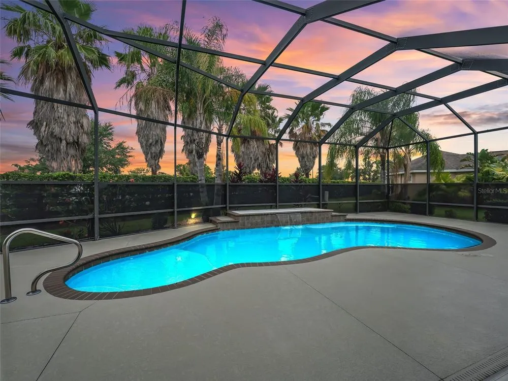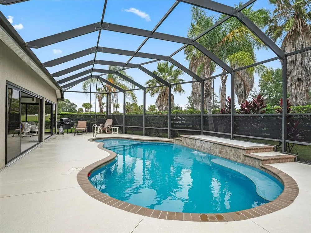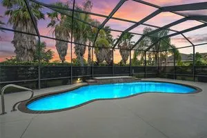 Beautiful 4-Bedroom Pool Home on Quiet Cul-de-Sac – BOND PAID! Welcome to this stunning FURNISHED/TURN-KEY 4-bedroom, 2-bathroom home located on a peaceful cul-de-sac. Featuring 2,606 sq. ft. of heated living space and 3,665 sq. ft. under roof, this spacious residence offers both style and comfort. Step though the large ENCLOSED CLIMATE CONTROLLED sunroom, and outside to your private SOLAR HEATED swimming POOL, with soothing WATERFALL, perfect for year-round enjoyment. The home sits on over a quarter-acre lot and features a STONE paver walkway and driveway, SCREENED front porch, and GLASS-ENCLOSED lanai with A/C—ideal for relaxing or entertaining in comfort. Inside, you’ll love the open-concept great room and gourmet kitchen, complete with an island, pull-out cabinetry, pantry with pull-outs, stainless steel appliances (including a French door refrigerator), and stunning QUARTZ countertops. The luxurious master suite boasts a LARGE walk-in closet, HIS/HER vanities, and a WALK-IN shower. Spacious guest quarters offer privacy and comfort for visitors. Additional upgrades and features include: Crown molding and diagonal tile throughout; Quadruple glass sliding and recessing doors; Plantation shutters; Built-ins in all closets; Water SOFTENER and FILTRATION system; Indoor utility with a desk, folding counter and additional cabinetry; Extra refrigerator and newer STORM doors; Upgraded landscaping with ACCENT LIGHTING; Windows in garage; and Large-capacity hot water heater. Again, NO BOND! This exceptional home is move-in ready and packed with high-end finishes and thoughtful details. Don’t miss your chance to own this incredible home!