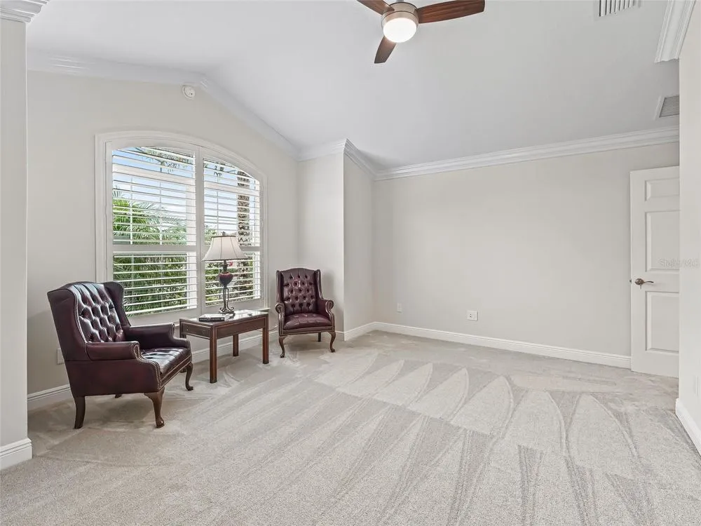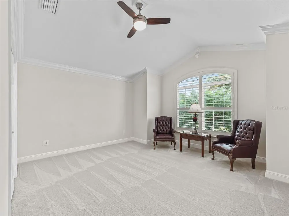 - Ceiling Fan(s), Crown Molding, Eat-in Kitchen, High Ceilings