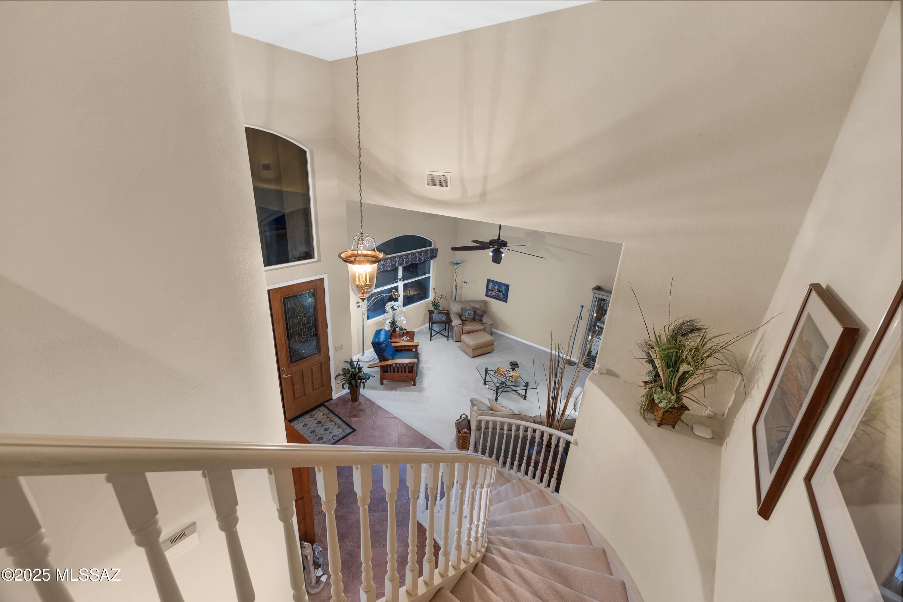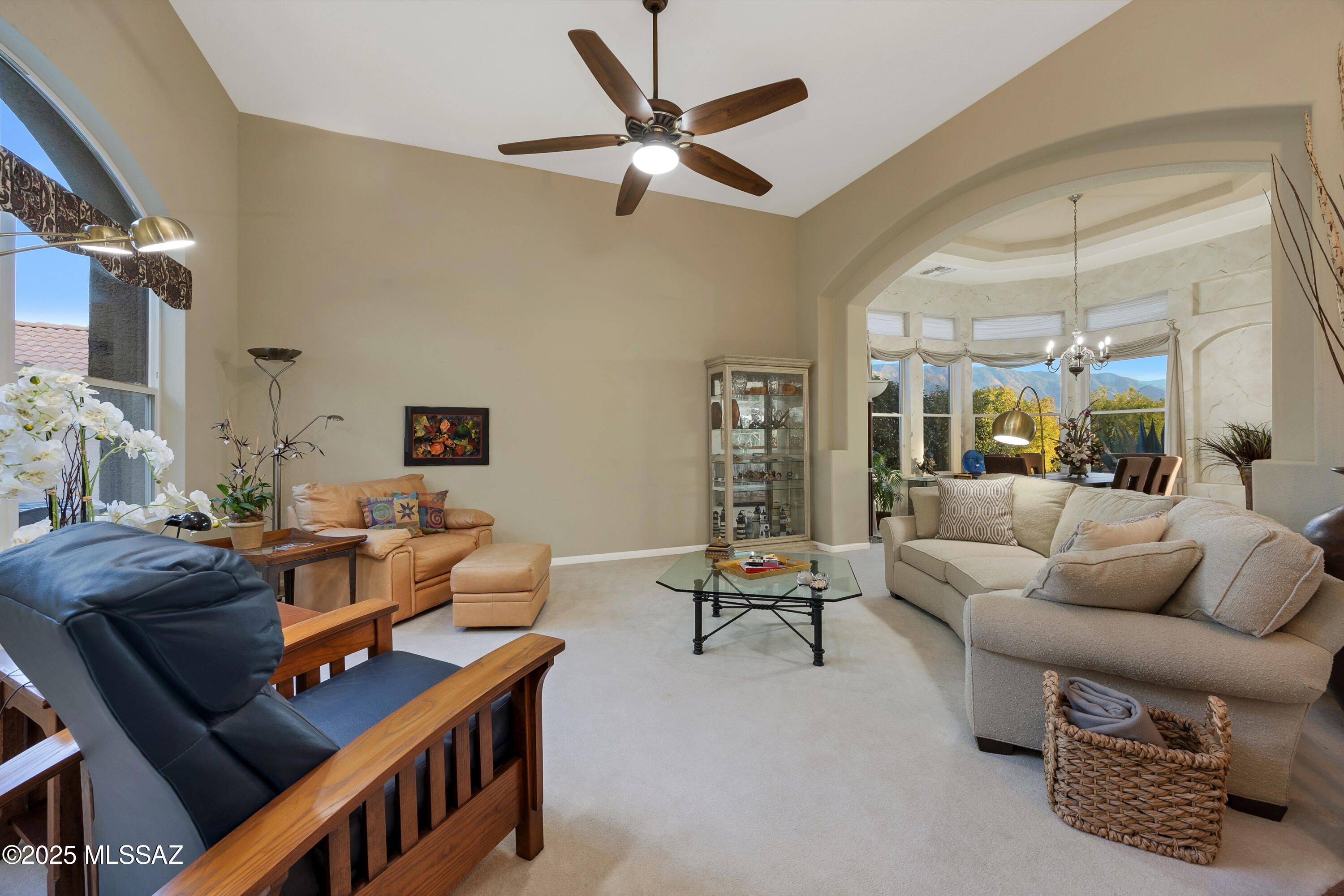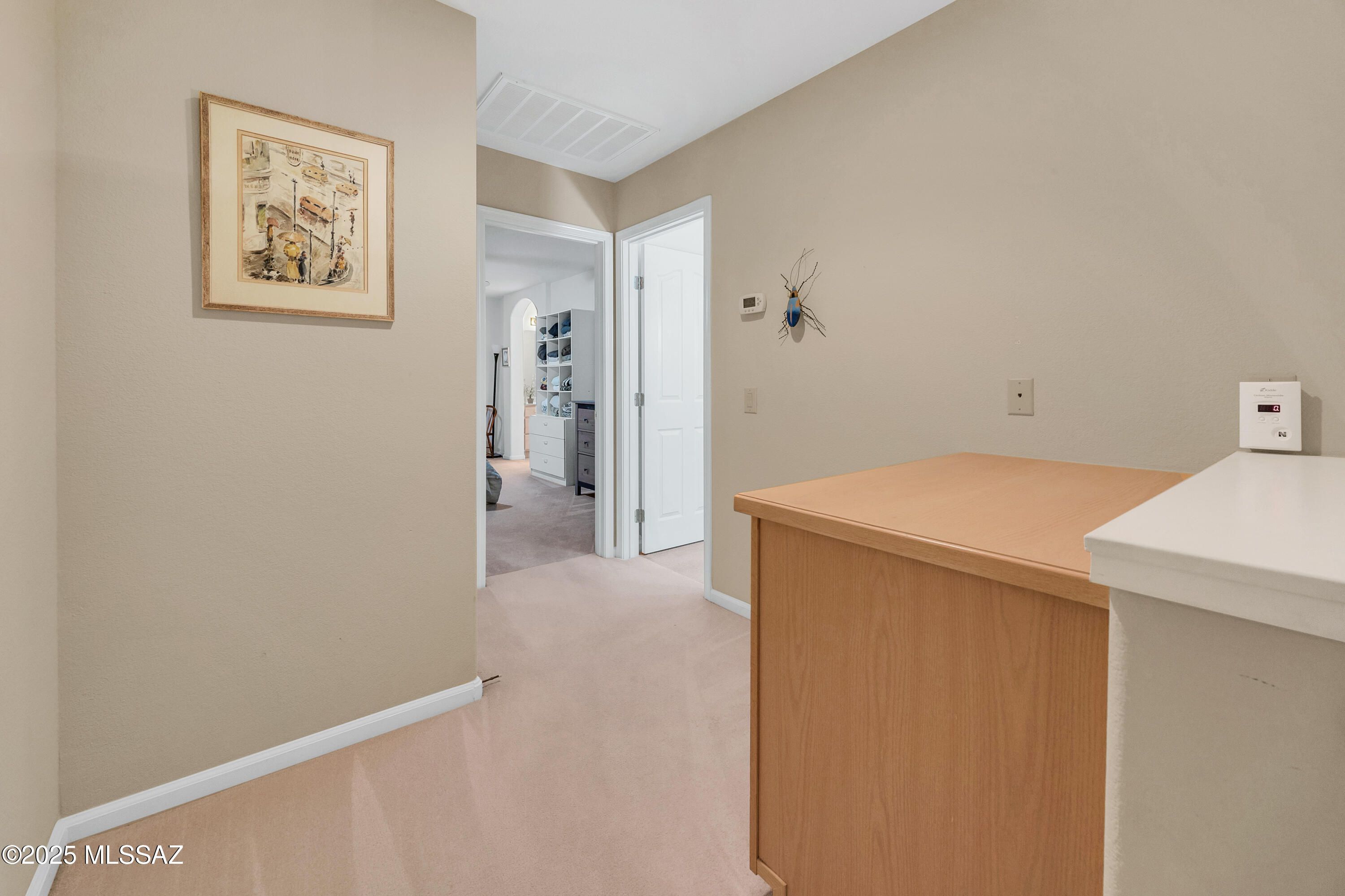Breathtaking views of Catalina mountains overlooking the 9th Hole of the Mountainview Golf Course makes this Sundance model a must see! This property offers unparalleled comfort, thoughtful upgrades, and a lifestyle that feels like a permanent vacation. The kitchen is a chef's dream updated with black stainless-steel appliances, including a Bosch dishwasher, GE Advantium oven, gas cooktop, Elkay Quartz Luxe kitchen sink, and natural granite countertops. A water filtration system ensures pristine hydration. The Casita, complete with a Murphy bed and full bath, is perfect for visitors or multi-generational living. A Jack & Jill bathroom adds functionality and privacy for additional bedrooms upstairs. Primary suite includes: Blackout blinds, walk out to patio, and serene views.