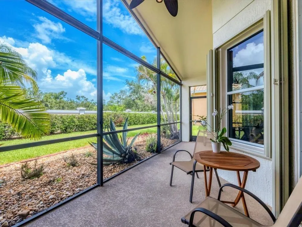 Price Improved AND a Brand New Roof! Welcome to this lovely home in The Cascades at Sarasota, an amenity-rich 55+ gated community! This beautifully maintained 2-bedroom, 2-bath home with a den offers comfortable, easy living in a bright and open layout. Vaulted ceilings and large windows fill the home with natural light, creating an inviting atmosphere throughout. Enjoy lasting peace of mind with accordion hurricane shutters, a partial home generator, and a NEW ROOF! The kitchen is both stylish and functional, featuring newer KitchenAid appliances and brand-new custom pull-outs in all cabinets—perfect for effortless cooking and organized storage. The spacious primary suite includes bay windows, a luxurious en-suite bath with a Roman-style walk-in shower, and a private den—ideal for a home office, reading nook, or workout space. You'll also appreciate having both a living room and family room, along with a formal dining area and cozy breakfast nook. Additional highlights include a 2020 AC, 2016 water heater, and energy-efficient attic insulation. Step outside to the screened lanai and enjoy your private backyard oasis. Residents of The Cascades enjoy resort-style amenities at the newly renovated 25,000 sq ft clubhouse, including a heated indoor/outdoor pool, tennis and pickleball courts, a fitness center, billiards, art studios, social clubs, and more. Located just minutes from world-famous beaches, shopping, dining, and vibrant downtown Sarasota. No CDD fees, and HOA includes cable, internet, lawn care, and security. Schedule your private tour today and discover the Florida lifestyle you’ve been dreaming of!