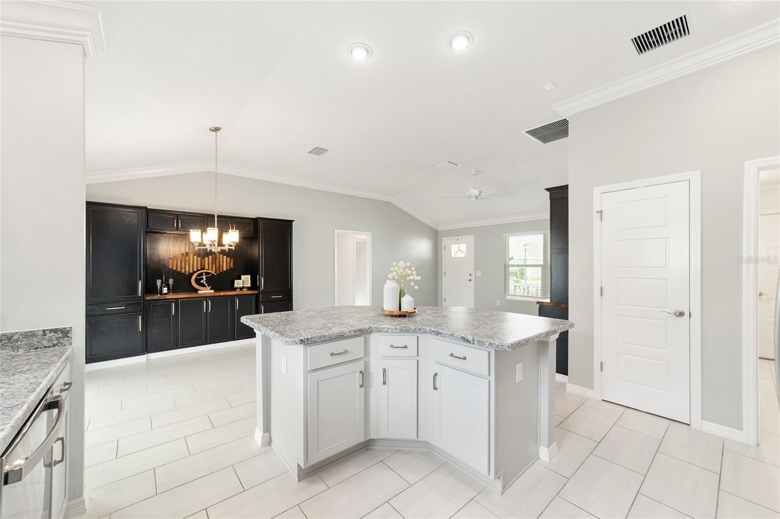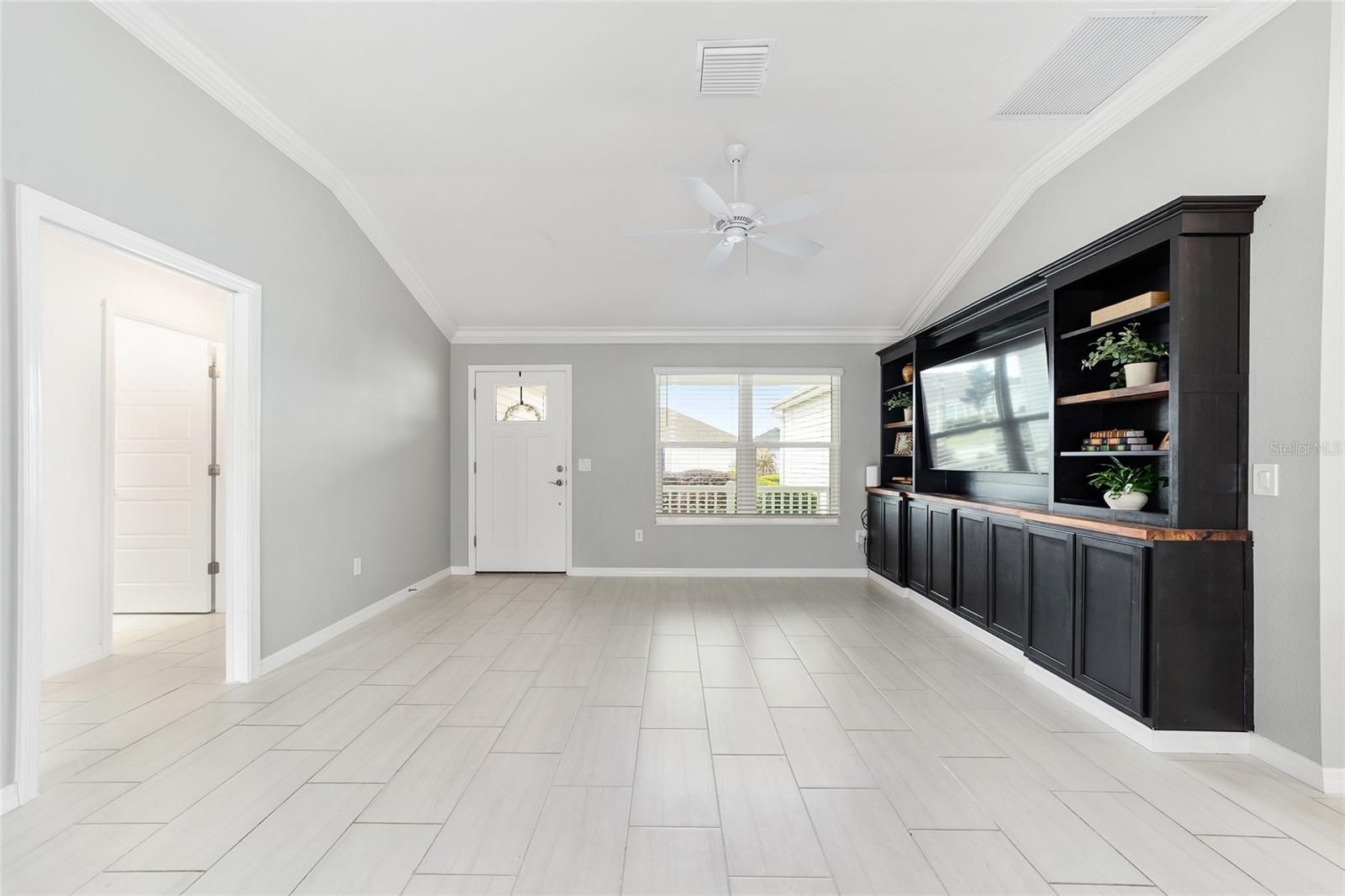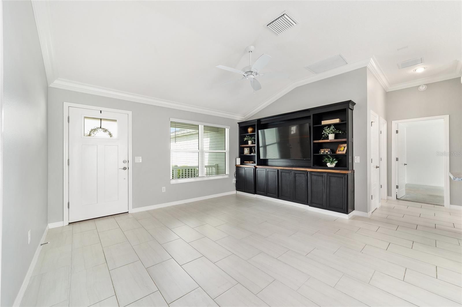 One or more photo(s) has been virtually staged. Discover this beautifully upgraded Bougainvillea model in the Village of Citrus Grove, offering a perfect blend of style, comfort, and thoughtful design. Step inside to an OPEN-CONCEPT layout enhanced with CROWN MOLDING, a spacious KITCHEN ISLAND, STAINLESS STEEL APPLIANCES, and a convenient WHOLE HOUSE FILTER AND WATER SOFTNER SYSTEM. The primary suite delivers a true spa-inspired experience, complete with a CUSTOM CLOSET SYSTEM and a serene, luxurious bathroom. CUSTOM BUILT-INS elevate the living room, dining room, and office, adding both elegance and functionality throughout the home. Enjoy peaceful mornings on the charming FRONT PORCH and added PRIVACY with a backyard that backs to a wall. A GOLF CAR GARAGE provides extra convenience and storage. Located just minutes from Sawgrass Grove, you’ll have quick access to entertainment, restaurants, the Ezell Recreation Center with its sports pool, put-n-play, neighborhood pool, and the exciting new Eastport Town Square.