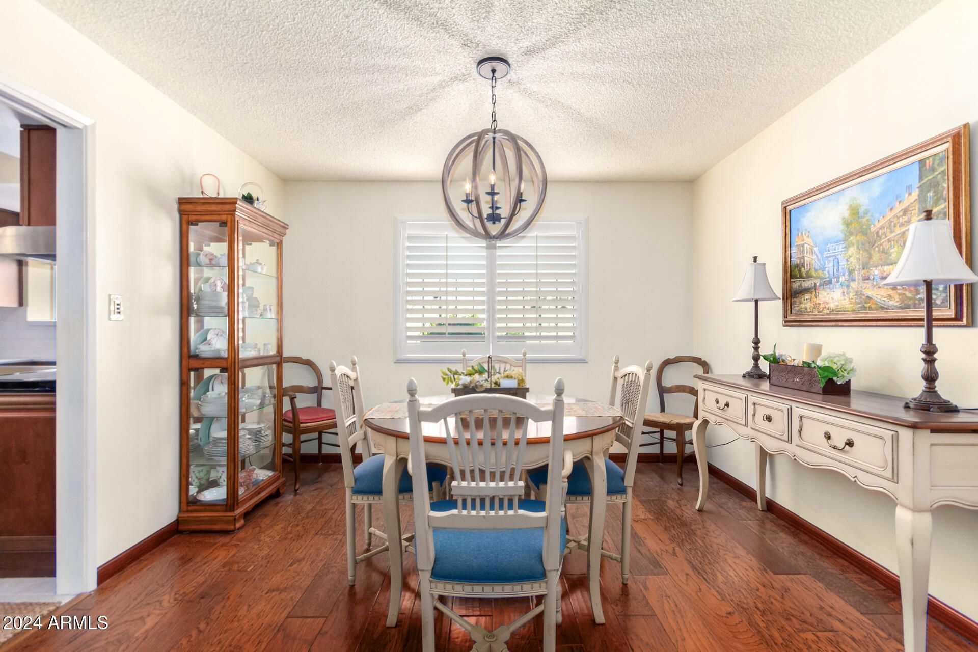 Make yourself at home in this Ralph Haver designed single-level townhome in the Adult Community of Golden Keys! One of the few units that only has 1 common wall and a side gate to enter backyard. Spacious living room, with hardwood flooring. The formal dining room, with plantation shutters and is perfect for hosting all the get togethers! Kitchen is complete with stainless steel appliances, rich wood cabinetry, quartz counters, a tile backsplash. Retreat to the large main suite, featuring a sitting area, and an ensuite. The AZ room is excellent for year-round entertainment! Very well kept backyard with artificial turf, pavers and side yard entry from front yard. Close to Old Town, Scottsdale.Large community pool and Clubhouse just down the street.