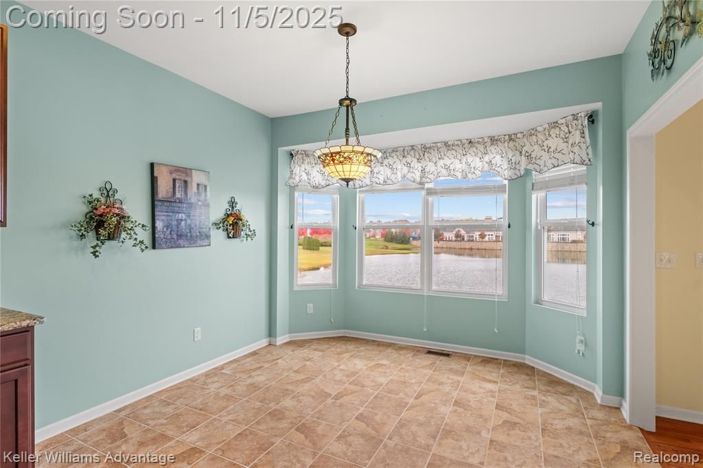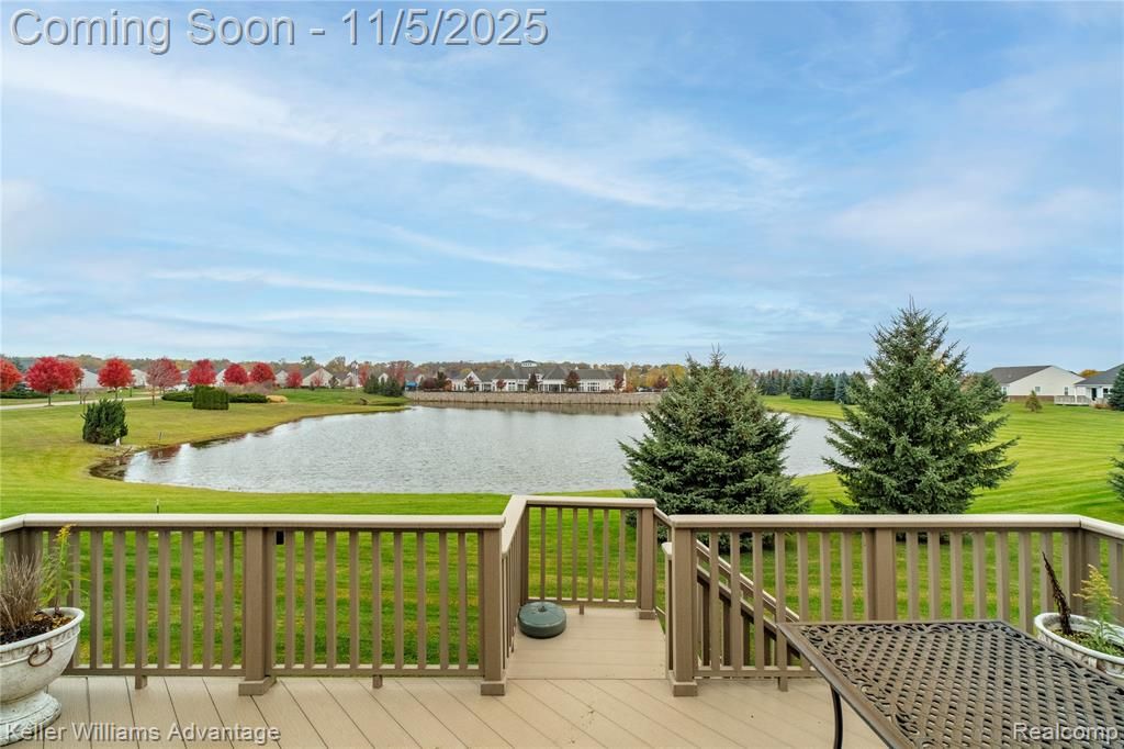 Gorgeous pond-front detached ranch in Del Webb’s Grand Reserve (55+). Set on a premium lot with sweeping views of the water and just a short stroll to the clubhouse, this home combines serenity with resort-style living—sidewalks, ponds and fountains, plus a clubhouse with pool, hot tub, tennis/pickleball, fitness center, and more.Inside, a spacious foyer opens to a bright, airy layout with abundant natural light and beautiful hardwood floors. The great room centers on an elegant view of the waterfront. An expansive eat-in kitchen features a large island, plentiful cabinetry, and a handy butler’s pantry, while the open dining area is perfect for hosting—or game night.The luxurious primary suite overlooks the pond and features a generous walk-in closet and a spa-like bath with a walk-in shower, double vanity, and soaking tub. A den/office with double doors provides a private workspace. Guests will appreciate the second bedroom with a full bath nearby. A well-planned laundry/mudroom off the garage adds storage, cabinetry, shelving, and a utility sink.The full, unfinished lower level offers endless possibilities—excellent storage now and already plumbed for a future bath. Step out to the deck for peaceful outdoor dining framed by tranquil water views.HOA: $445/month and comprehensive—includes all amenities, landscaping, and snow removal. Enjoy an active lifestyle with clubs and activities, including book and fishing clubs.