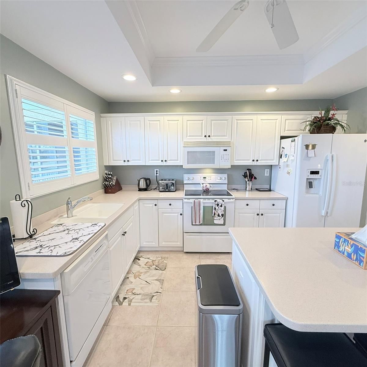 AMAZING PRICE!!! SEE IT TODAY. NEW LISTING! GORGEOUS 3 BEDROOM, END UNIT CONDO, LAKE FRONT, BEAUTIFULLY TURNKEY FURNISHED, WITH GARAGE, PANORAMIC GOLF COURSE VIEW. Full access to Tara Preserve Amenities. Pay and play golf every day with no required membership! Reasonable low fees! Golf Carts Ok. Maintenance free living. This meticulous, bright, cheerful End Unit shows like a model home with 3 bedrooms, spacious 1,659 sq.ft., fluid open floorplan, plantation shutters, tray ceilings, crown moldings, and new flooring in the bedrooms. No carpet! She’s a beauty with a private screened-in 12’x12’ lanai with panoramic views of the grounds, lake, and golf. The heart of the home, large eat-in kitchen, features white cabinets, two pantries including a walk-in, a large island, SBS refrigerator, range, microwave, dishwasher, Corian counters, windows overlooking the lake, tray ceiling, and a double sliding glass door opening to the screened lanai for those sunset evenings with a glass of wine, entertaining, reading a good book, watching it rain, or coffee in the morning goodness overlooking the serene lake. In the distance you can watch the golfers. Walk over to your heated community pool and spa. As you enter the condo, a spacious entry foyer invites you in, and right away you are aware that this condo is special. The living room and formal dining room combination is an airy open concept, expansive with glass sliding doors to the spacious lanai with open views. Windows bring in the light and open feel with plantation shutters, great for hosting. A thoughtfully laid out space to accommodate your guests, family, and friends. This roomy condo is built for making memories with a full house. All bedrooms feature a ceiling fan, generous closets, and beautiful wood-like laminate flooring. The primary bedroom features a double and a walk-in closet, double window, and en-suite bath. The 3rd bedroom with sliding pocket doors has two double closets and is being used as a 3rd bedroom but is also a great office space if needed. Laundry room with laundry tub, washer/dryer, many white cabinets, and closet. Heated community Pool/Spa right across the street. Tara Preserve amenities feature a Clubhouse with many activities, resort-style heated pool, fitness center, and tennis courts. Experience resort-style Florida living for year-round or seasonal residents. A maintenance-free lifestyle where fees cover premium cable/HBO, high-speed internet, water and sewer. Centrally located near UTC Mall, dining, and LWR Medical. Easy access to SRQ/TPA airports, top-rated Gulf white sandy beaches, azure blue water. Premier Sports Campus, Mote Aquarium, Polo, Rowing Regattas, Farmer's Market, and IMG Academy. So much to do. Experience the best of Sarasota, Bradenton, and Lakewood Ranch in one perfect location! Your search ends here for lock and leave convenience. Reach out to schedule your tour. Don't just imagine the lifestyle; live it!